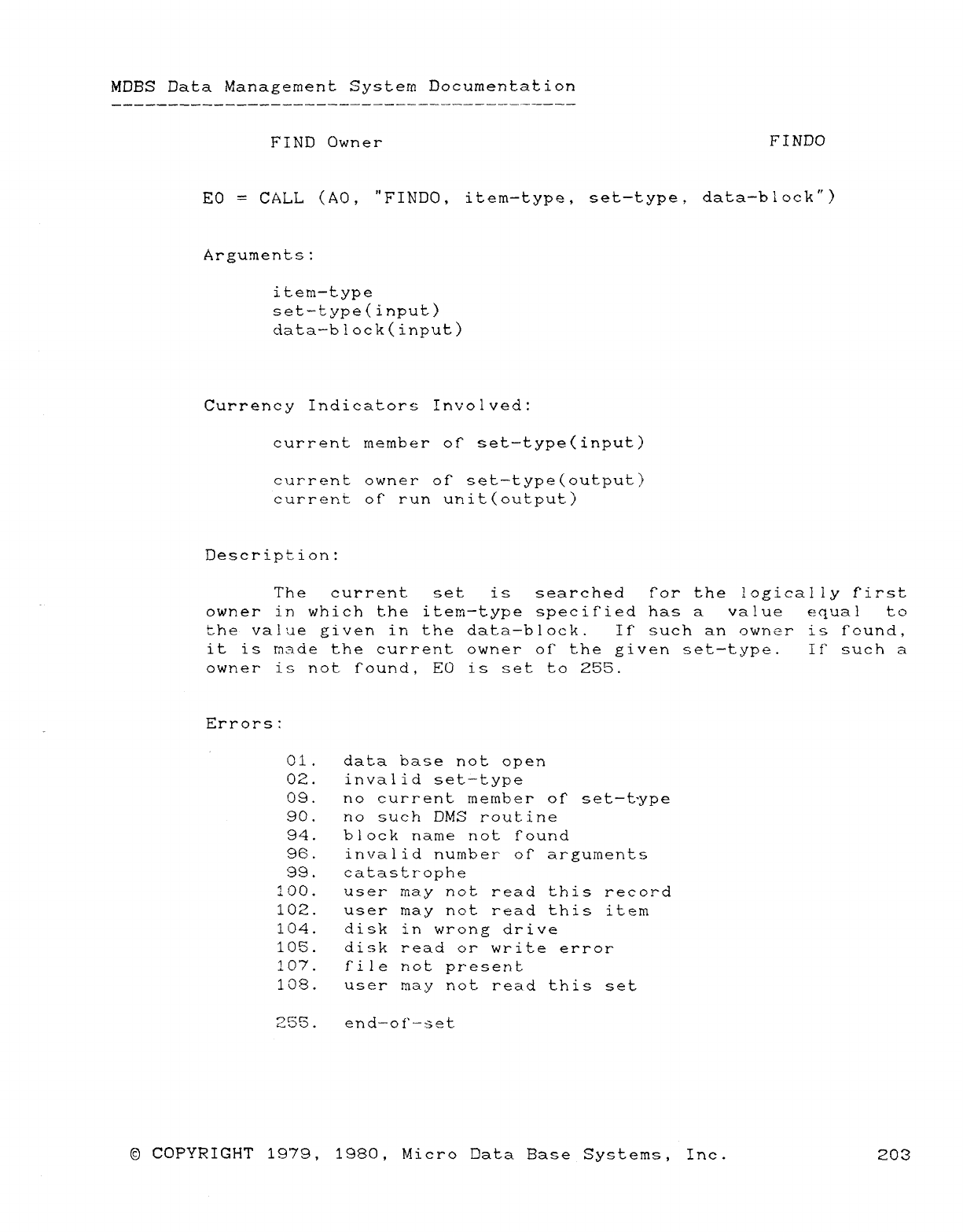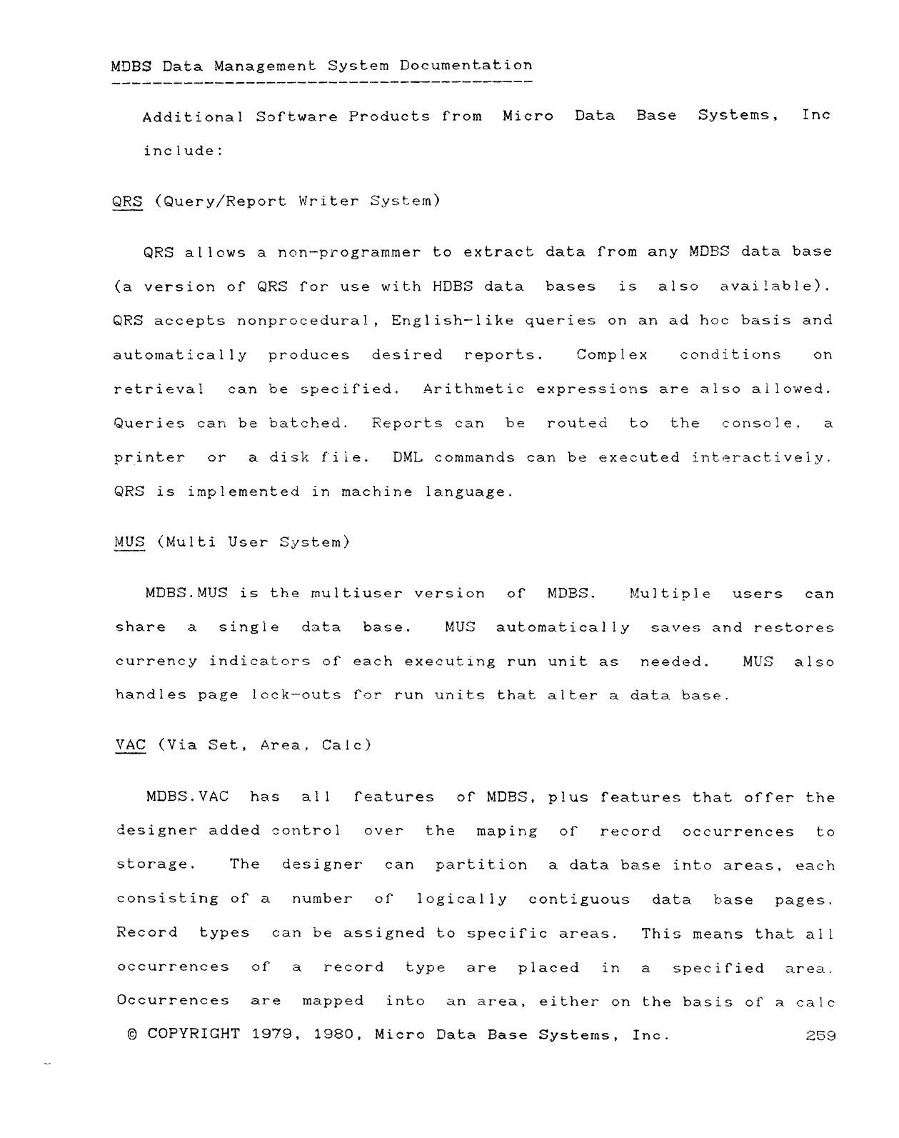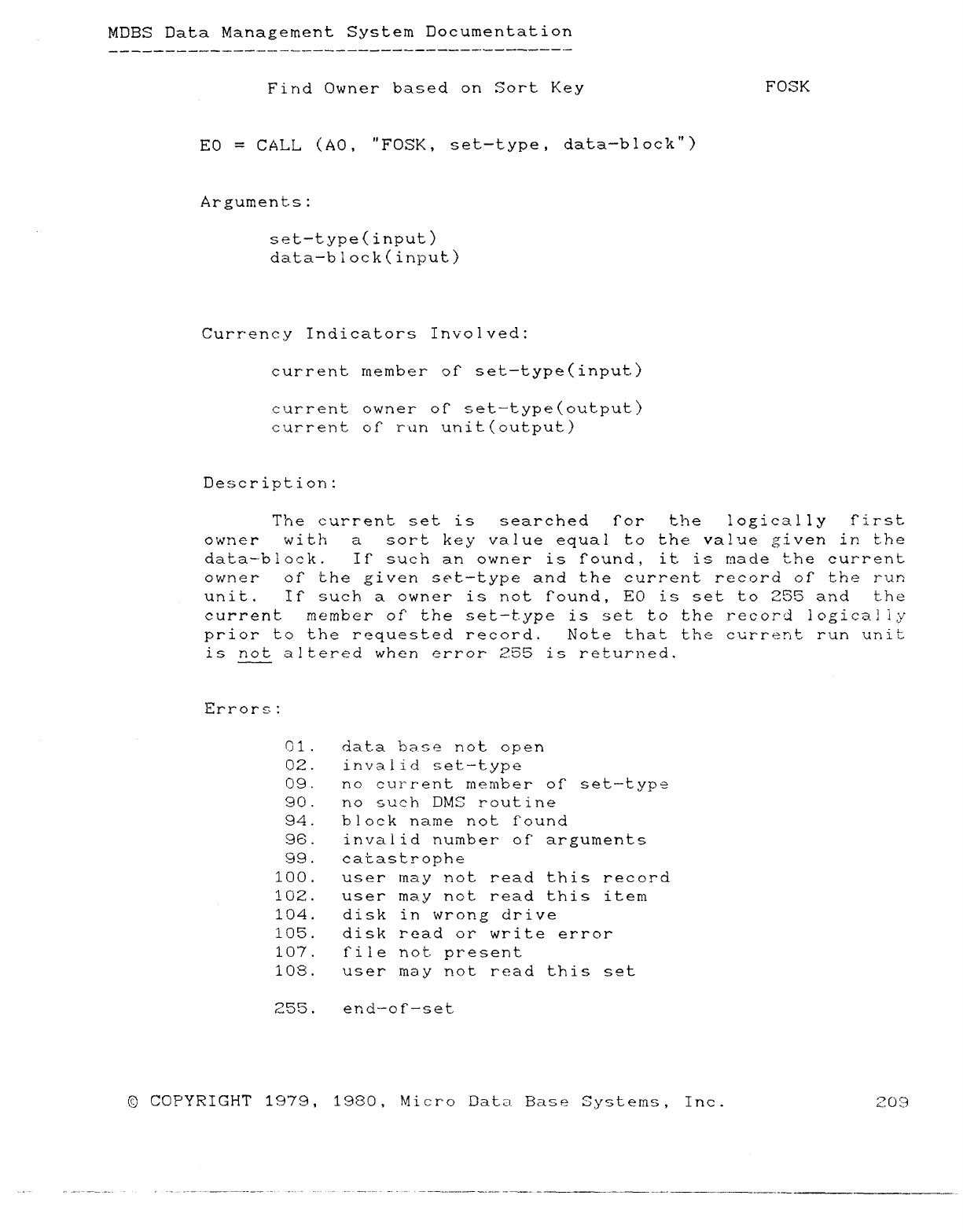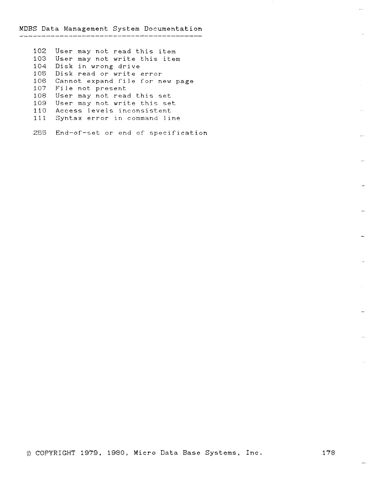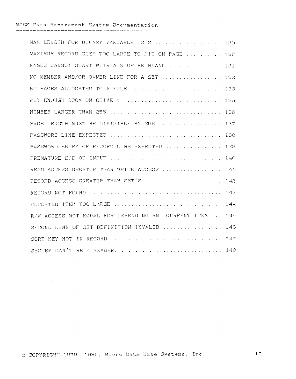 ©COPYRIGHT 1979, 1980, Micro Data Base Systems, Inc. 266