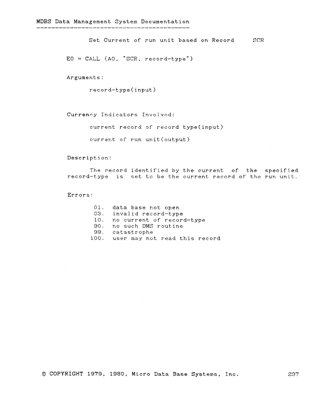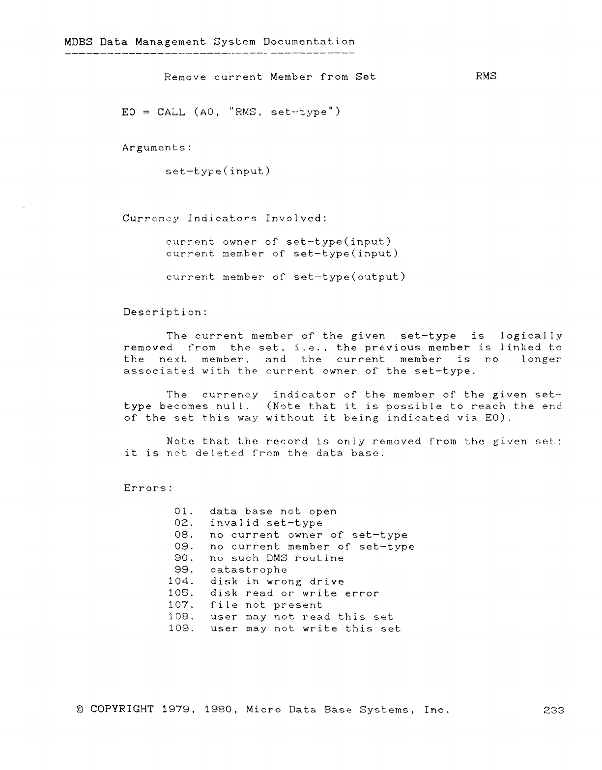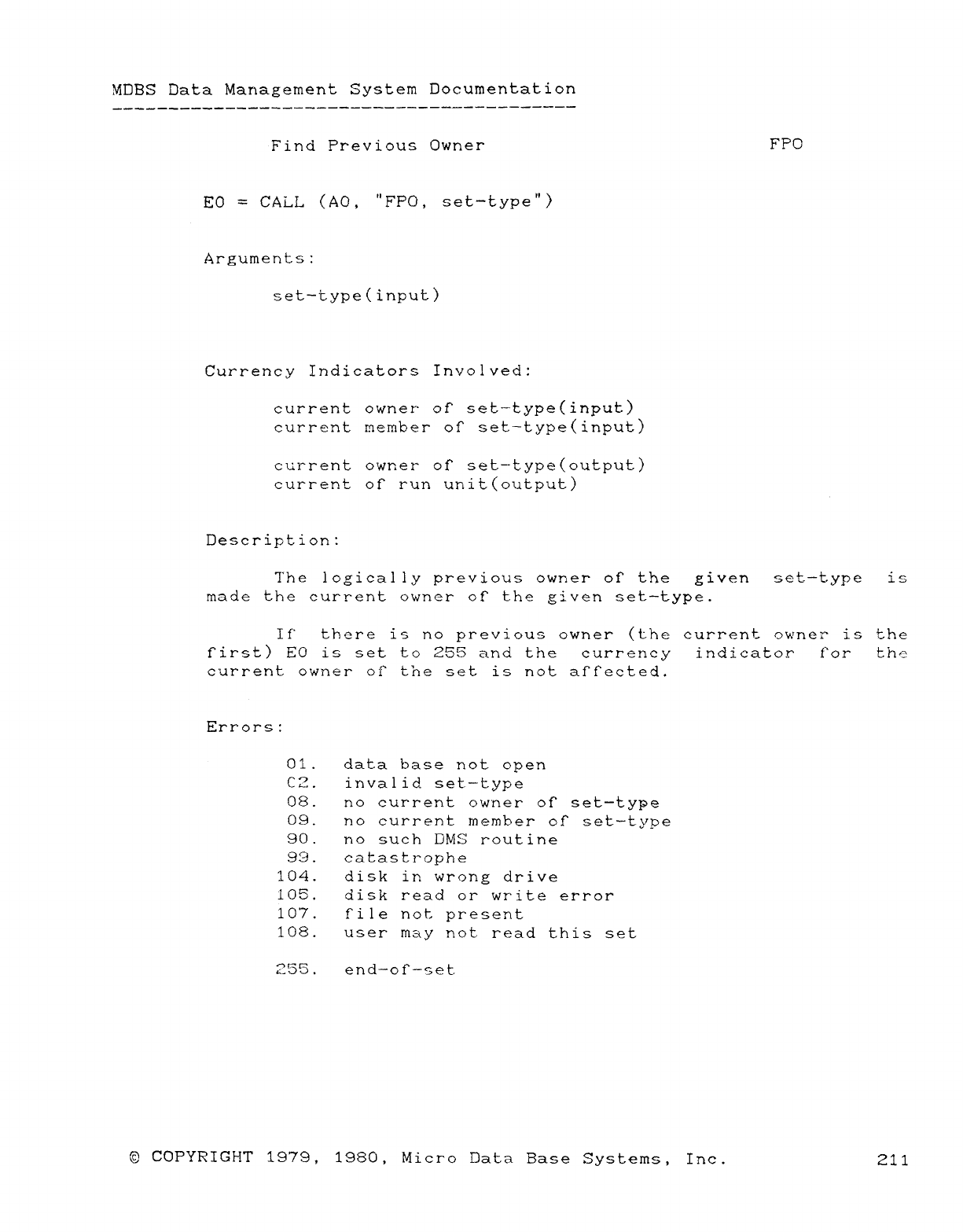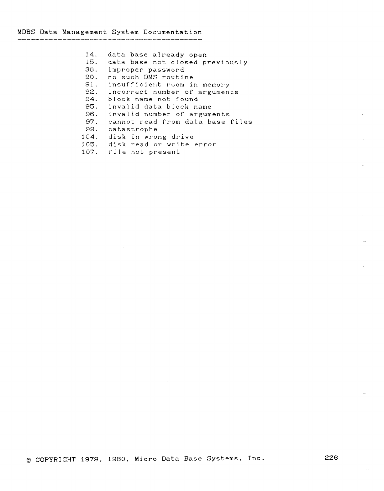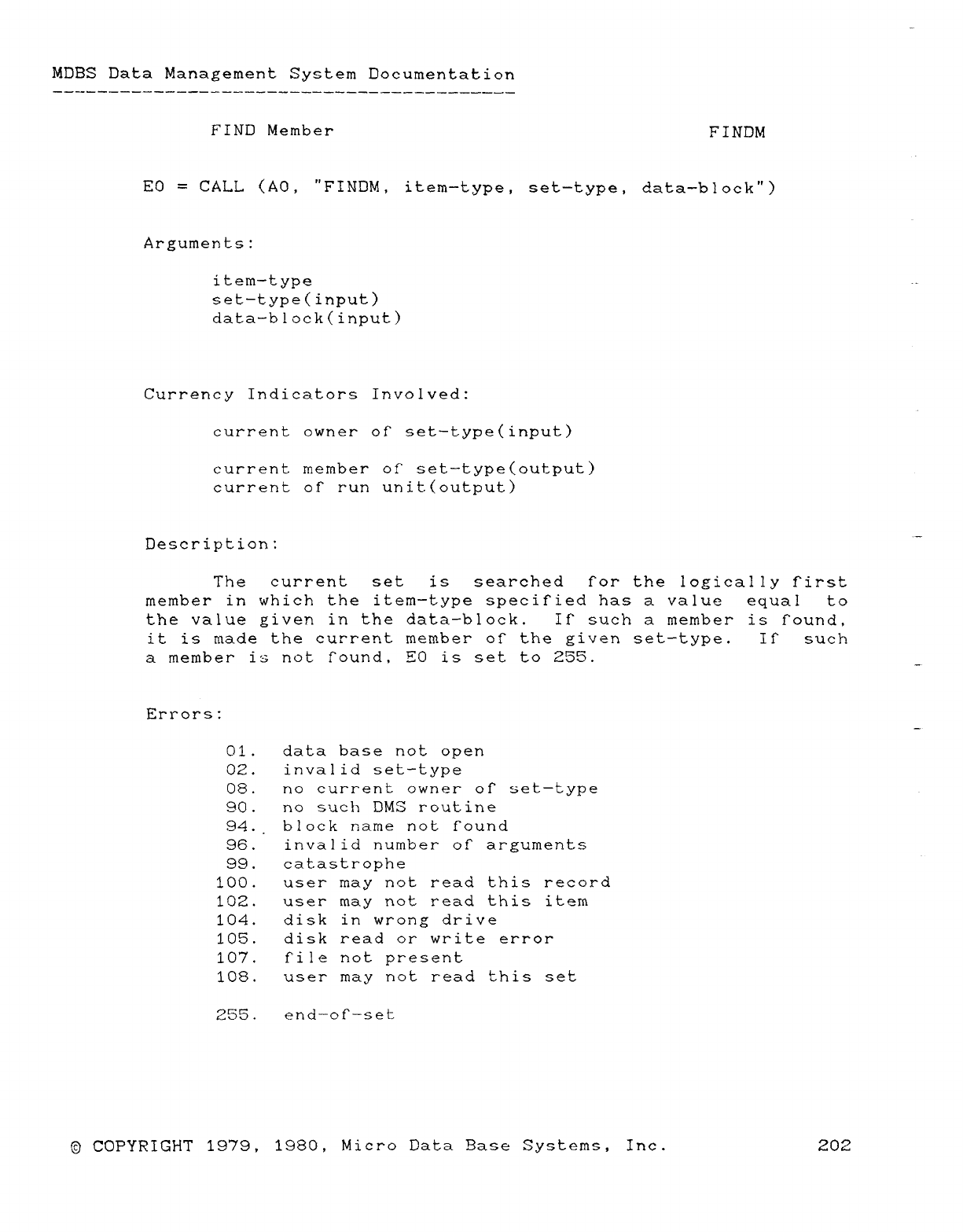 ©COPYRIGHT 1979, 1980, Micro Data Base Systems, Inc. 266