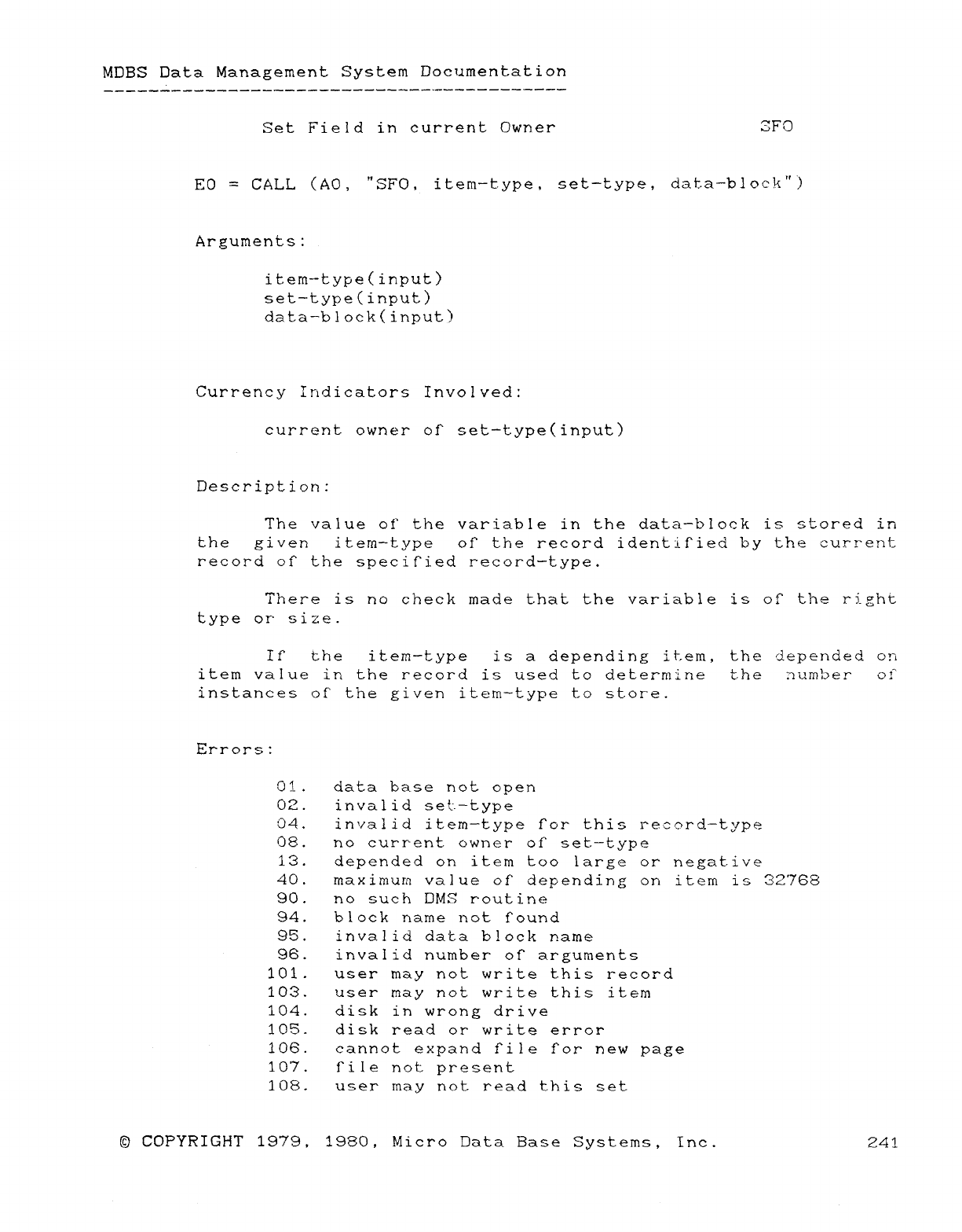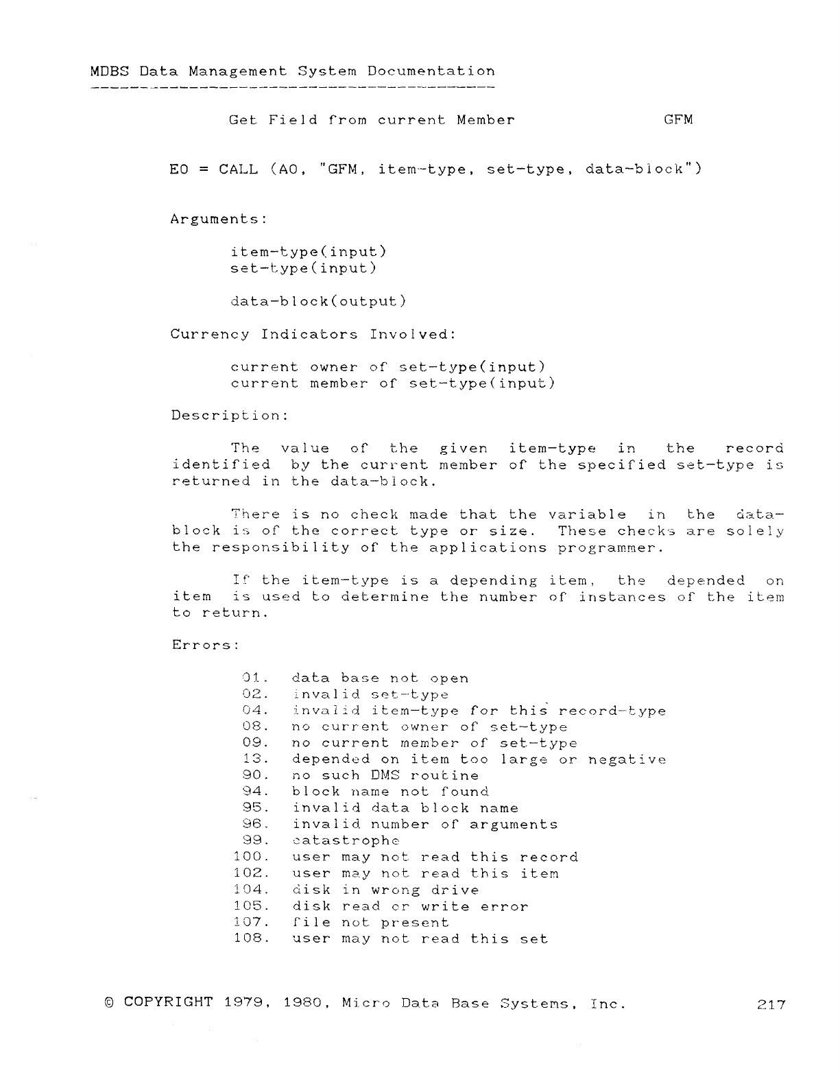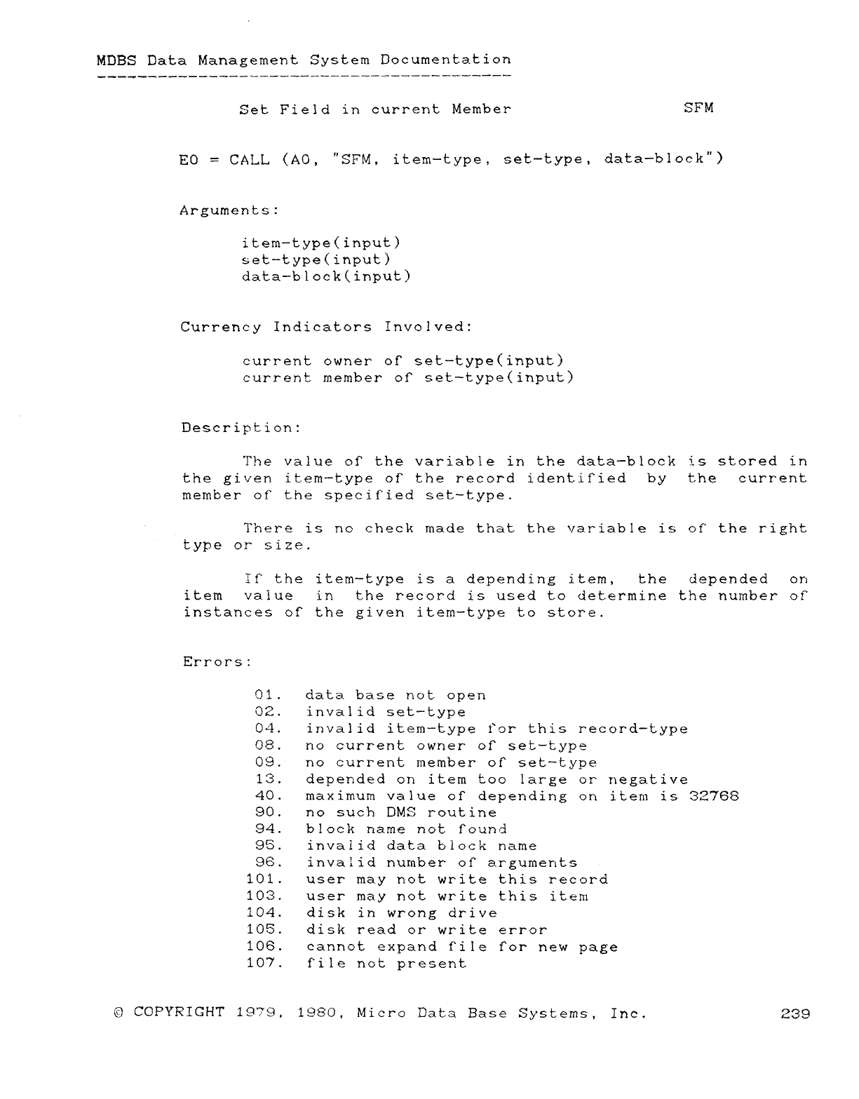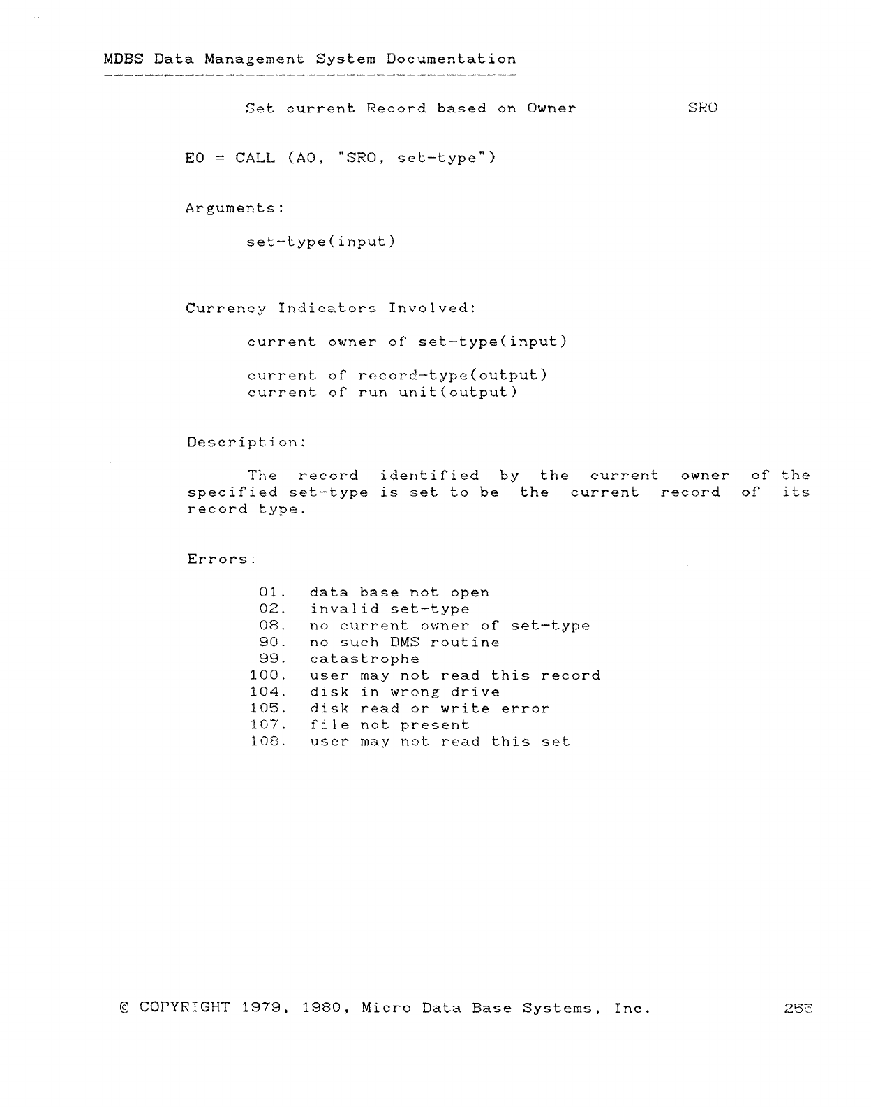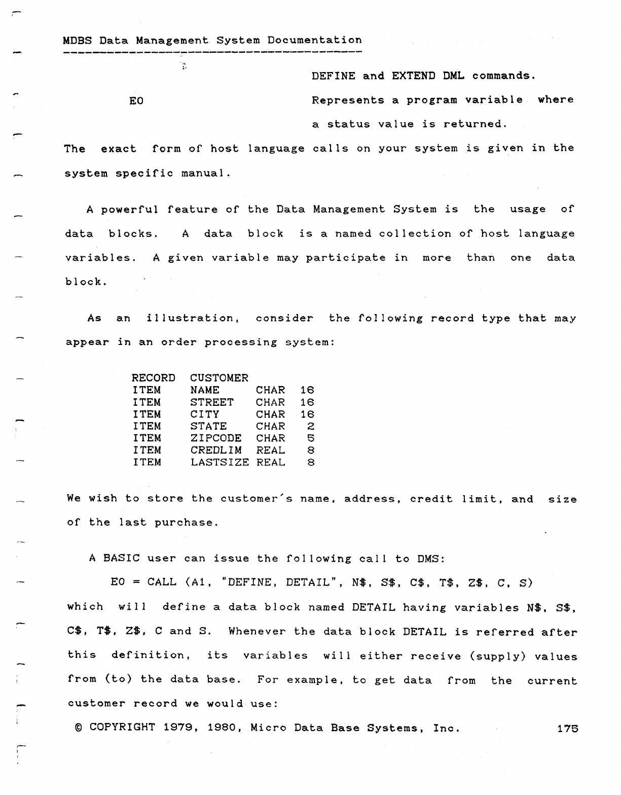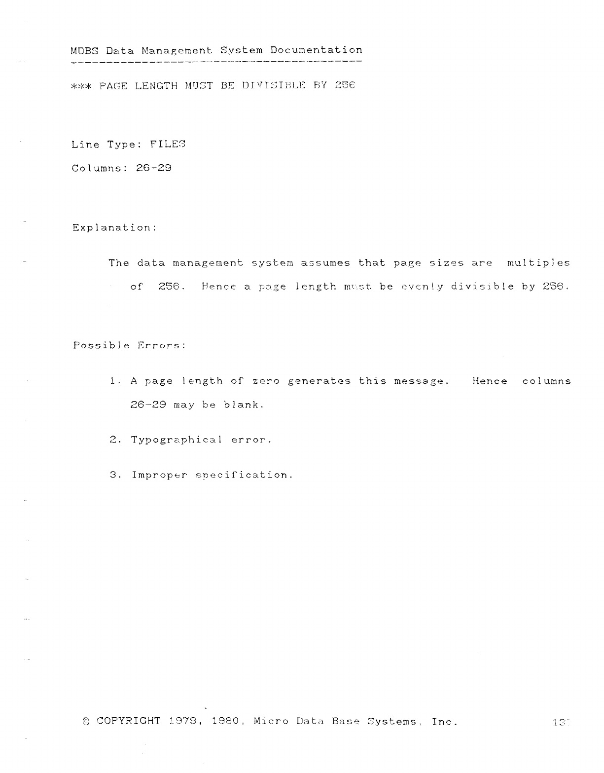 ©COPYRIGHT 1979, 1980, Micro Data Base Systems, Inc. 266