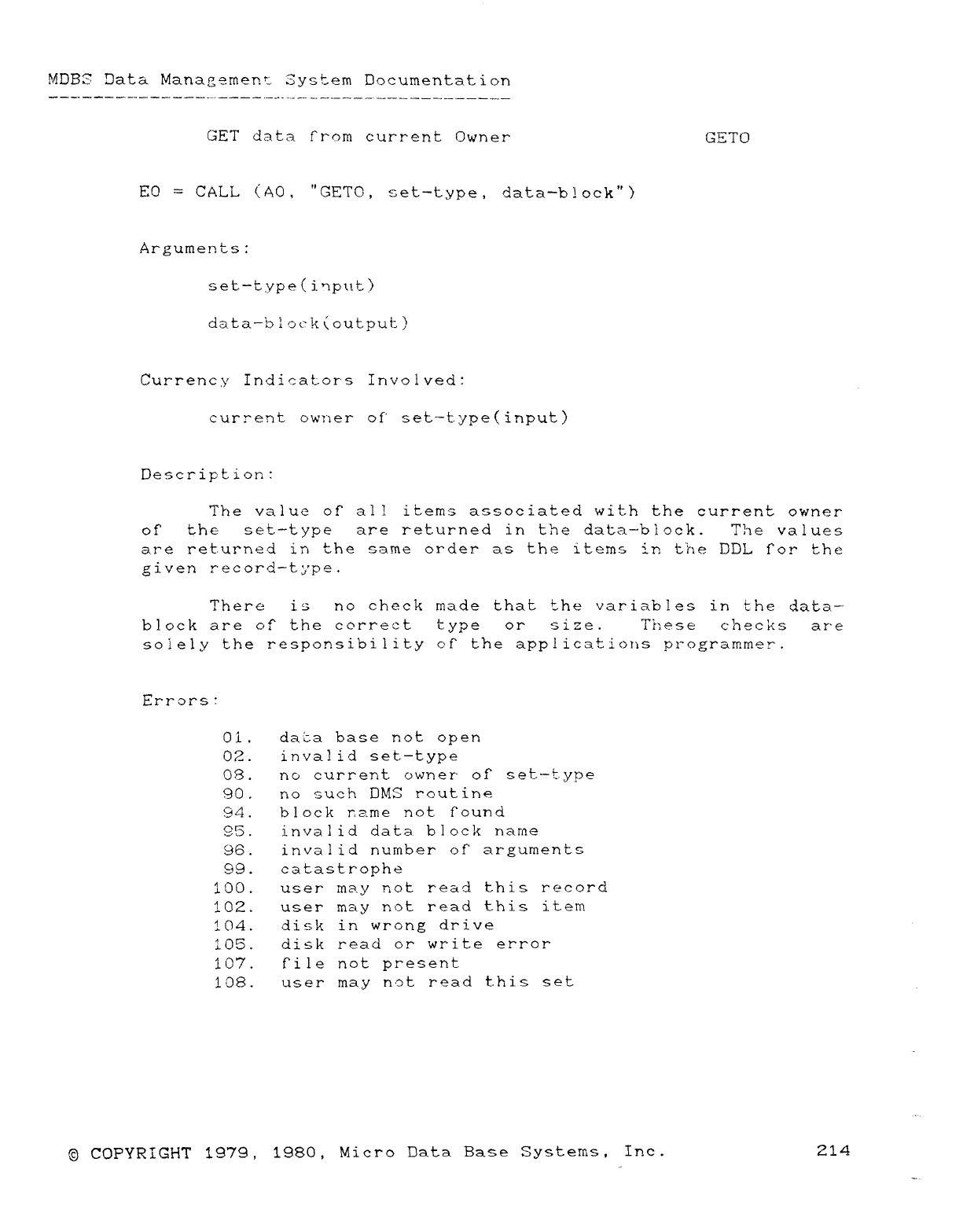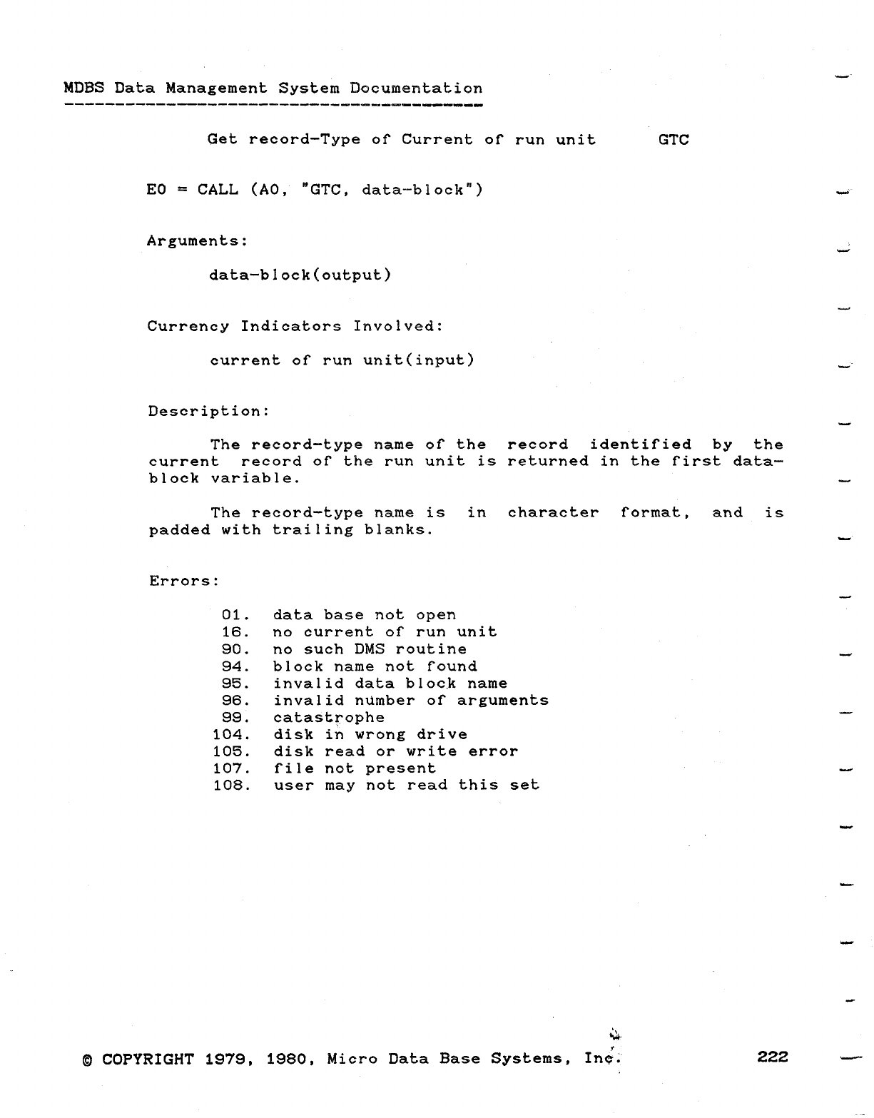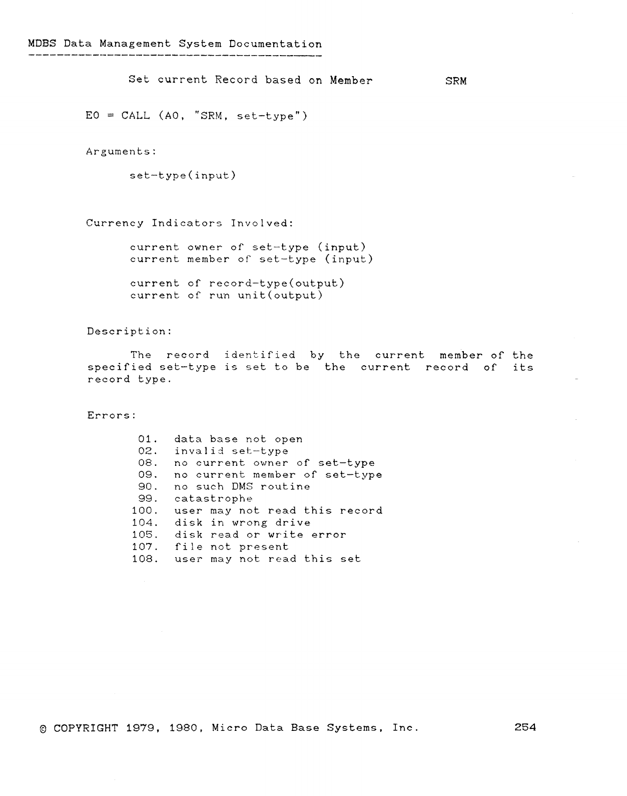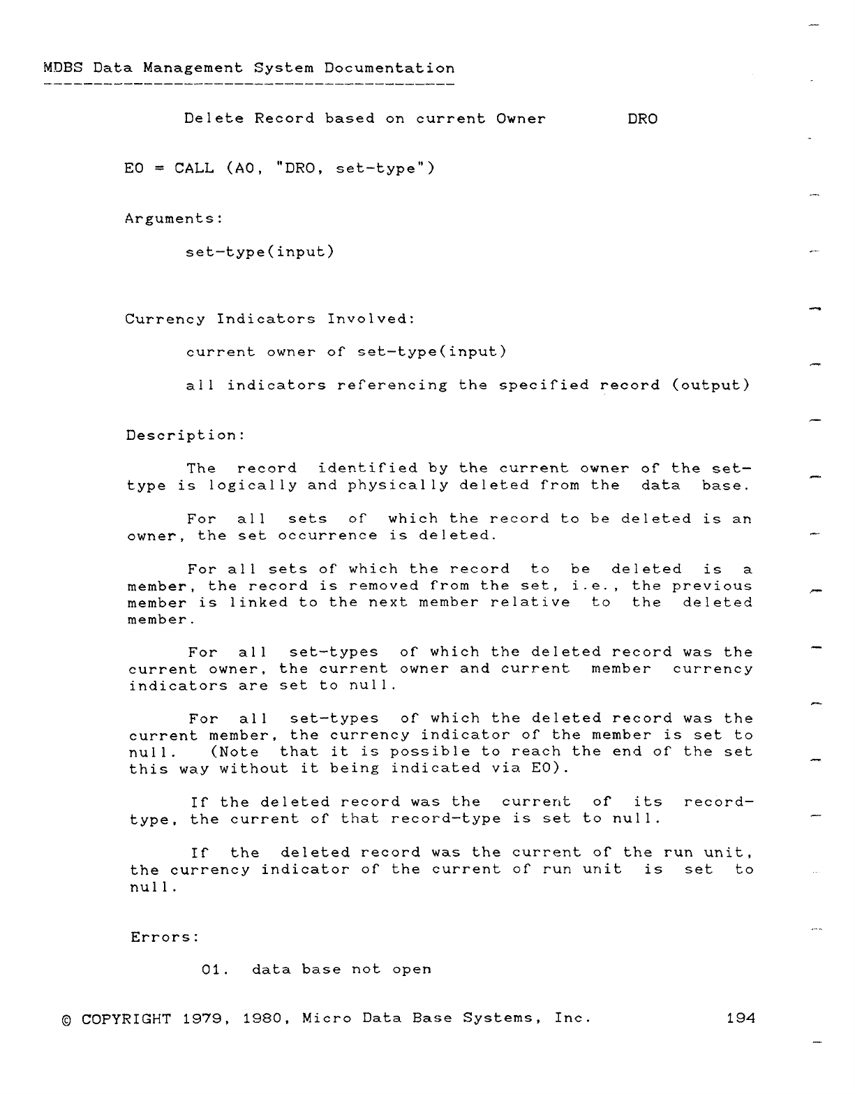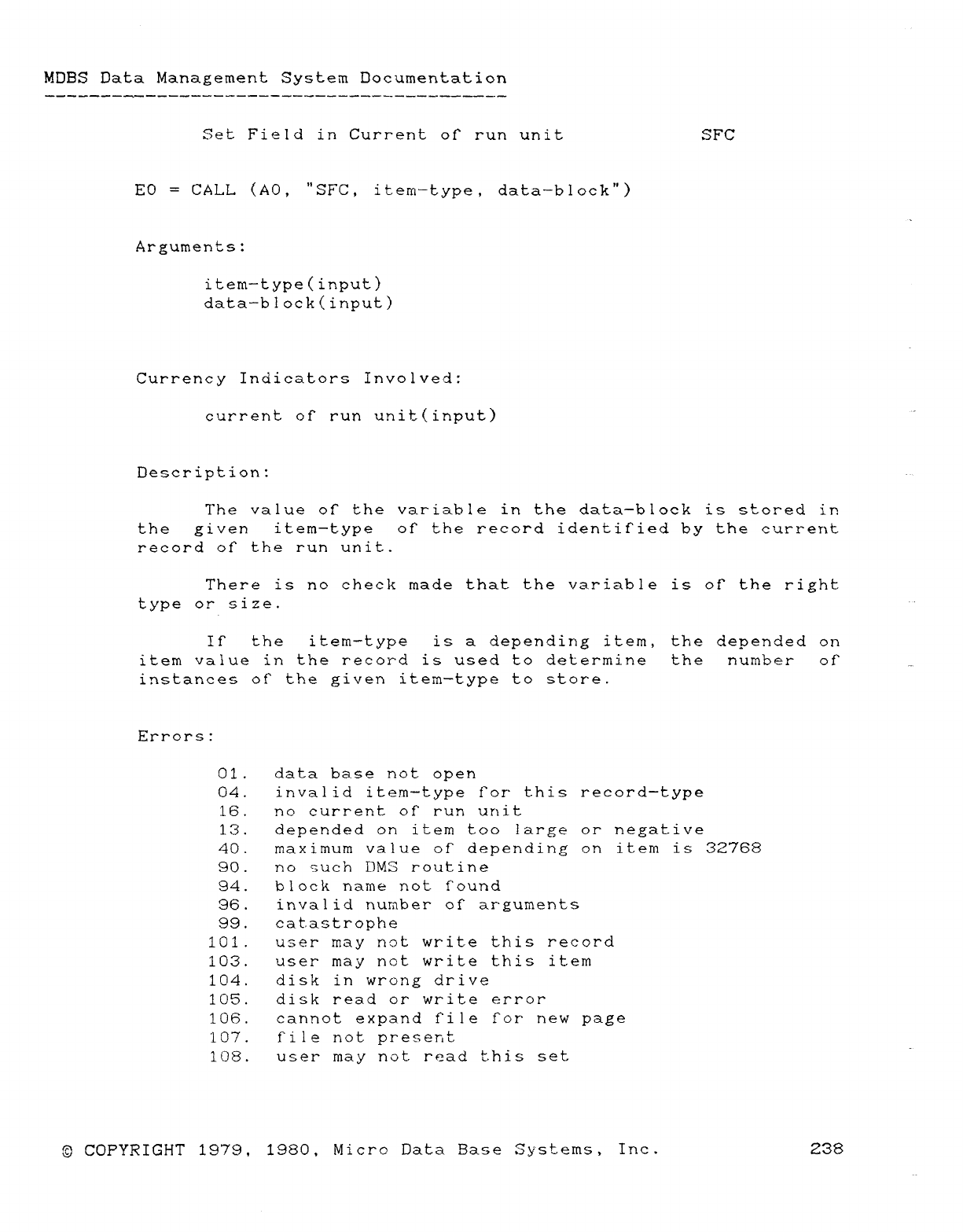 ©COPYRIGHT 1979, 1980, Micro Data Base Systems, Inc. 266