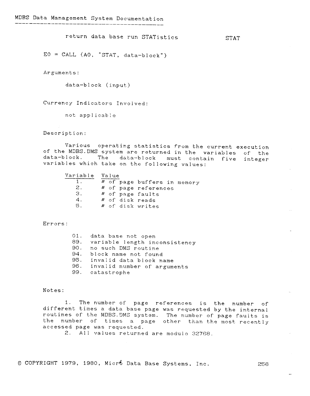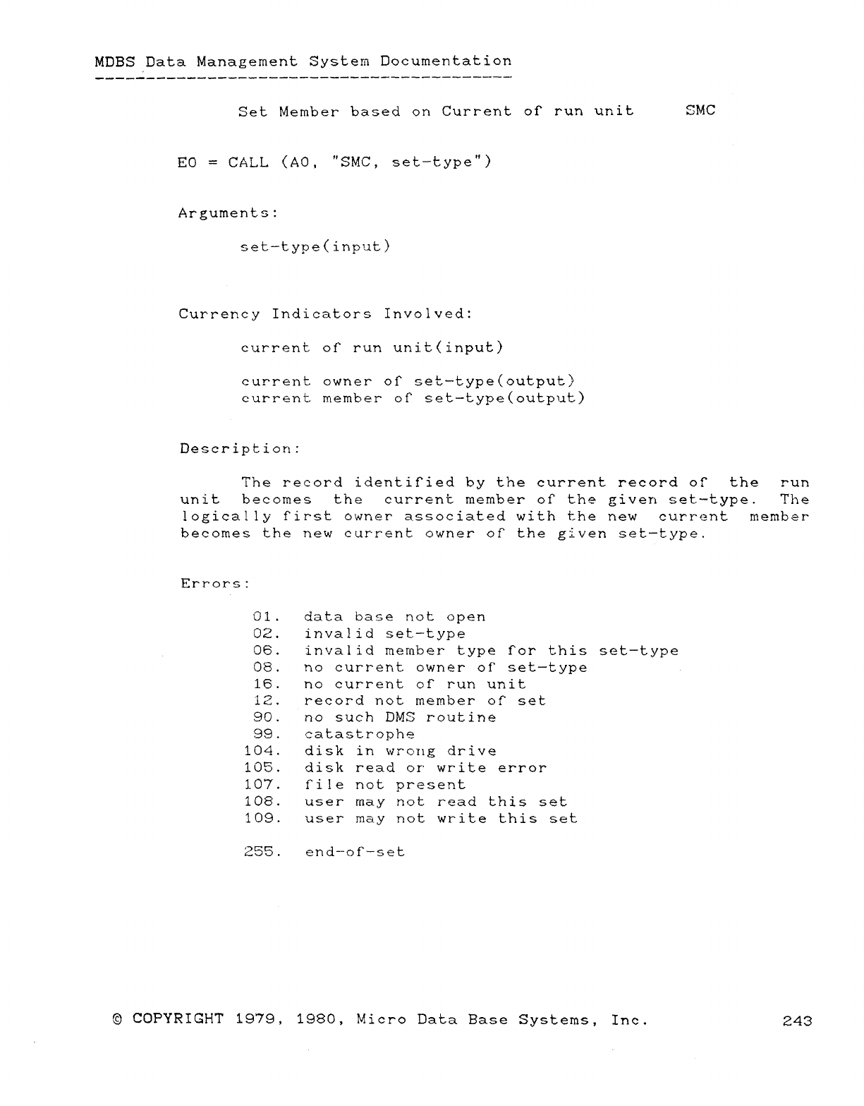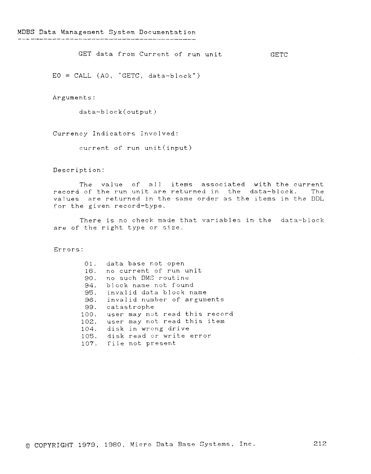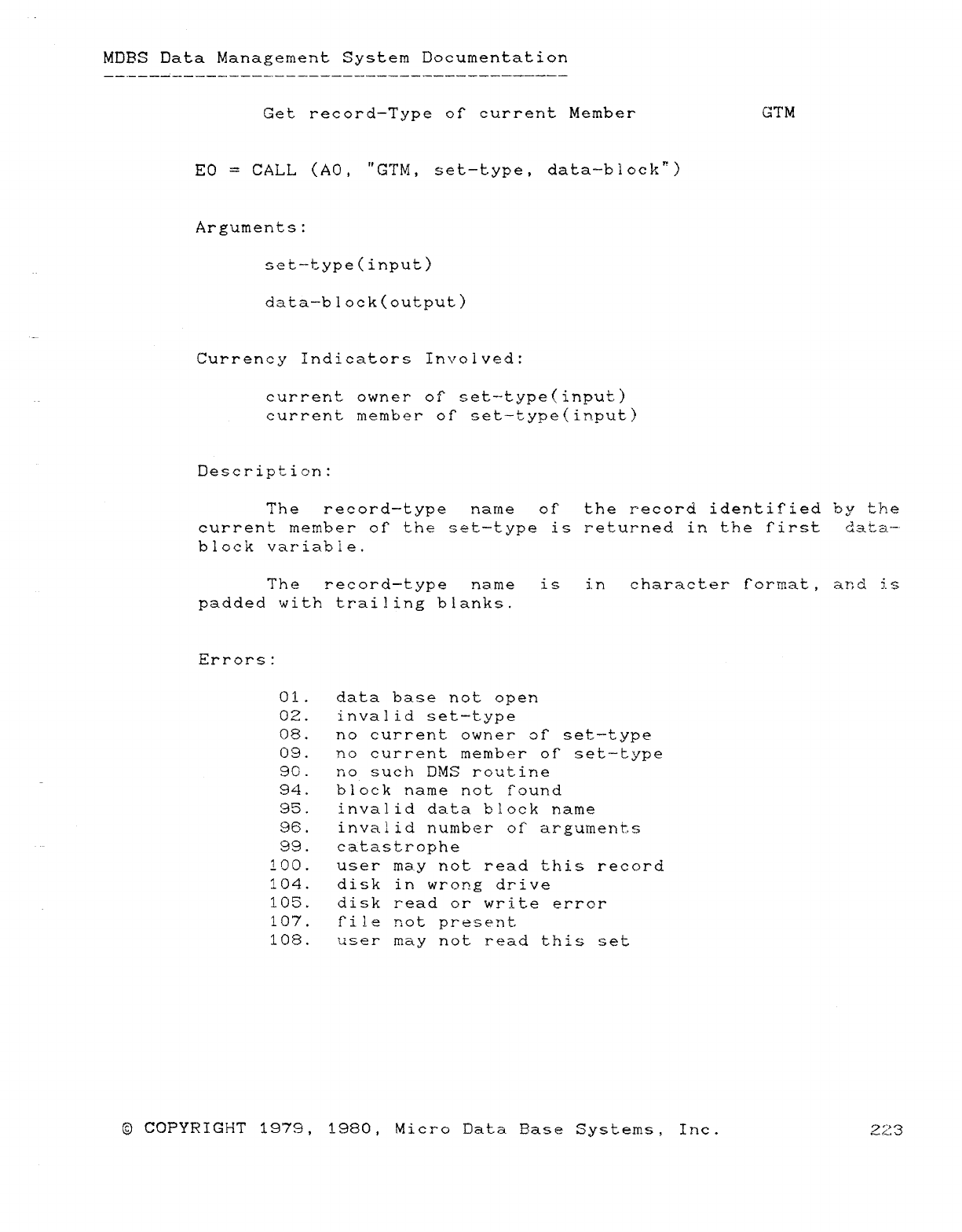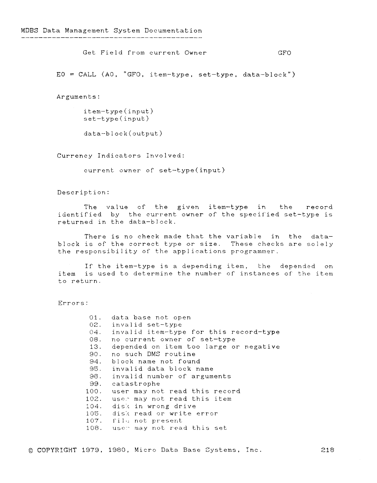 ©COPYRIGHT 1979, 1980, Micro Data Base Systems, Inc. 266
