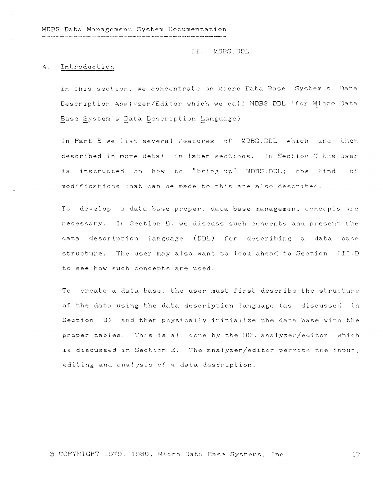 II. MDBS.DDL DATA DESCRIPTIObl LANGUAGE.... .... 1'7