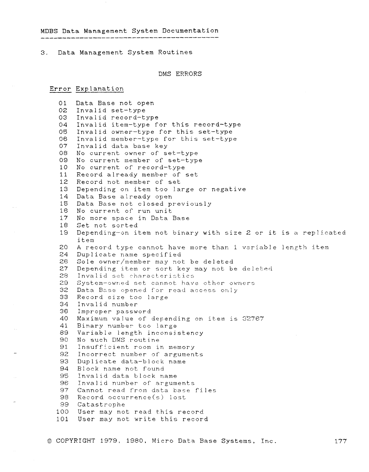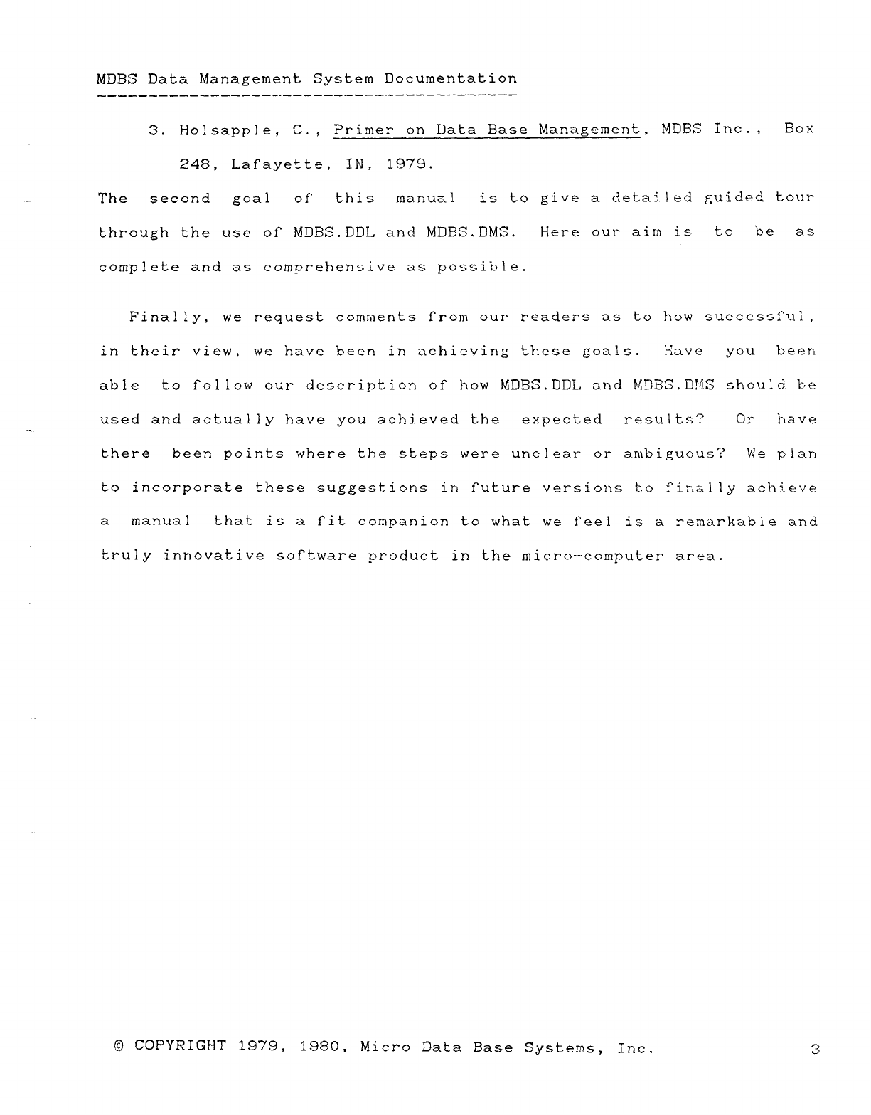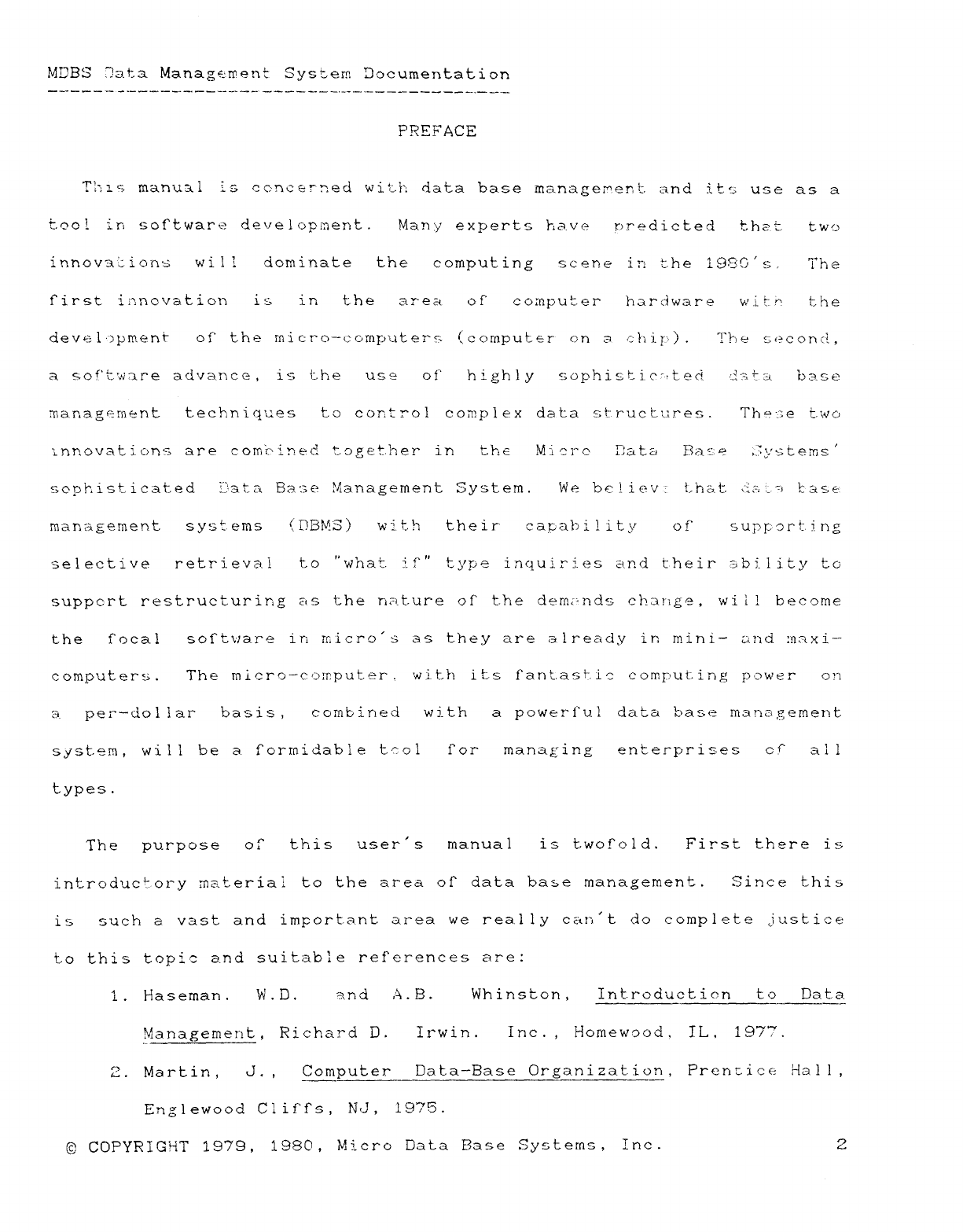 ©COPYRIGHT 1979, 1980, Micro Data Base Systems, Inc. 3
