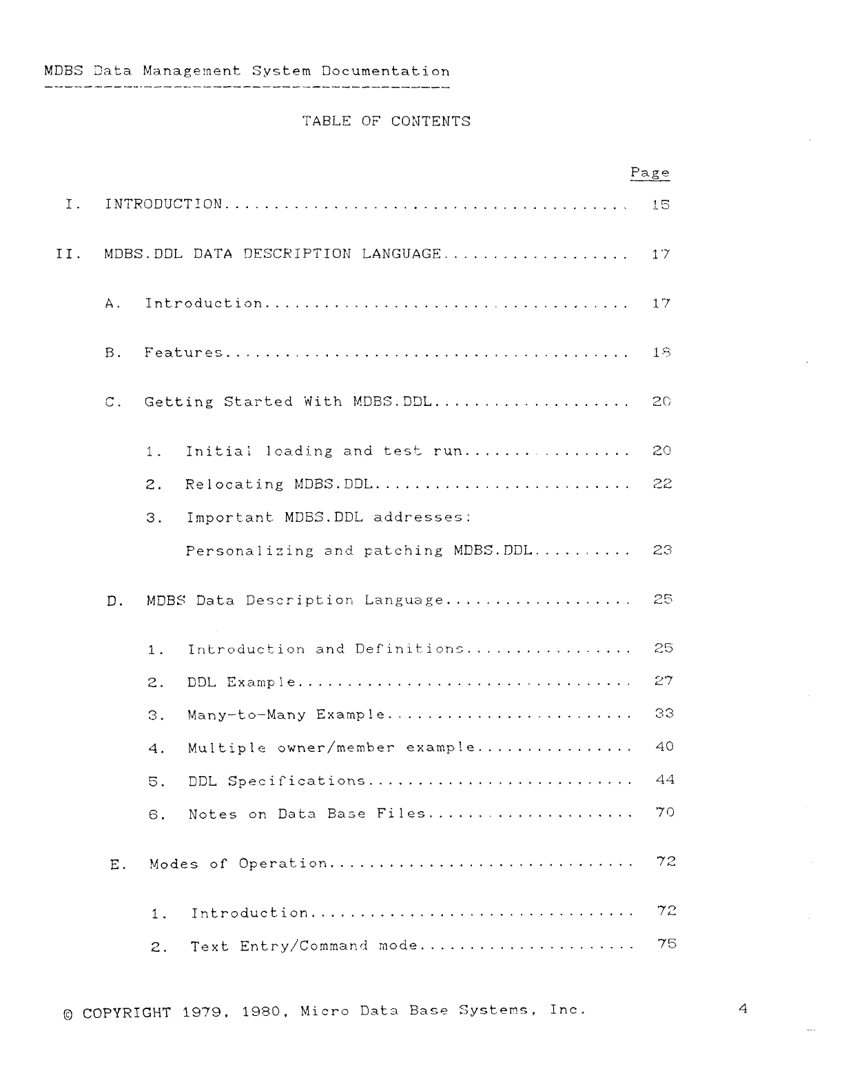 ©COPYRIGHT 1979, 1980, Micro Data Base Systems, Inc. 4