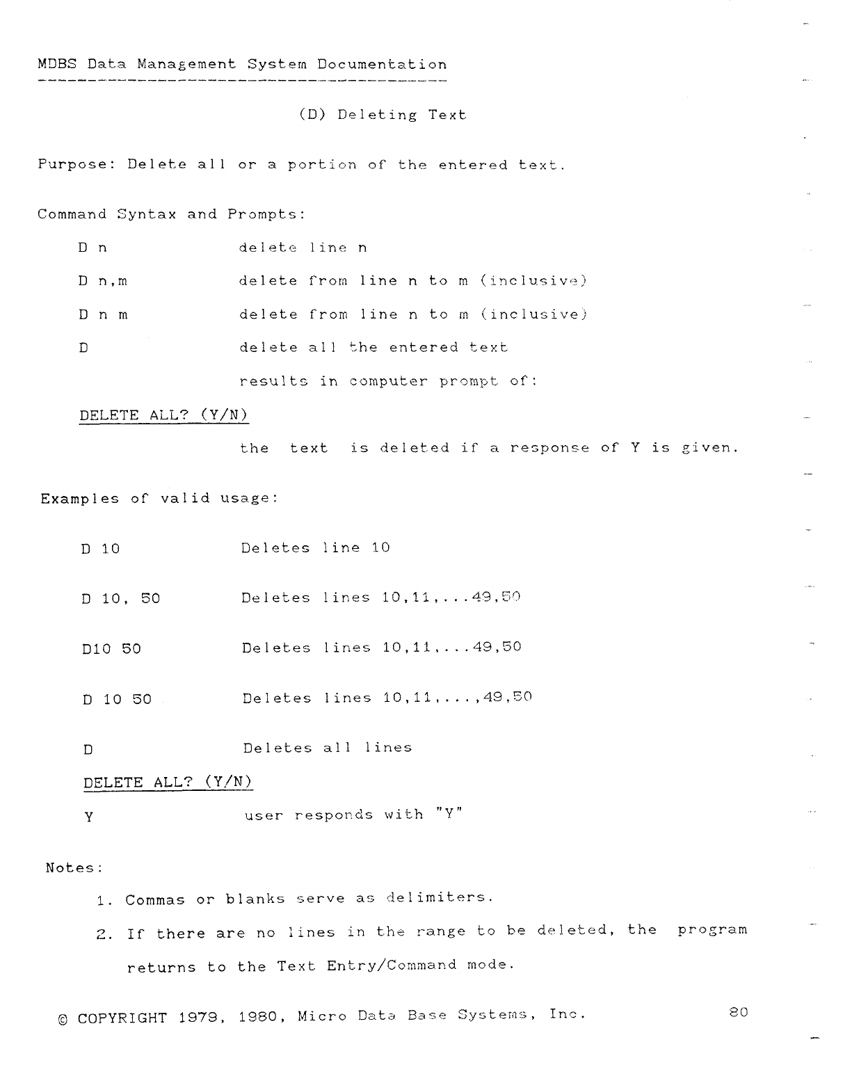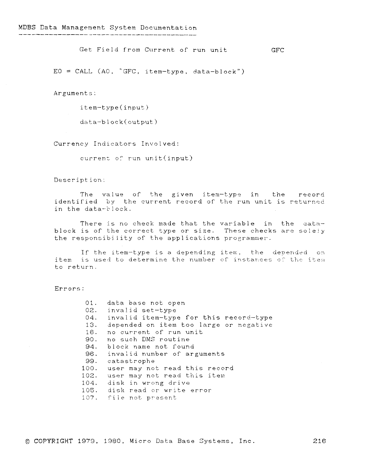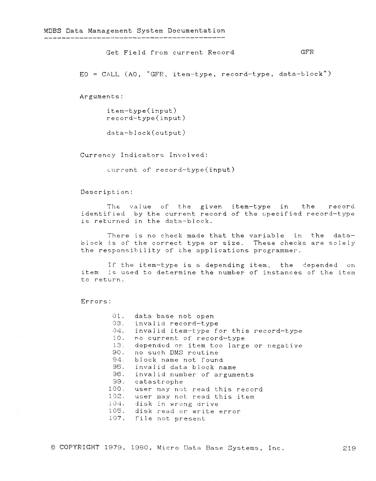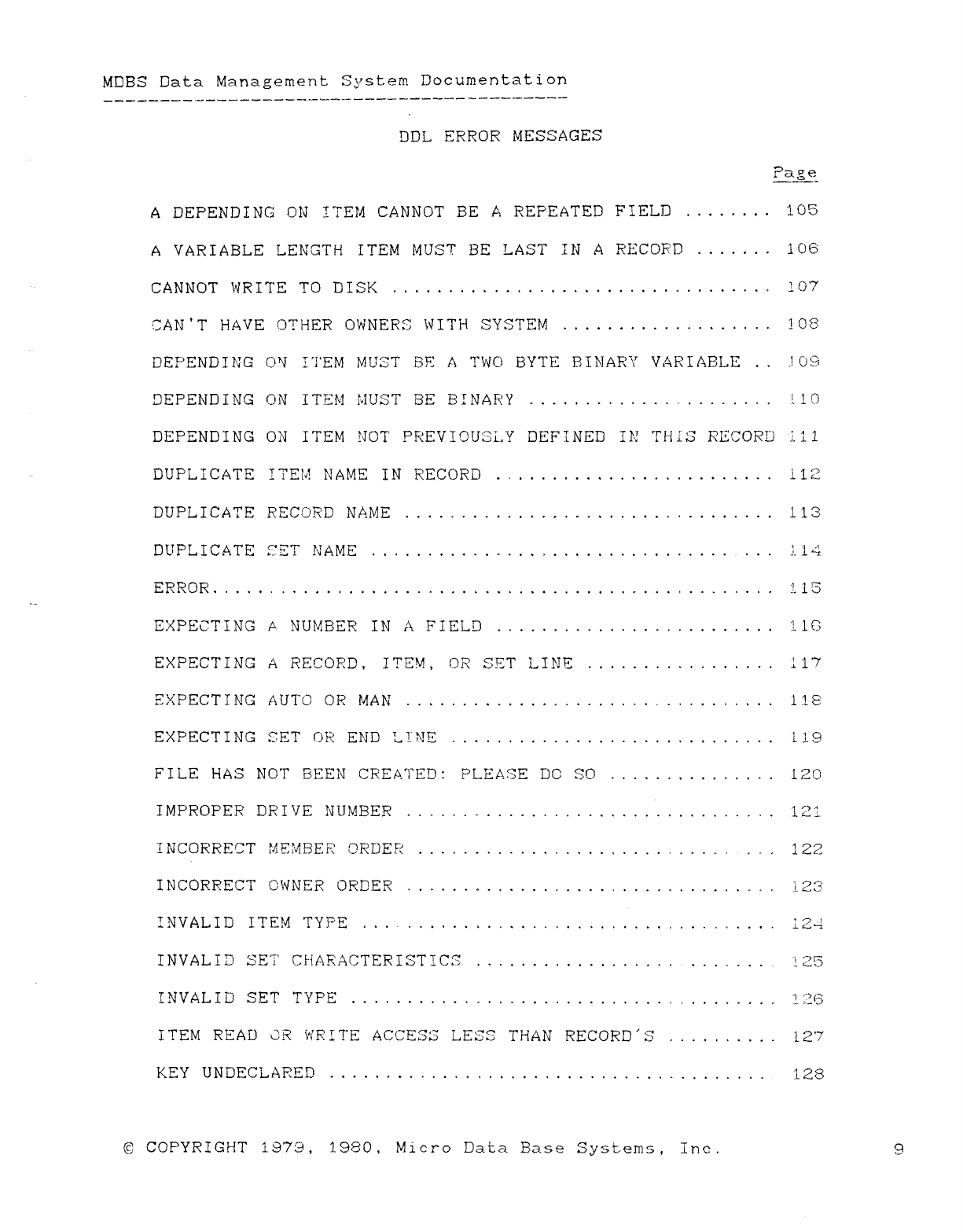 (9 COPYRIGHT 1979, 1980, Micro Data Base System.s, Inc. 26E