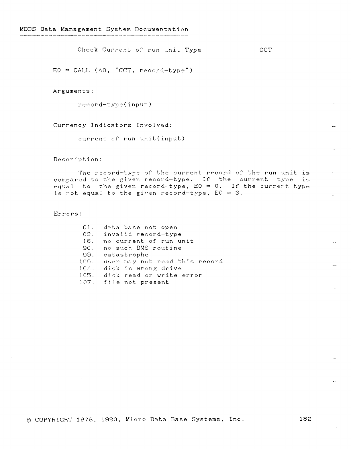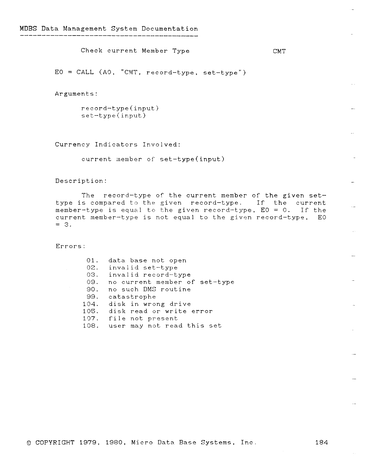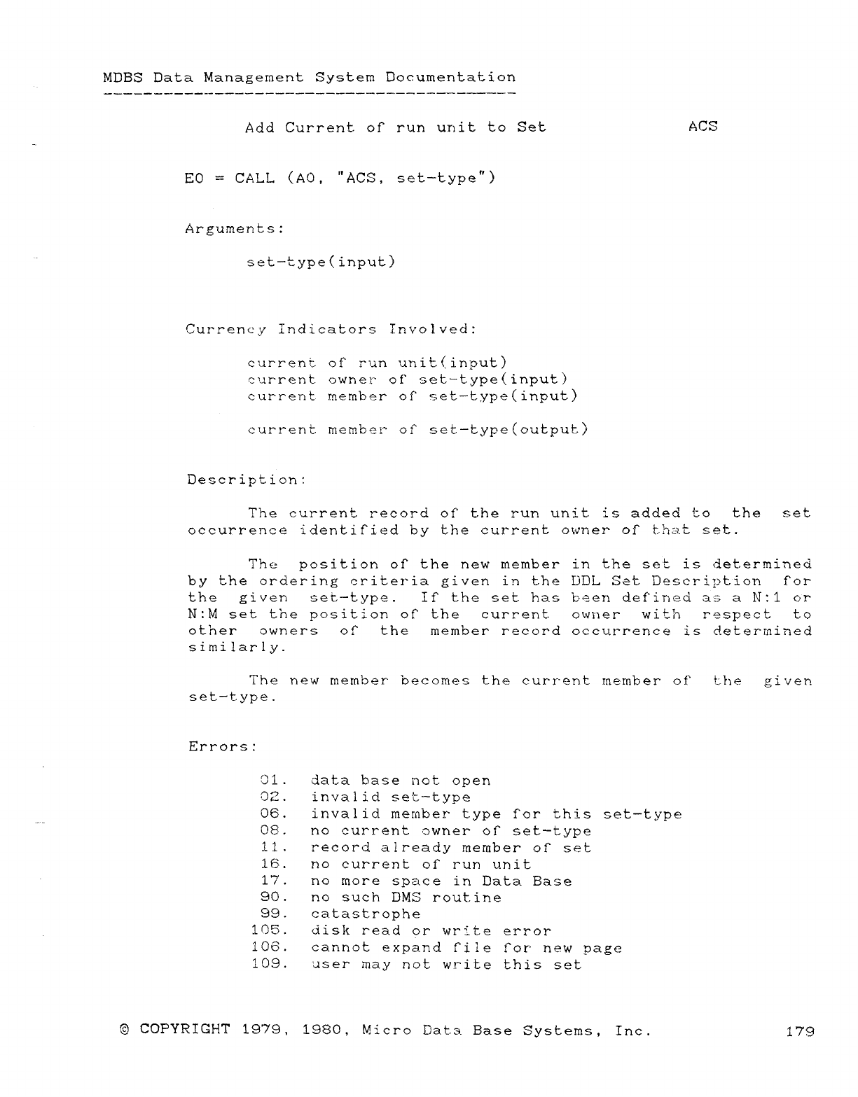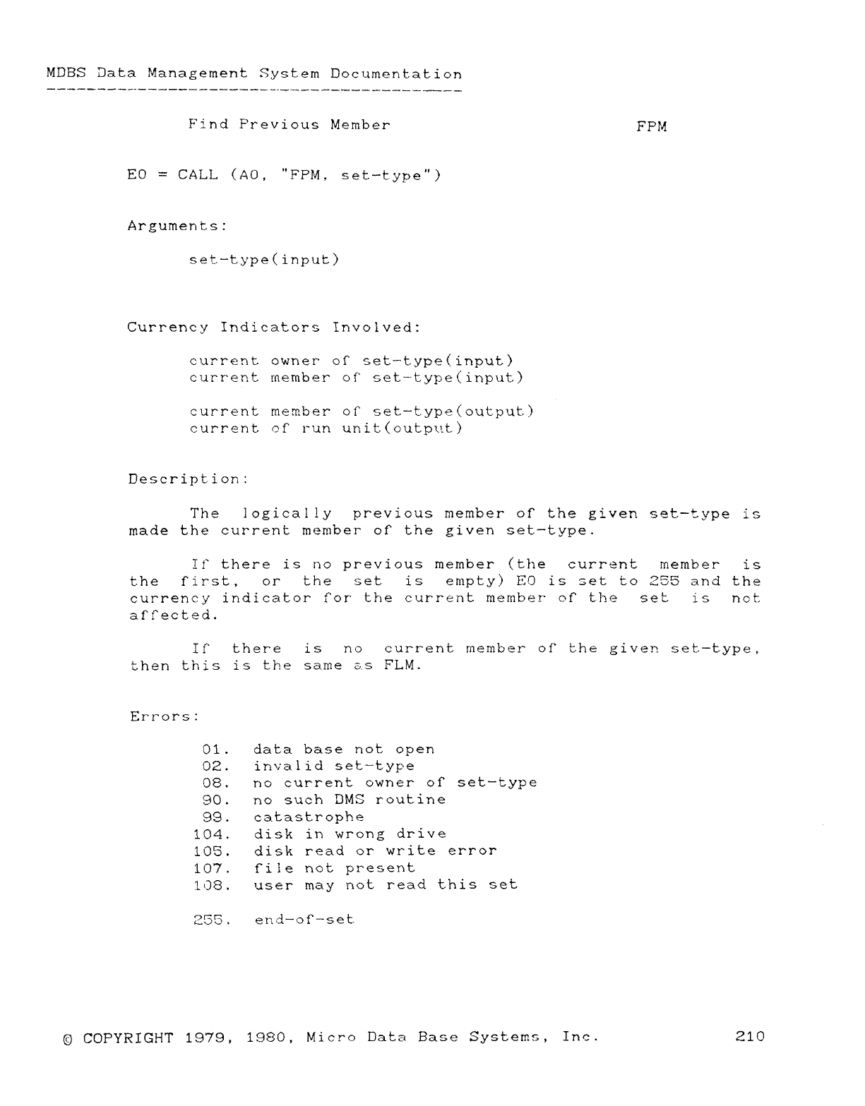 (9 COPYRIGHT 1979, 1980, Micro Data Base System.s, Inc. 26E