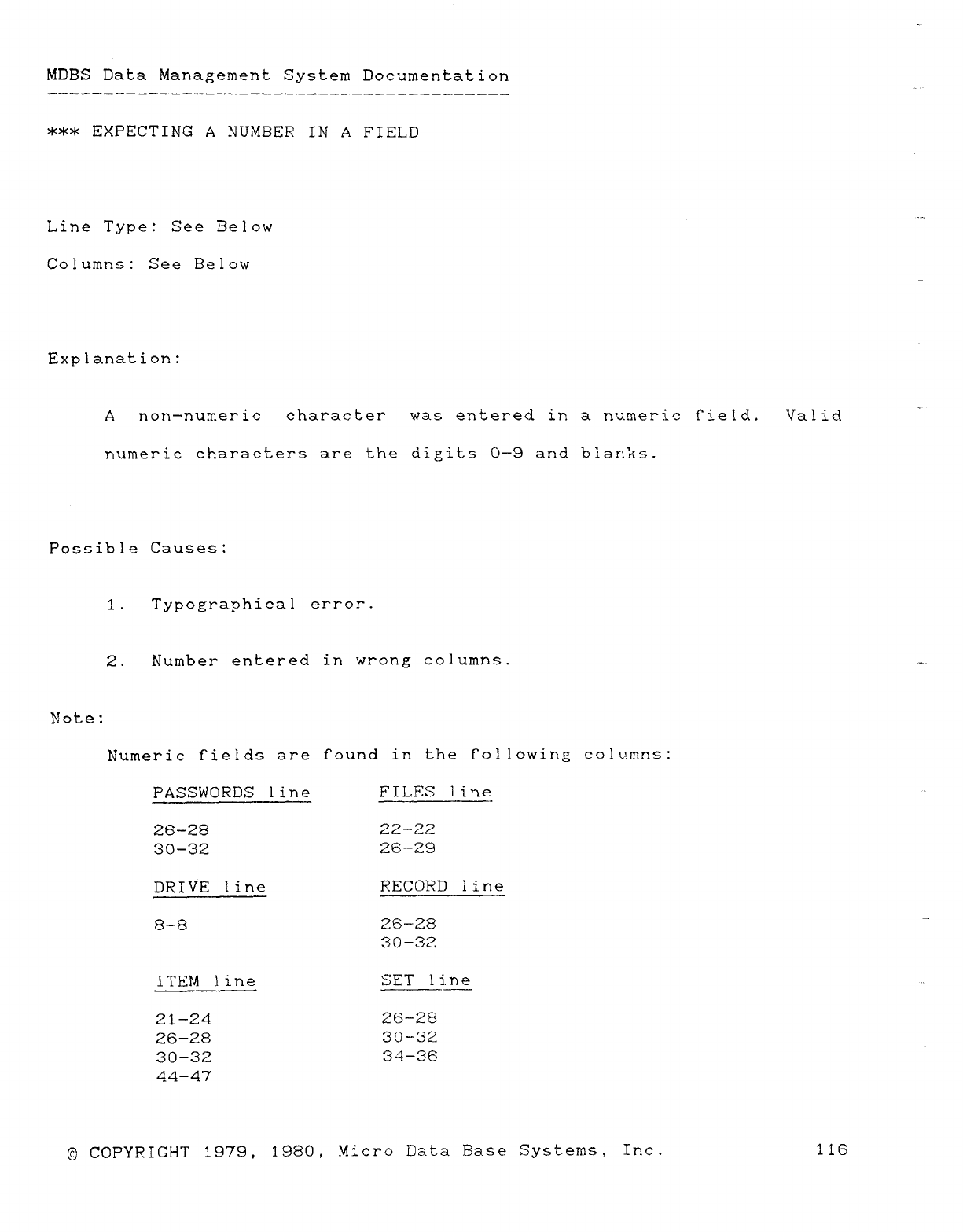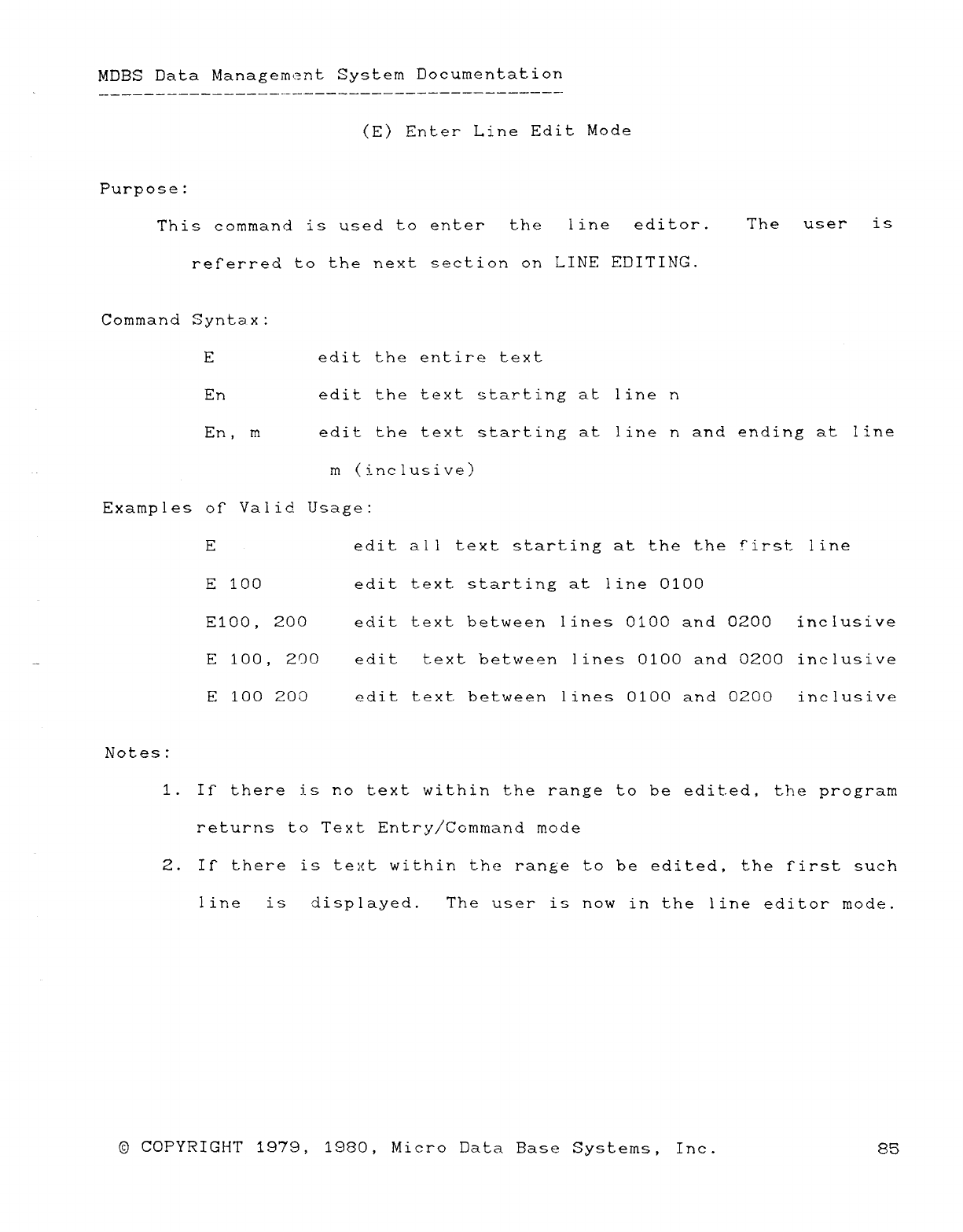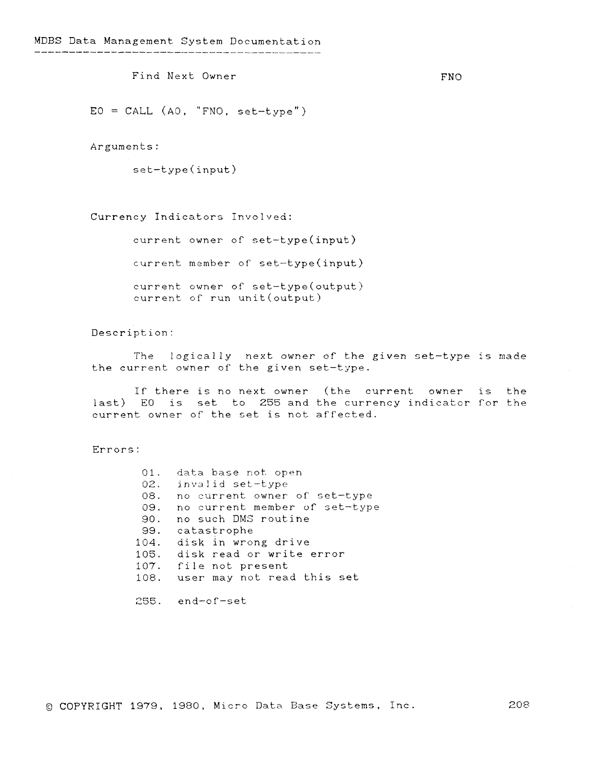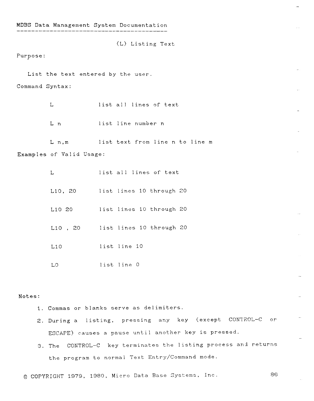 (9 COPYRIGHT 1979, 1980, Micro Data Base System.s, Inc. 26E