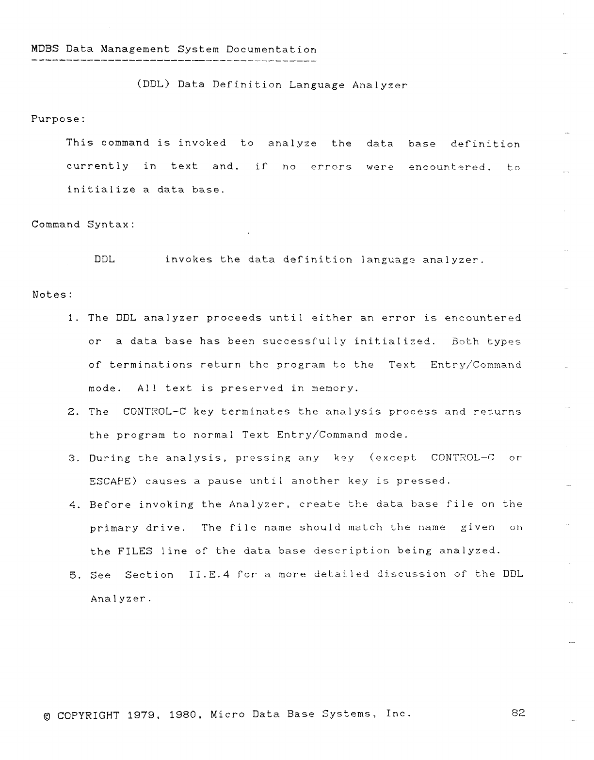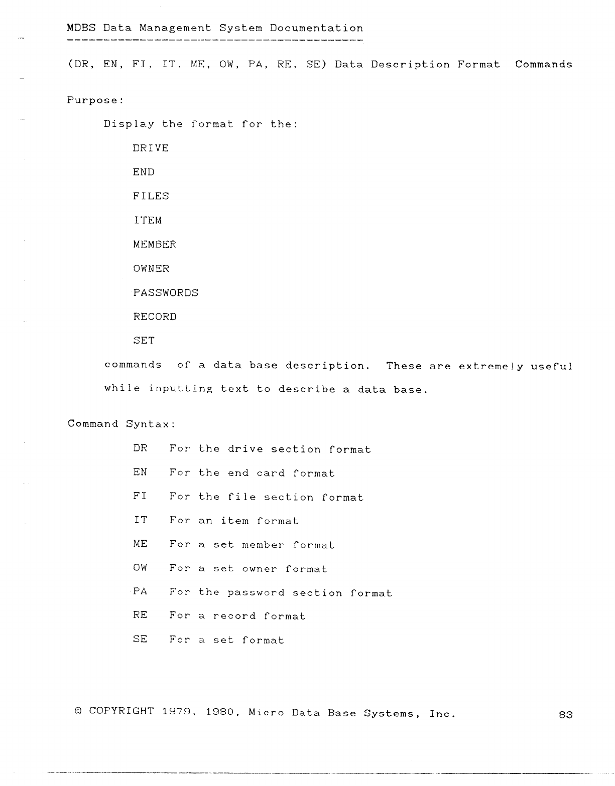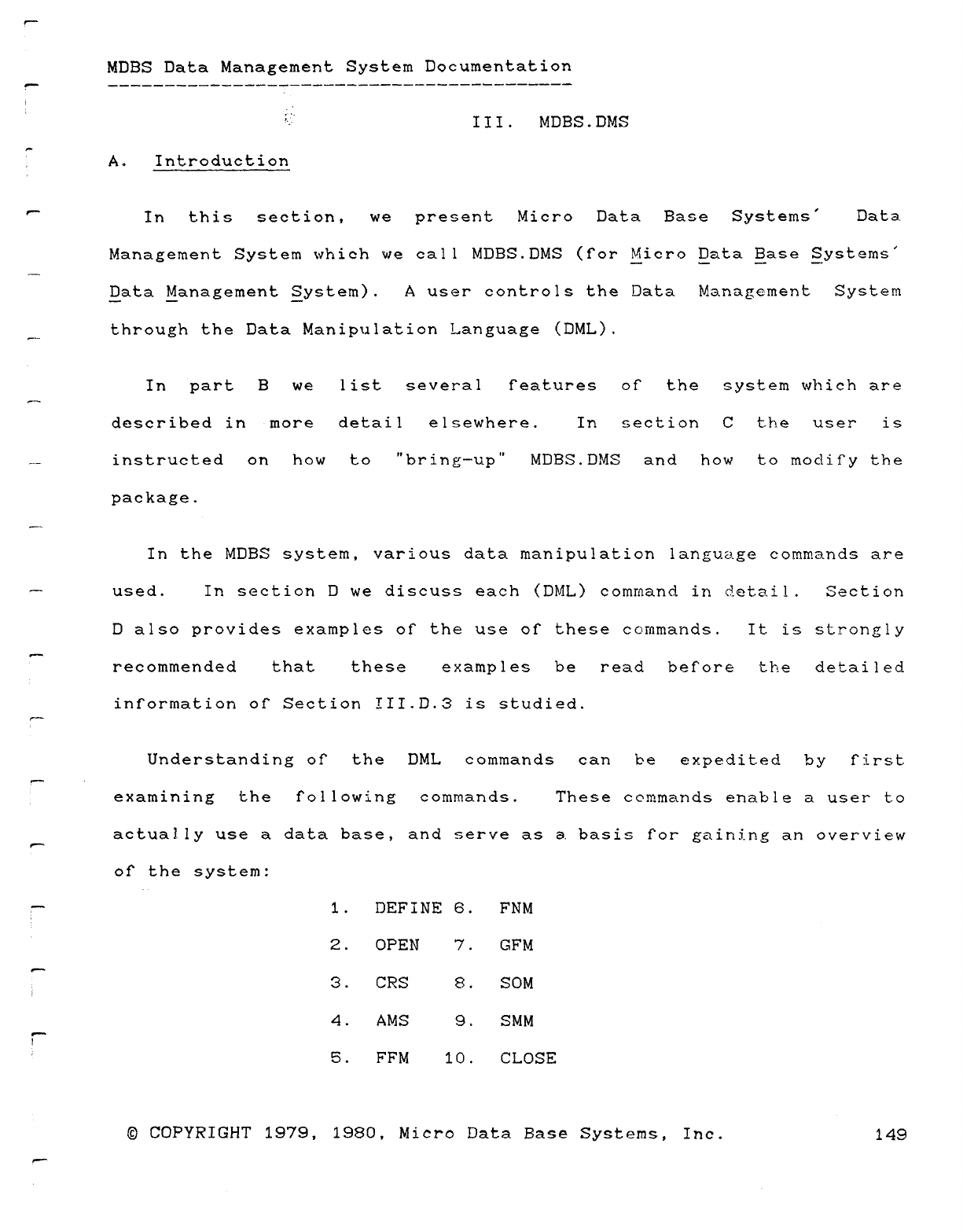 "'i: '"" ®pr'""-ñdix lists the comn"!'": r.ds in the MDBS.DMS system and brieí"ly