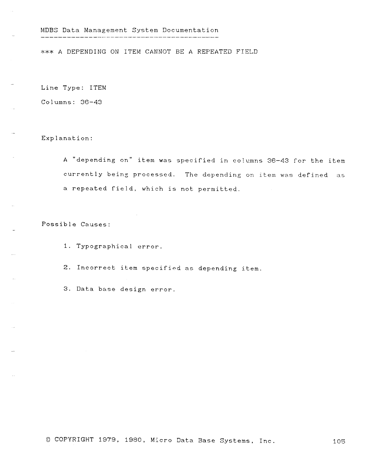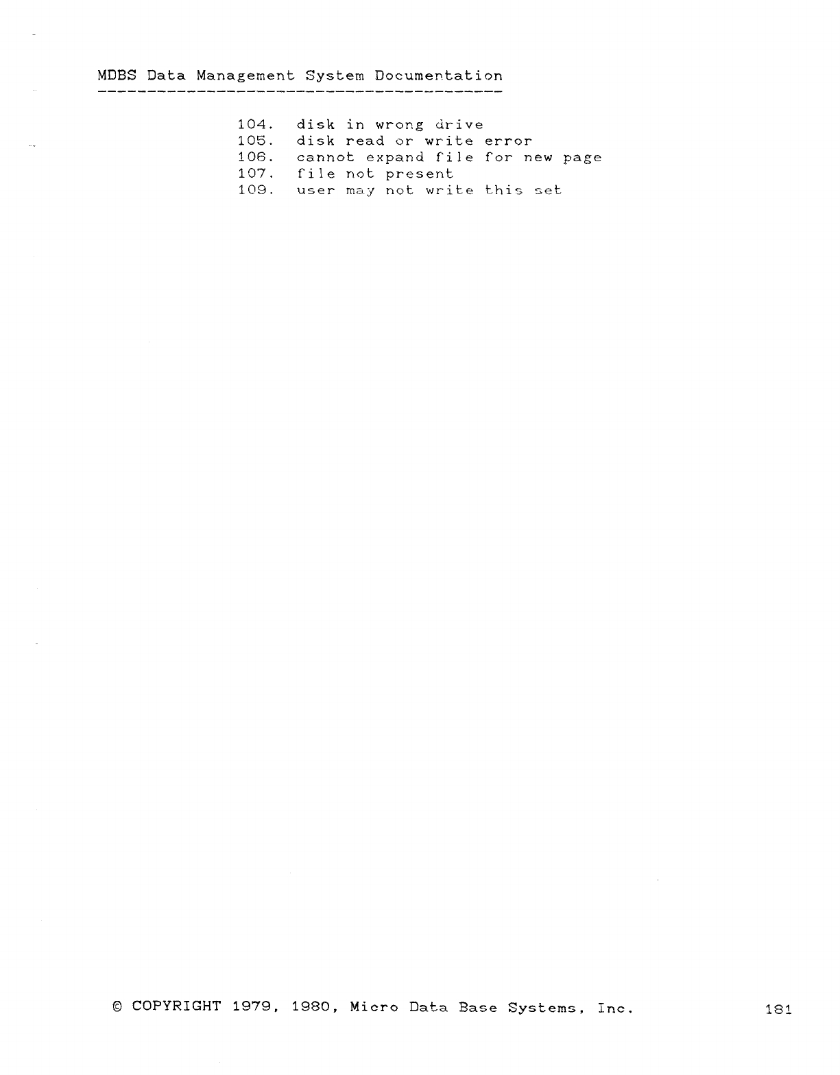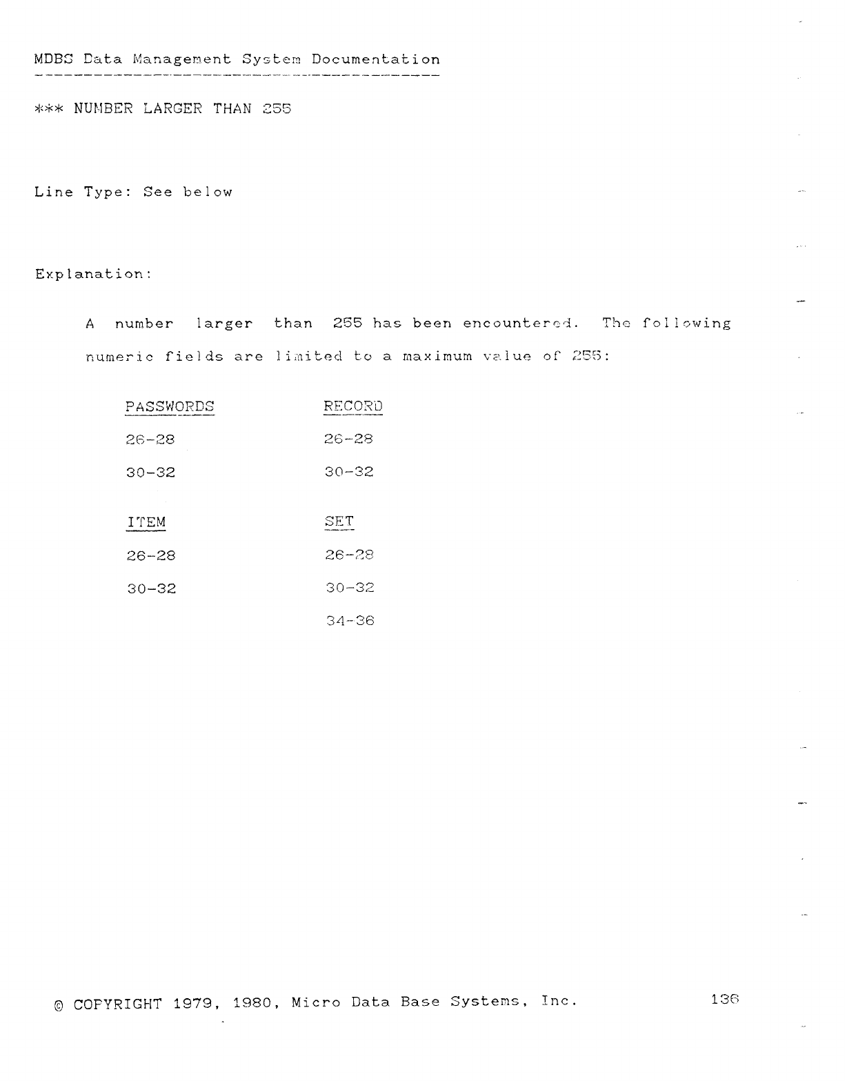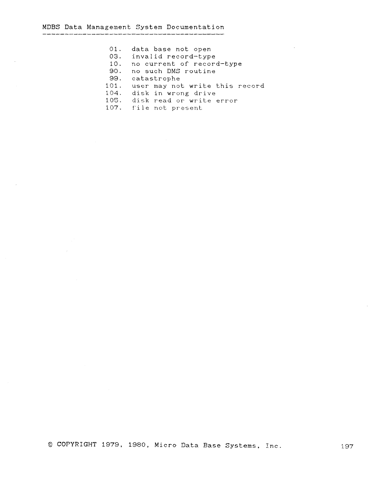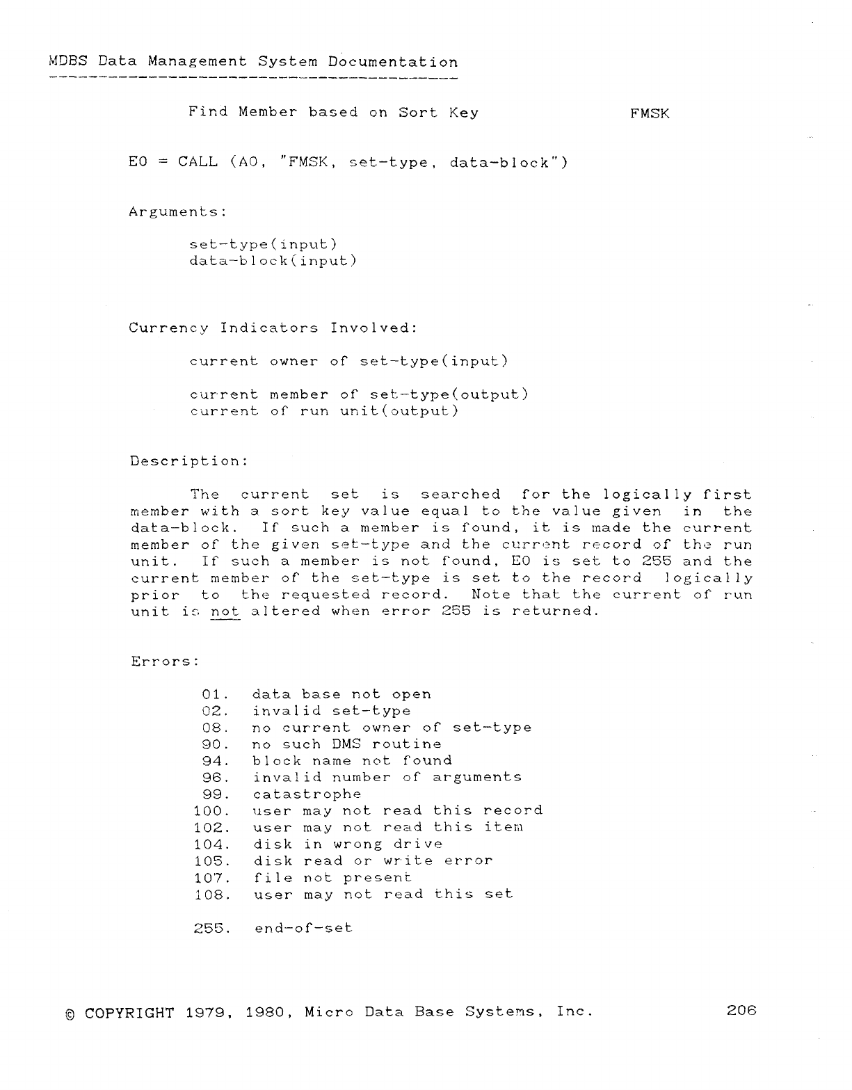 ©COPYRIGHT 1979, 1980, Micro Data Base Syst.eras, Inc. -267