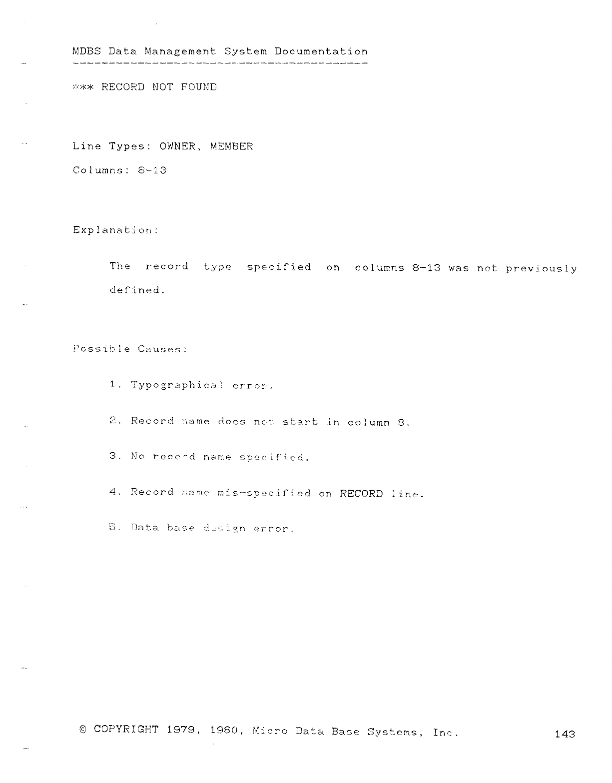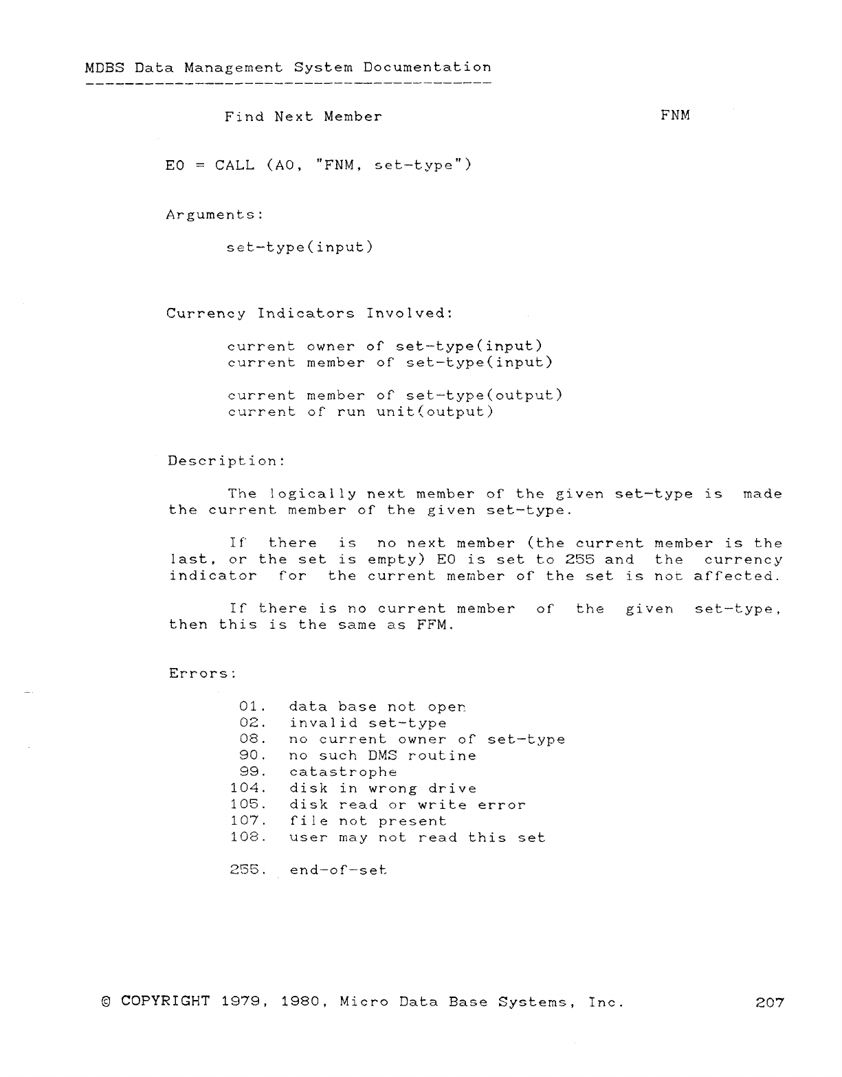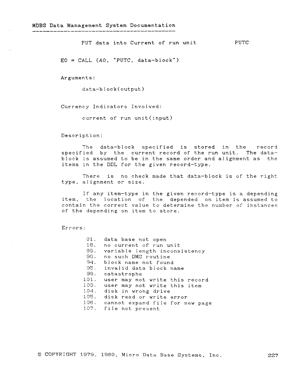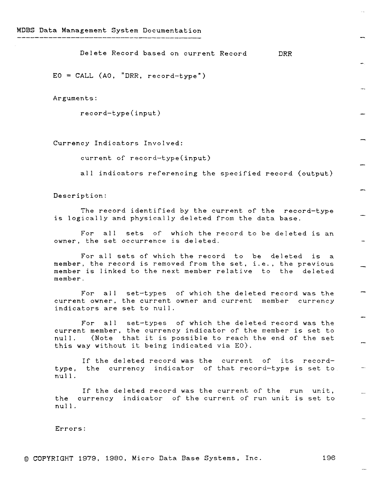 ©COPYRIGHT 1979, 1980, Micro Data Base Syst.eras, Inc. -267