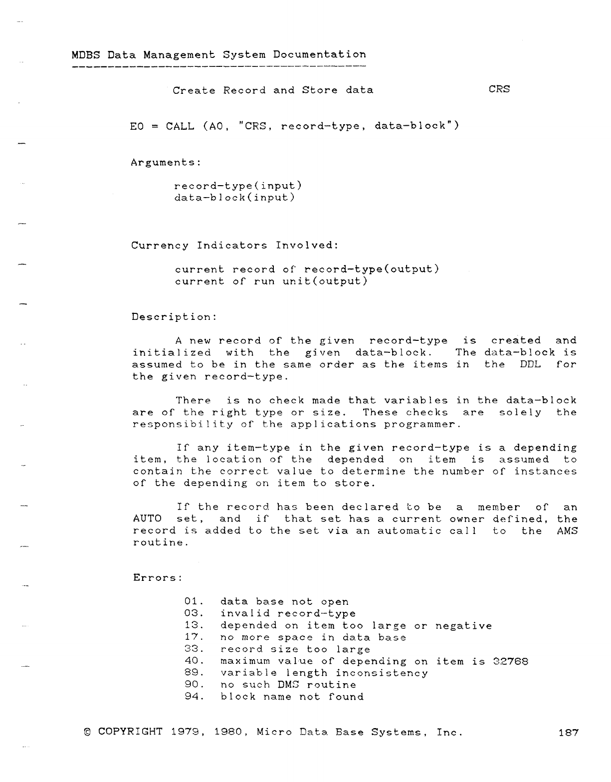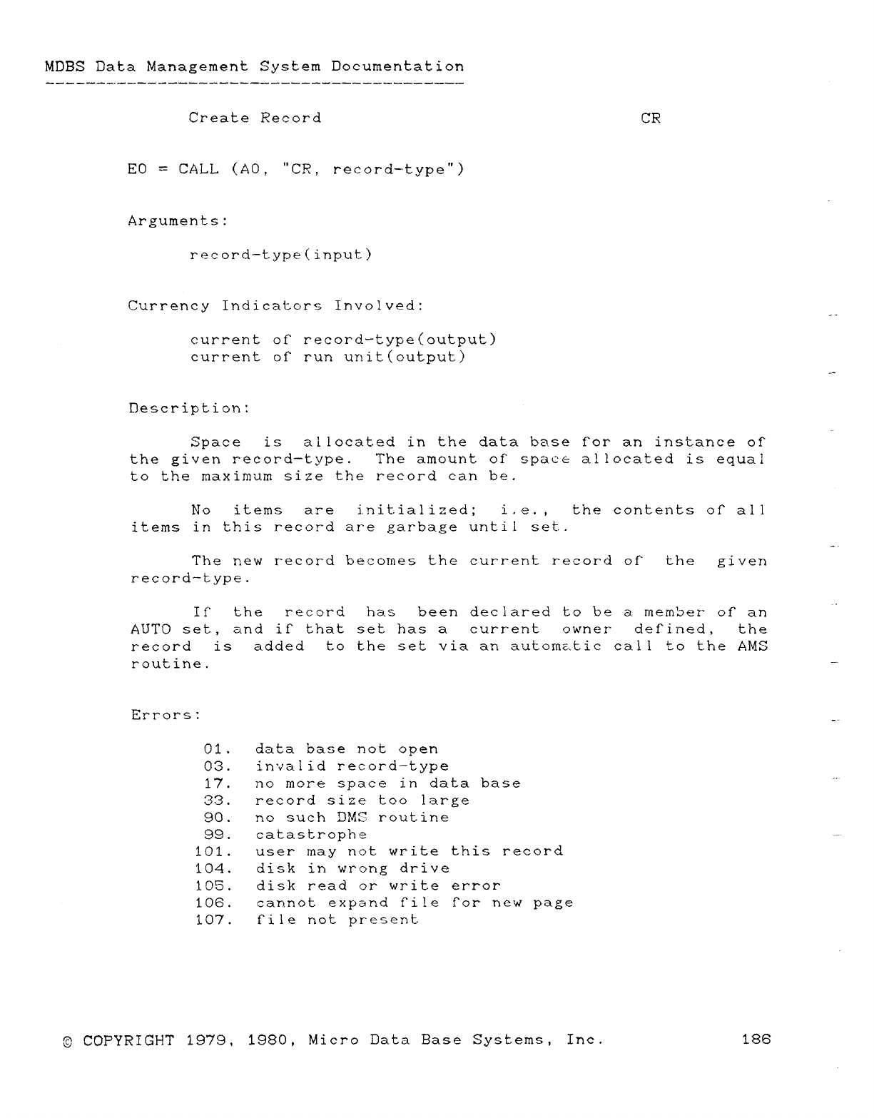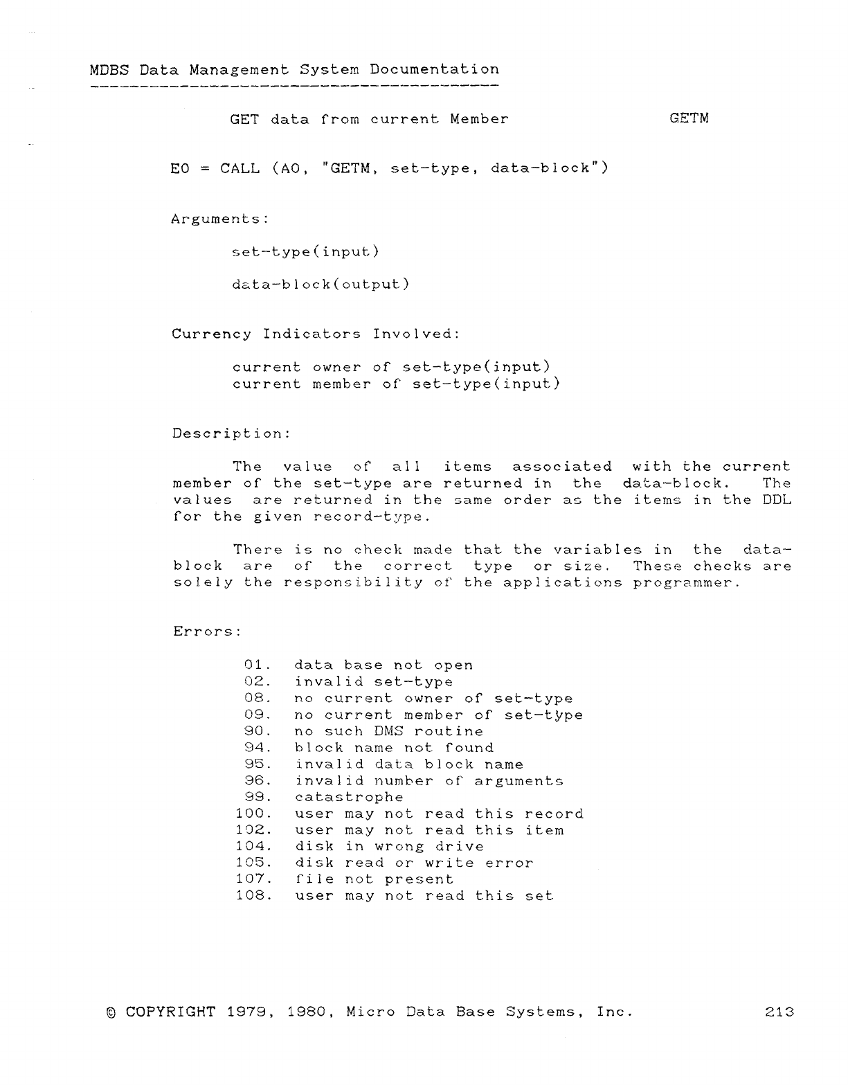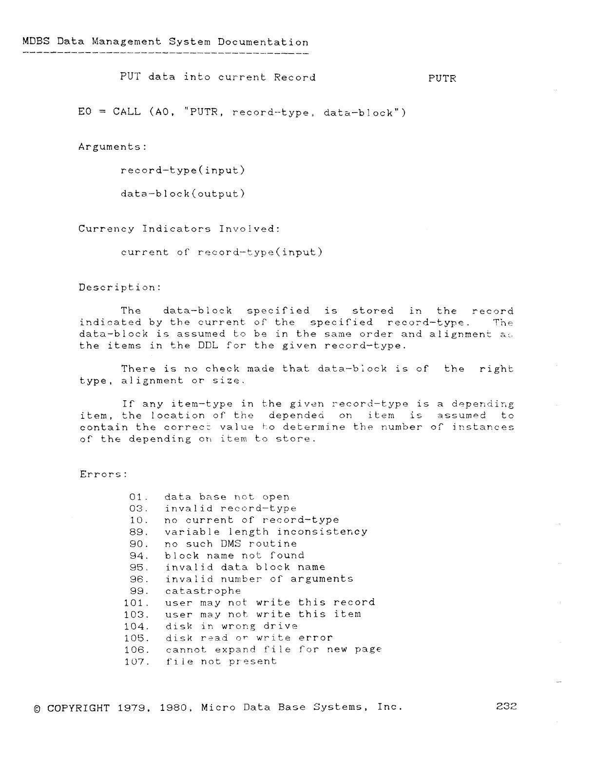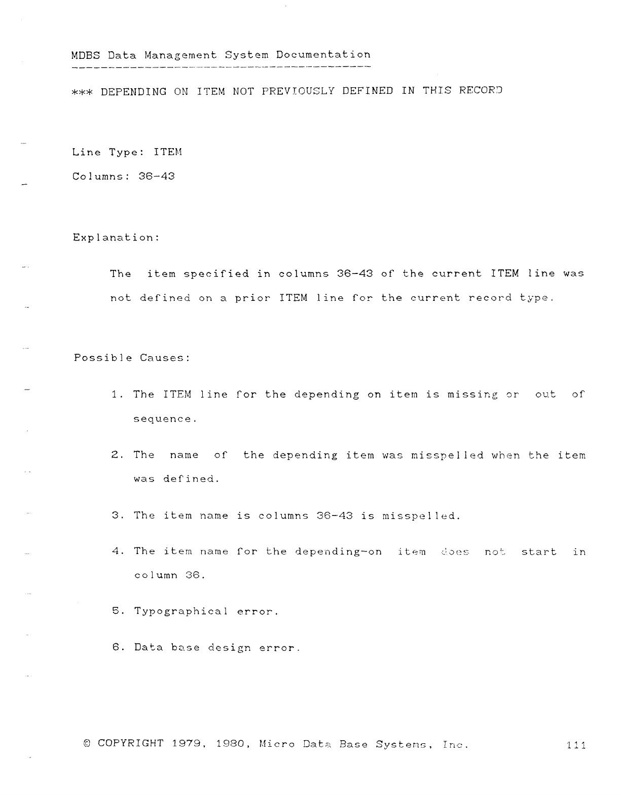 ©COPYRIGHT 1979, 1980, Micro Data Base Syst.eras, Inc. -267