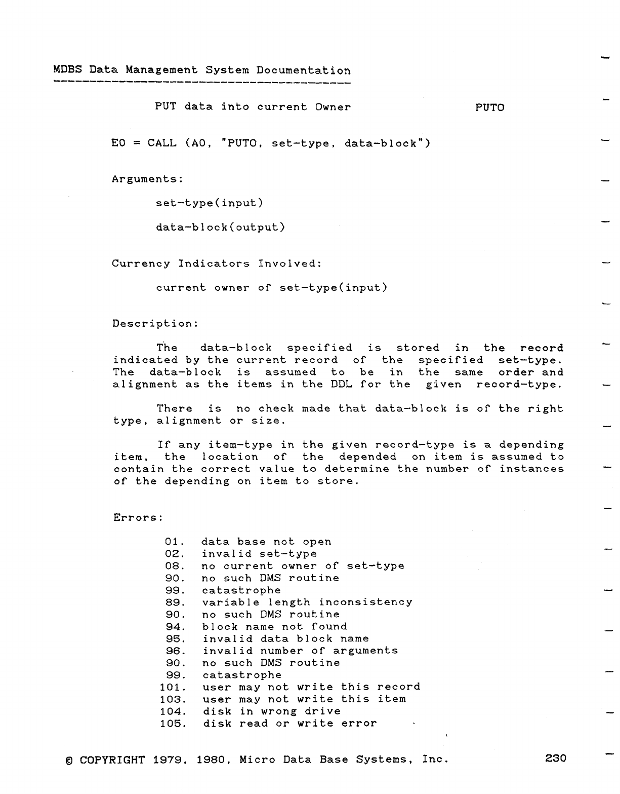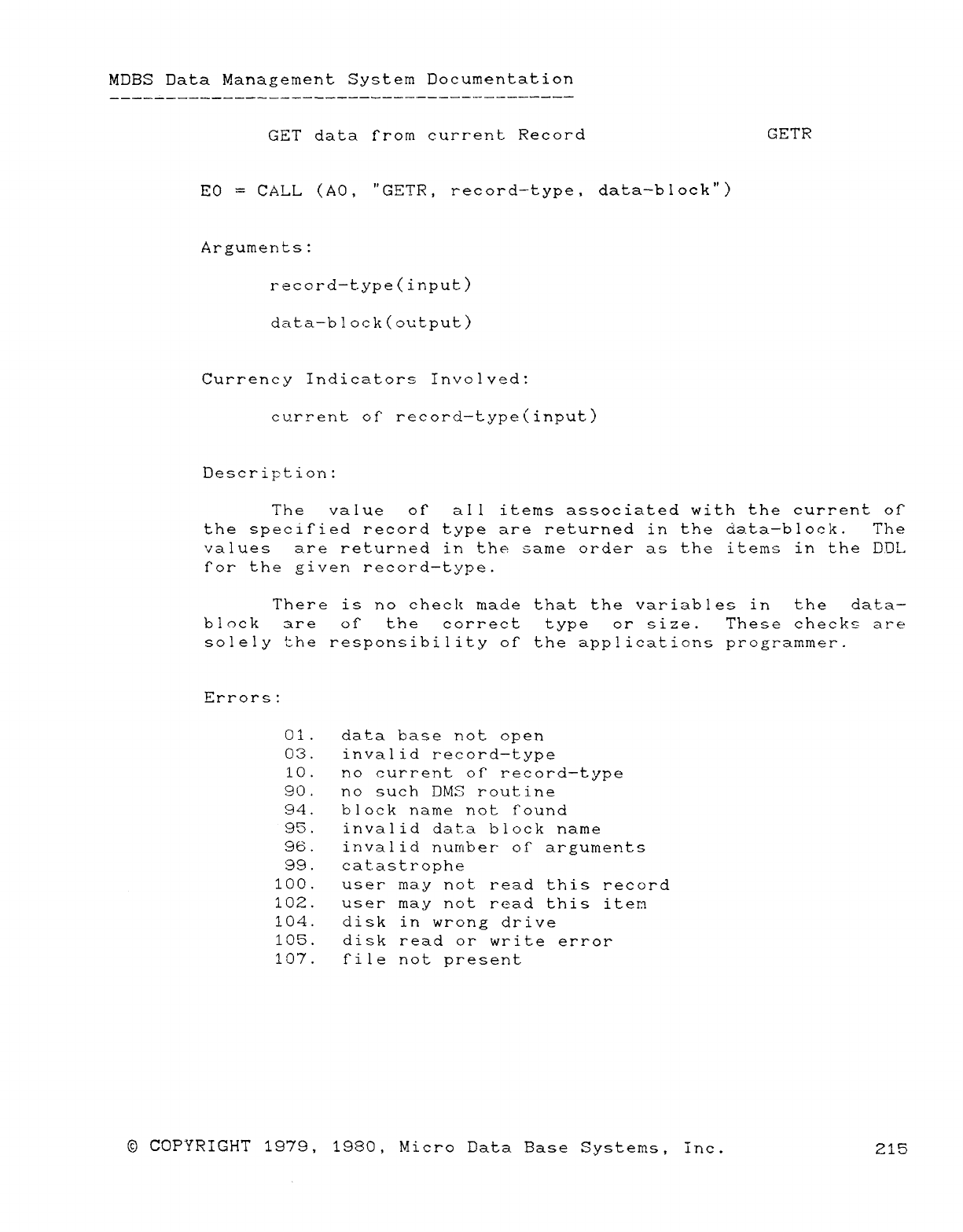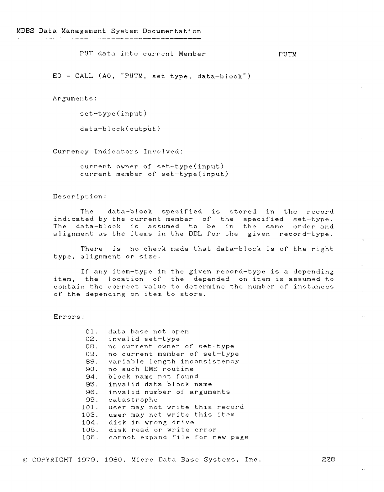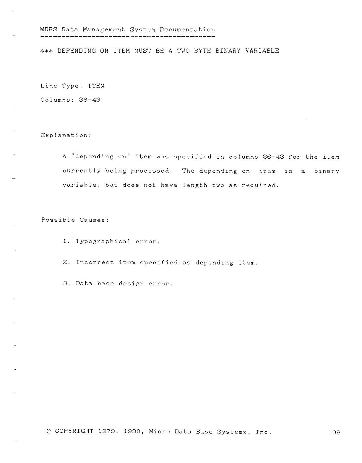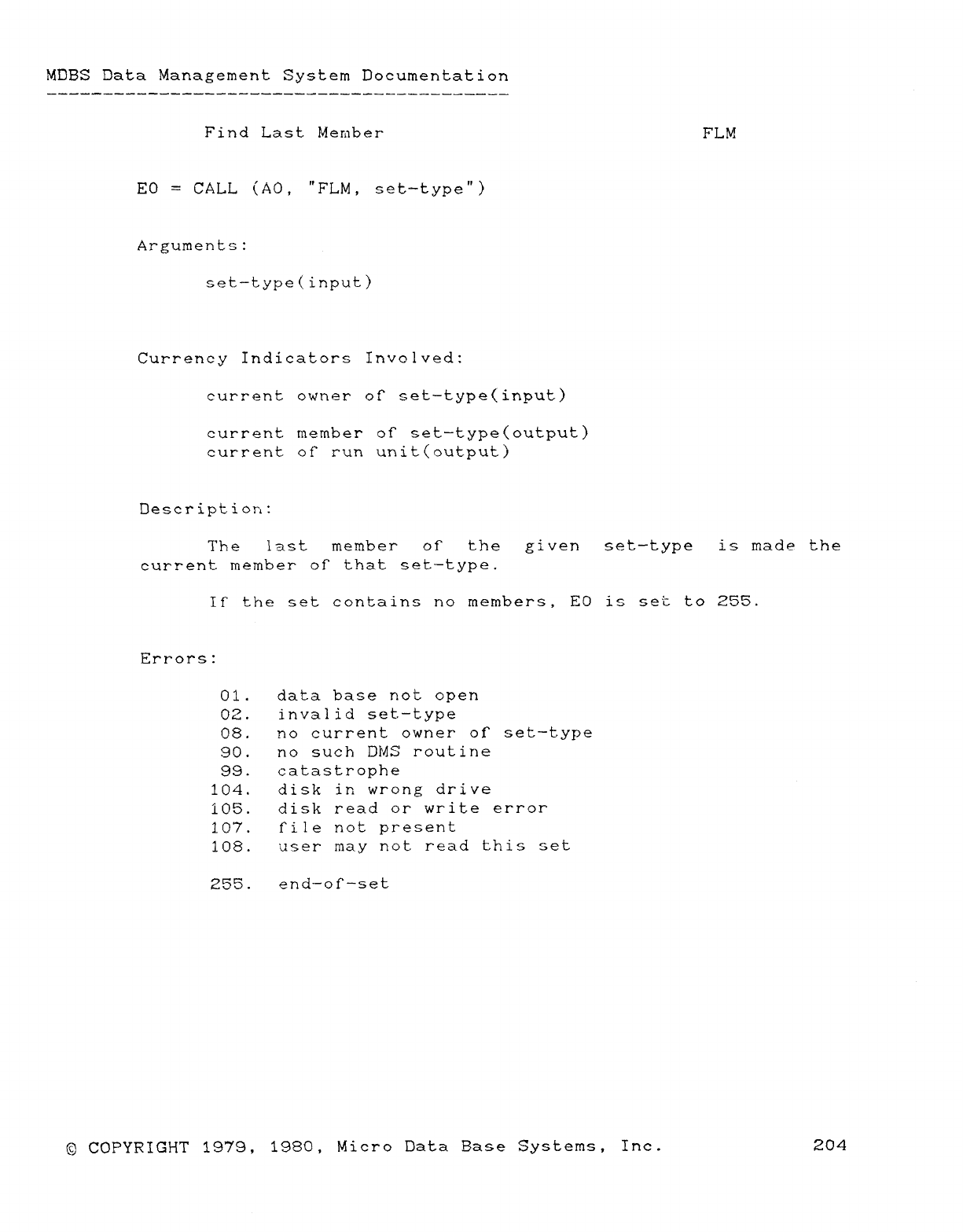 ©COPYRIGHT 1979, 1980, Micro Data Base Syst.eras, Inc. -267