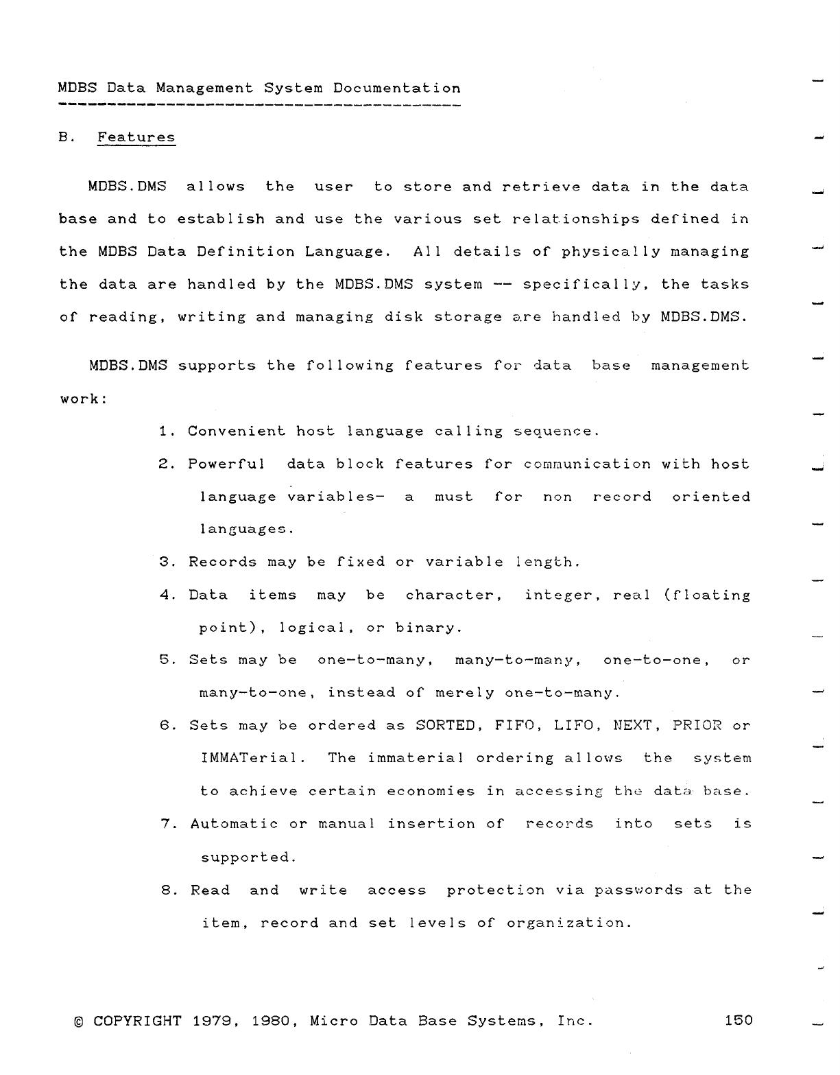 III. MDBS.DMS DATA MANAGEMENT SYSTEM...................... 149