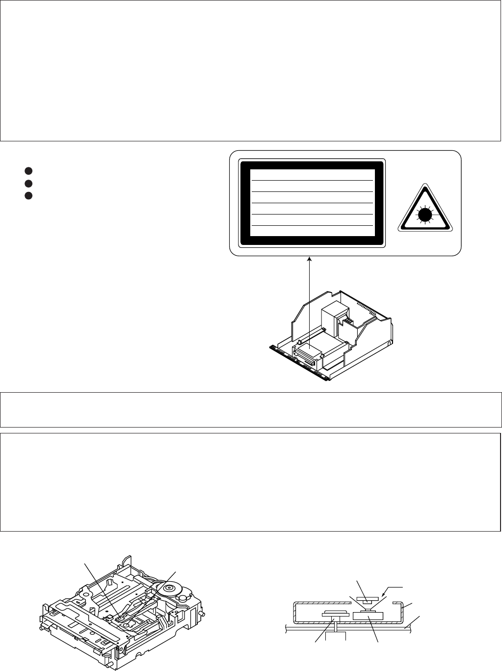 Do not attempt to readjust the laser pickup unit during replacement or servicing.