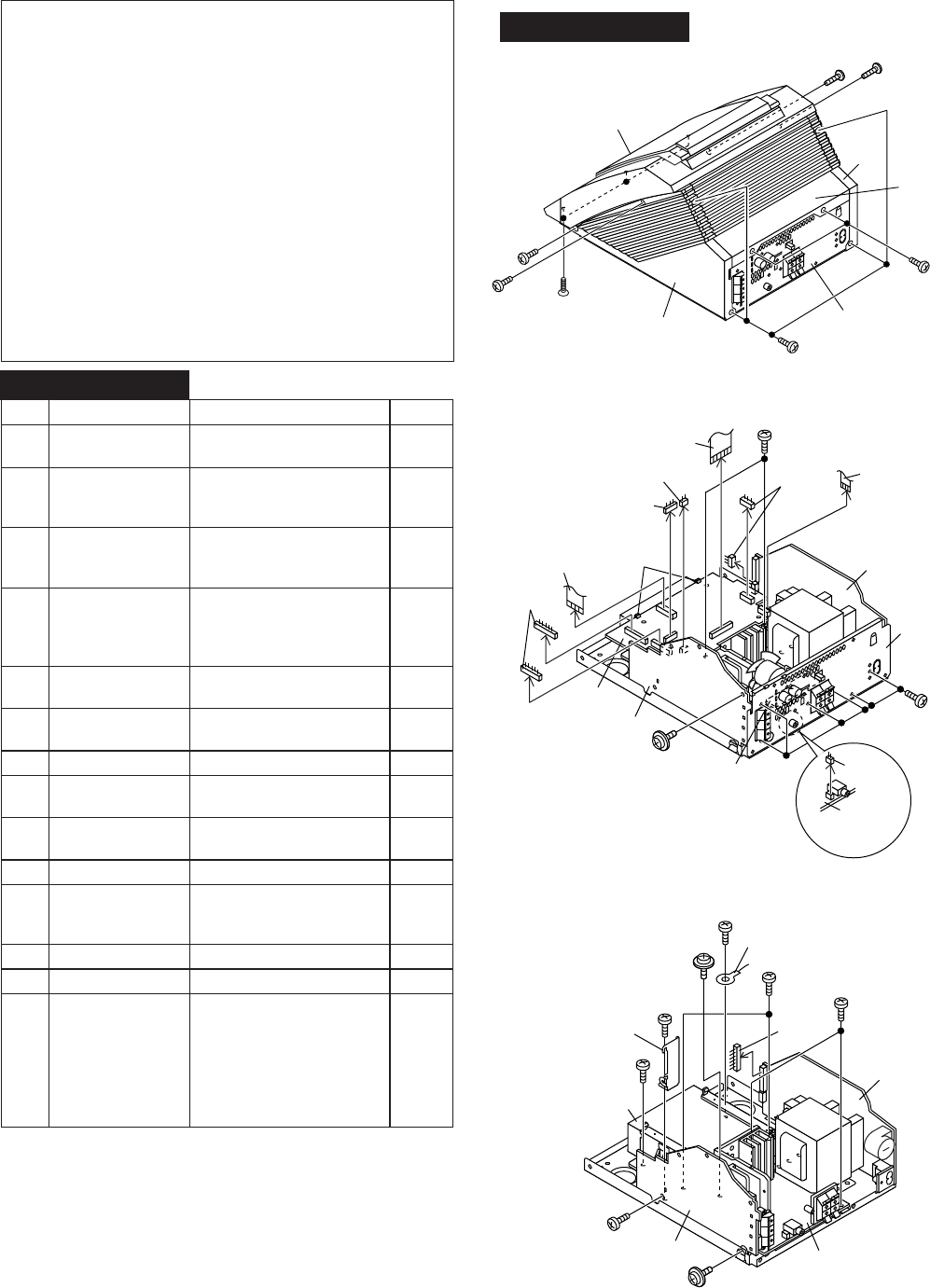 2) The laser power output of the pickup unit and replacement service parts are all factory preset before shipment.