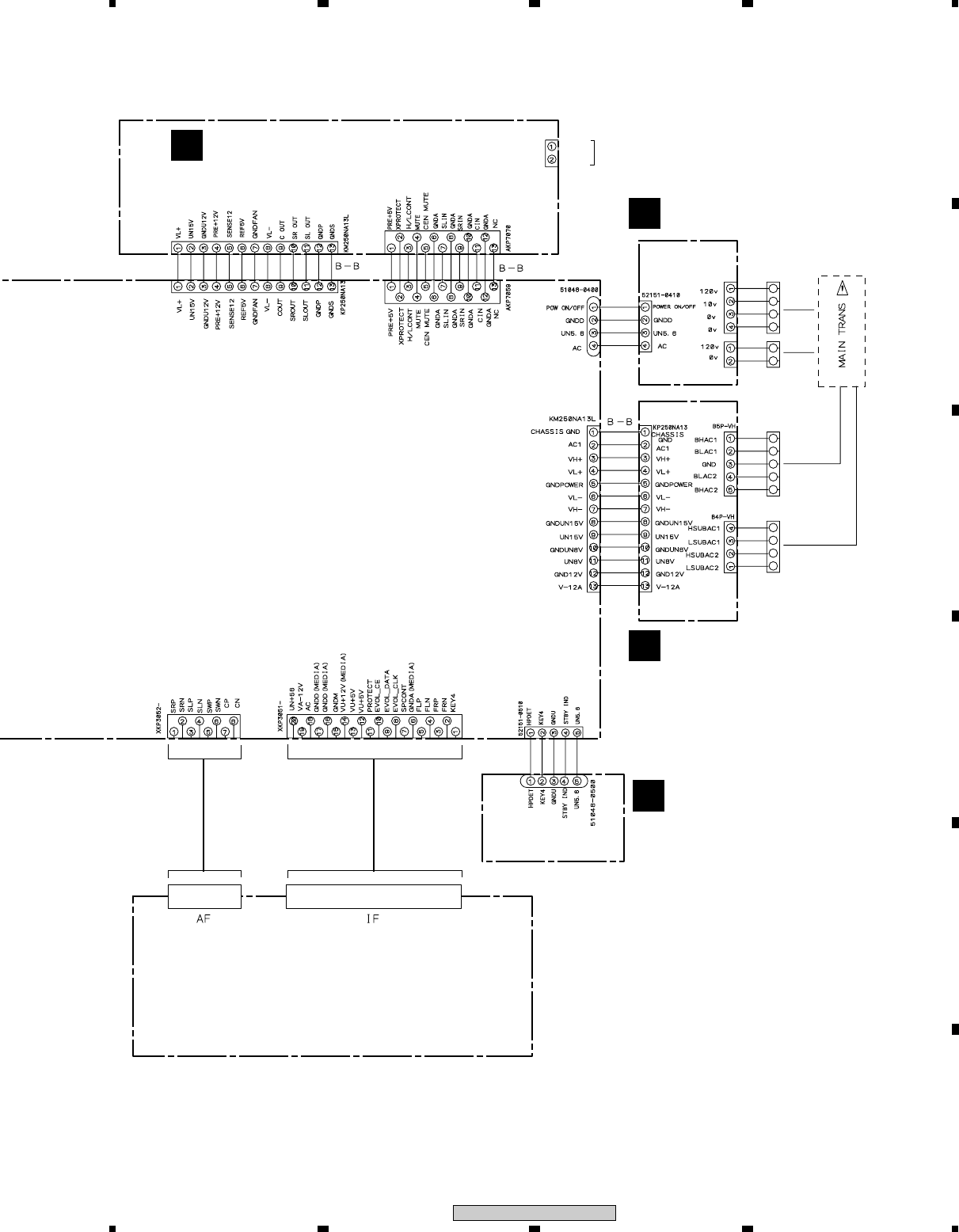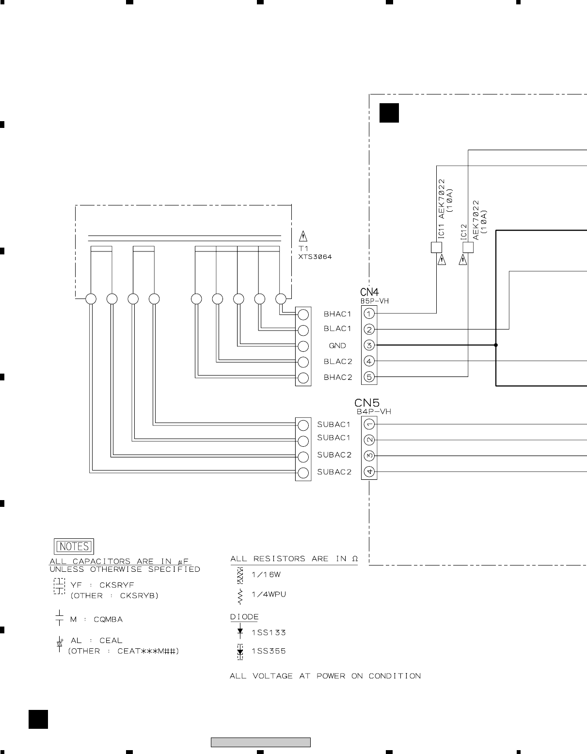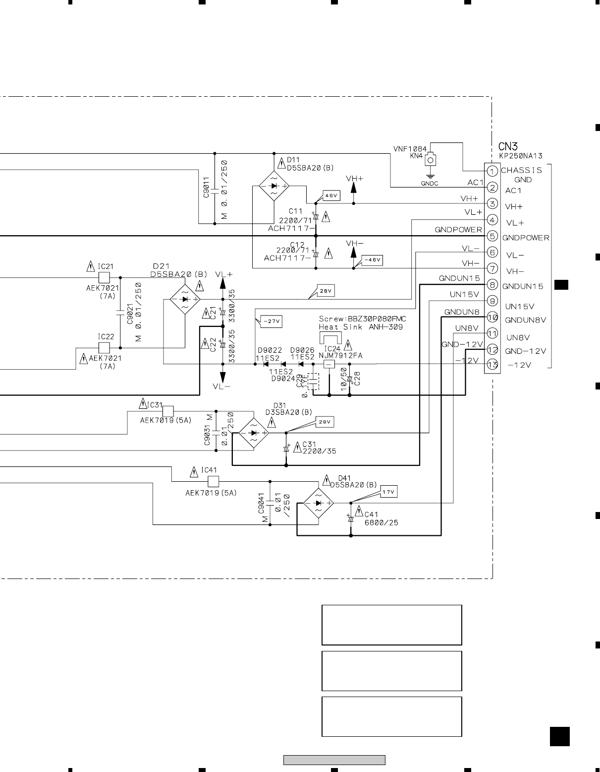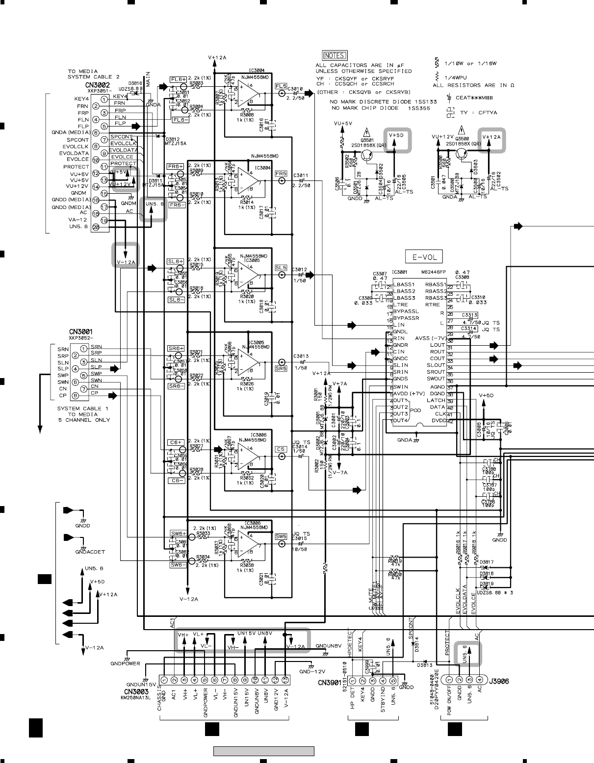 Note : Before the diagnosis, discharge the Amp power line. Connect the resistor of 100Ω or more between W301(VH+), W303(VH–) and