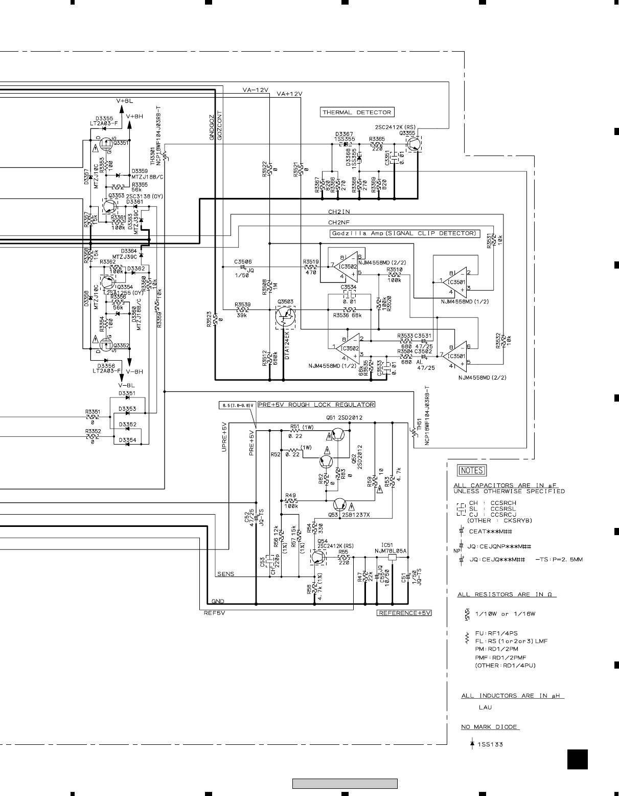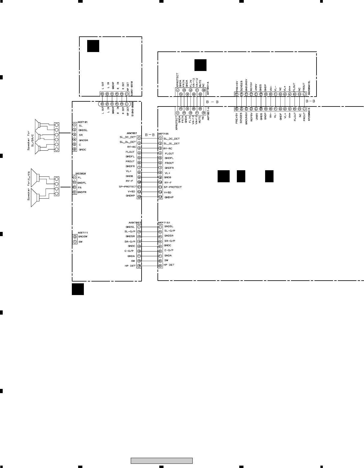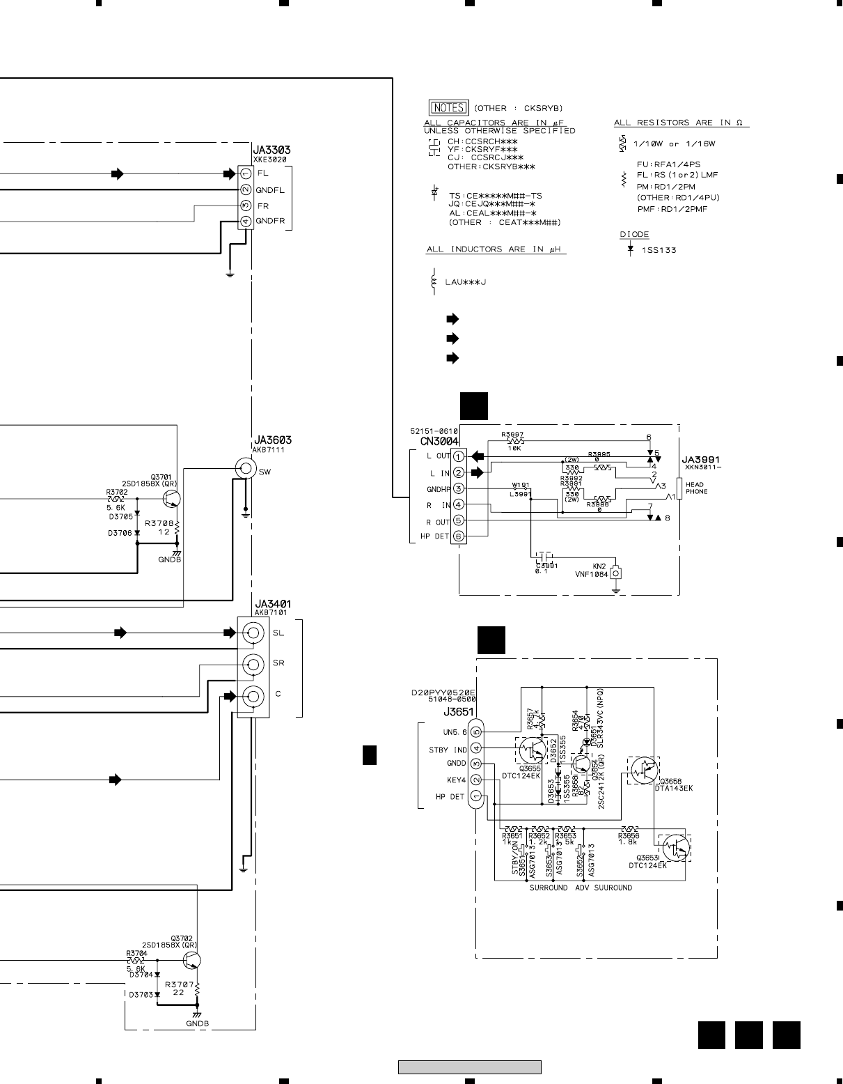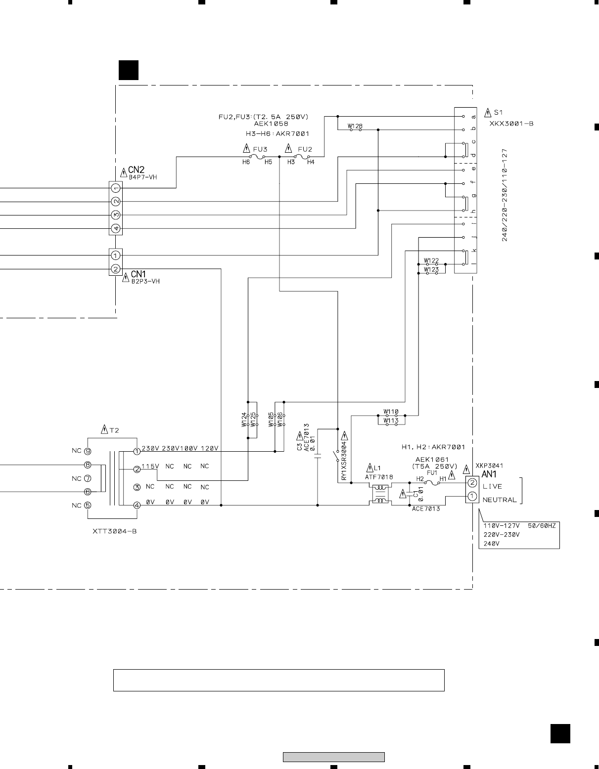 Note : Before the diagnosis, discharge the Amp power line. Connect the resistor of 100Ω or more between W301(VH+), W303(VH–) and
