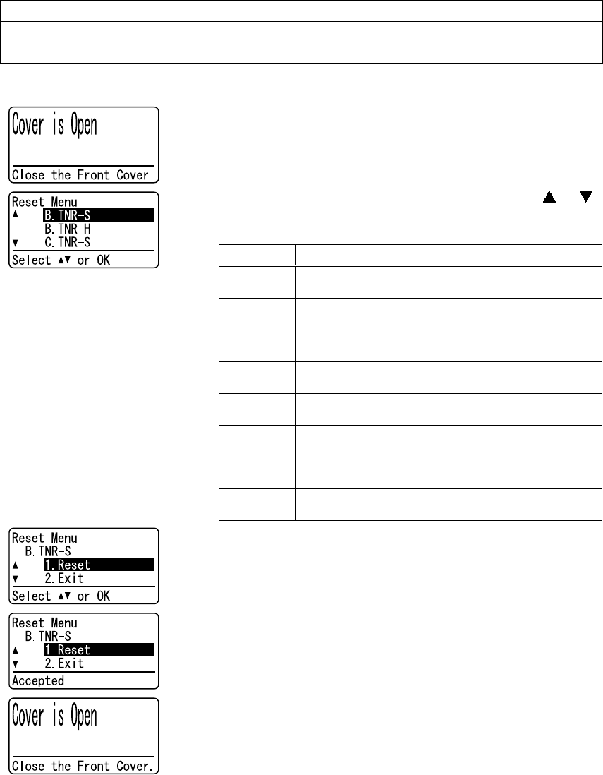 (Refer to “2.3 Parts Life Reset Function”, Chapter 2 of the Service Manual.)