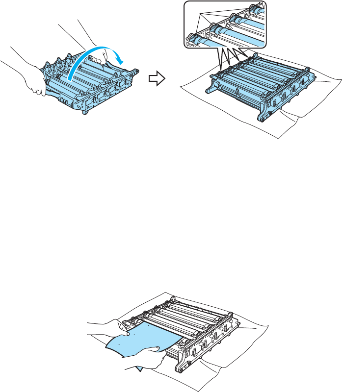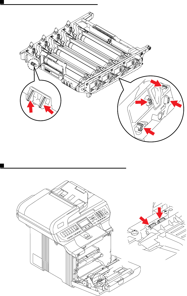 (3) Align those two sheets of paper with the marking lines on the drum unit remove sheet and