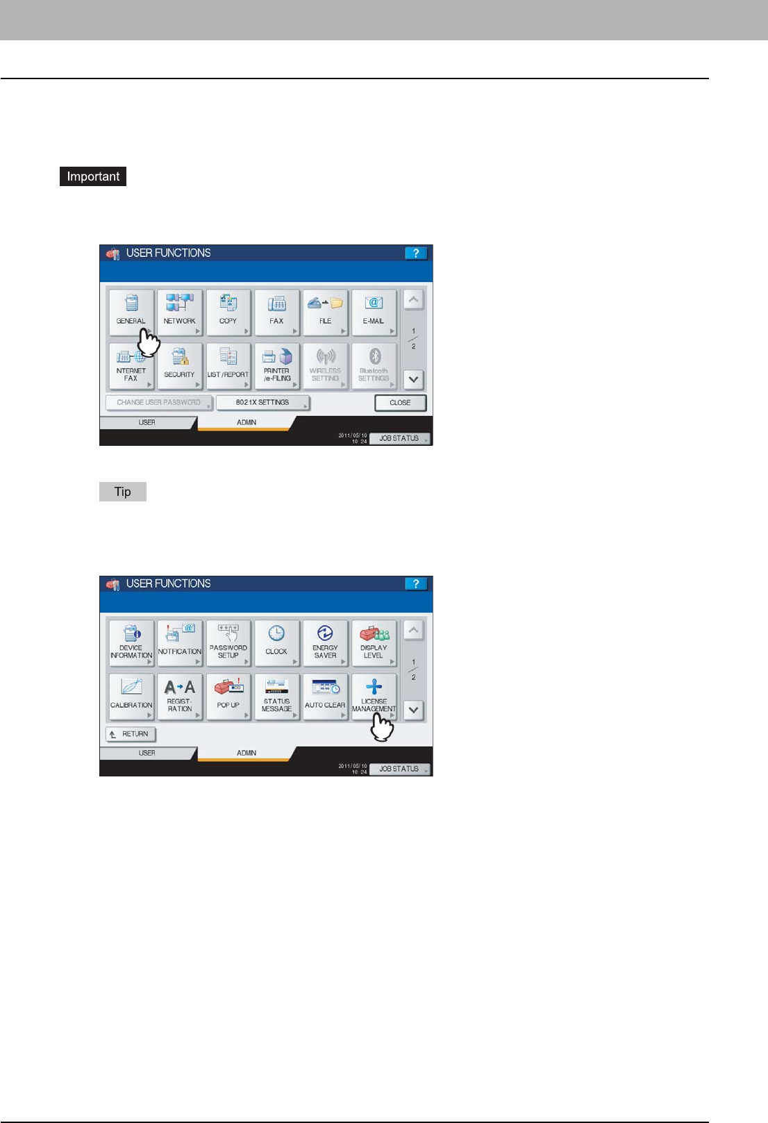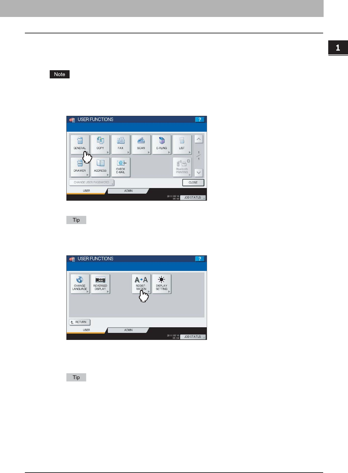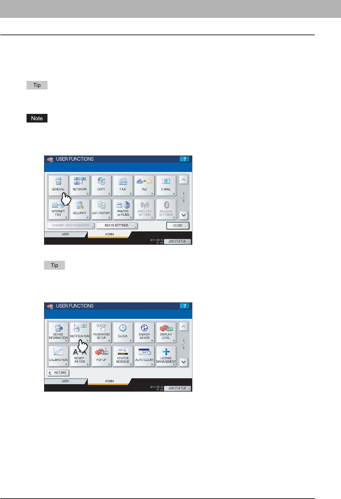 Illustrations for the control panel and the touch panel shown in this manual are those of the ES9460 MFP/ES9470