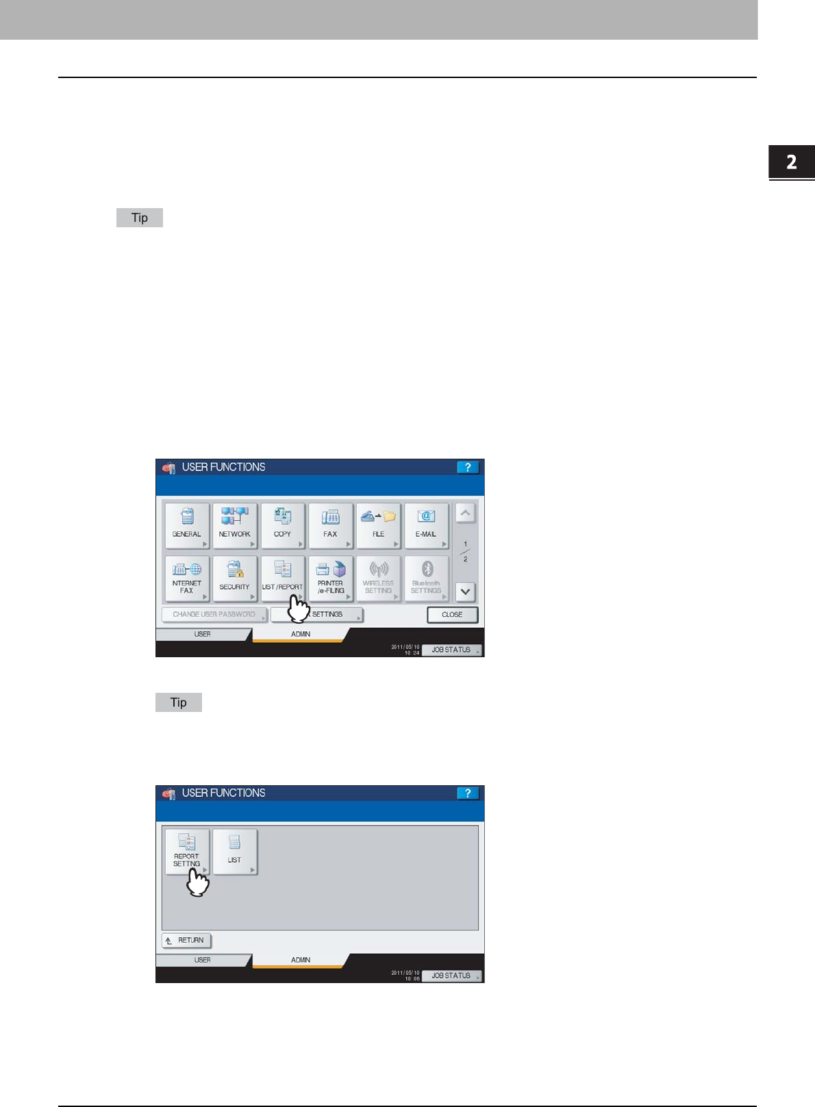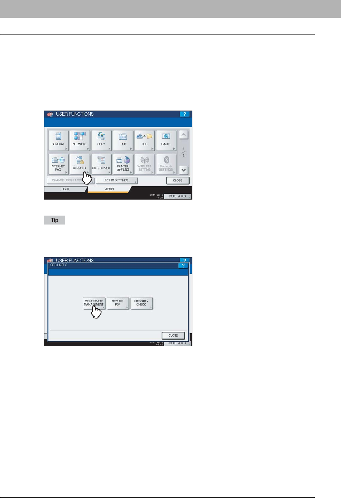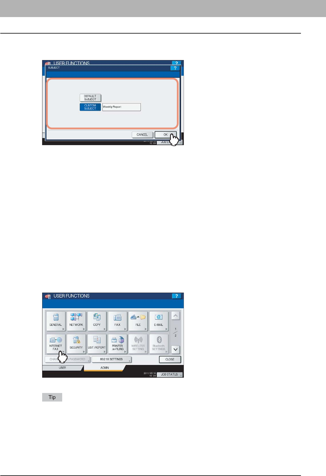 Illustrations for the control panel and the touch panel shown in this manual are those of the ES9460 MFP/ES9470