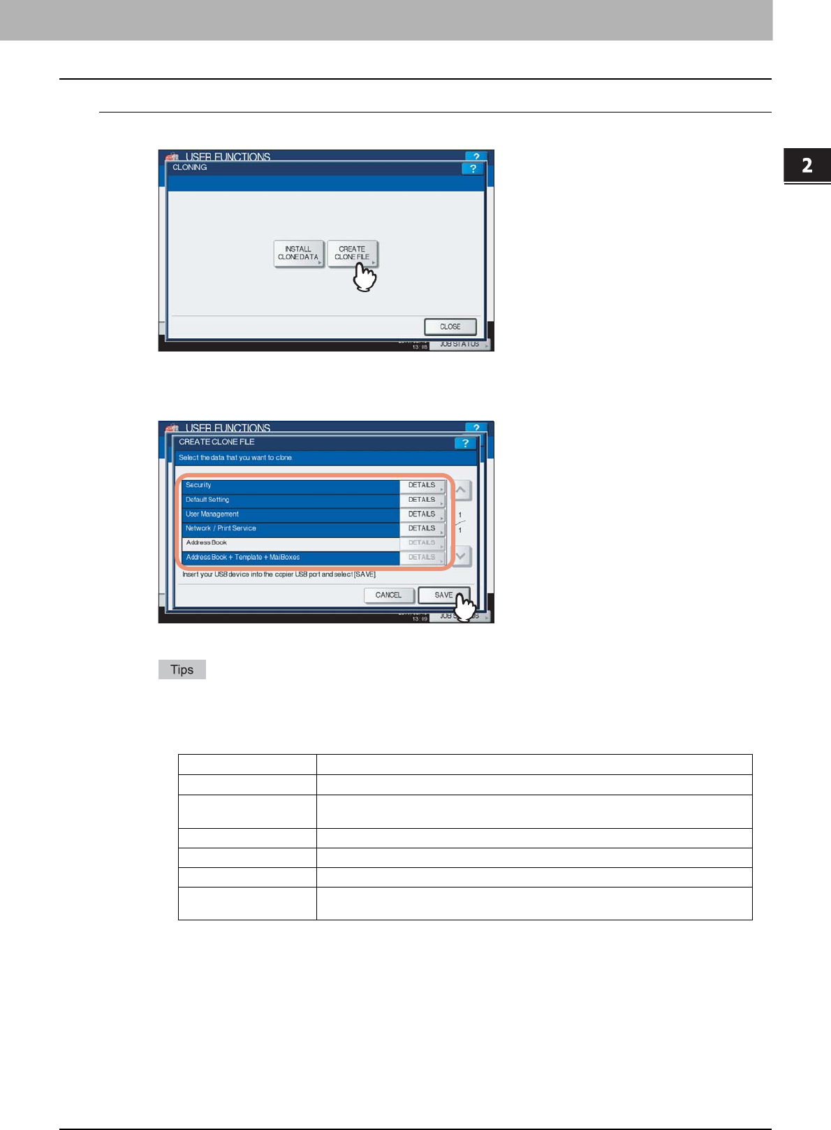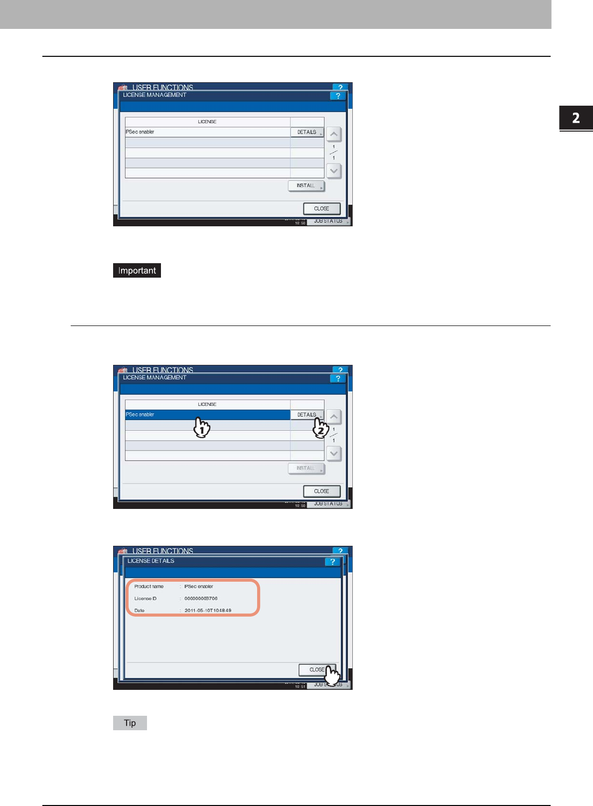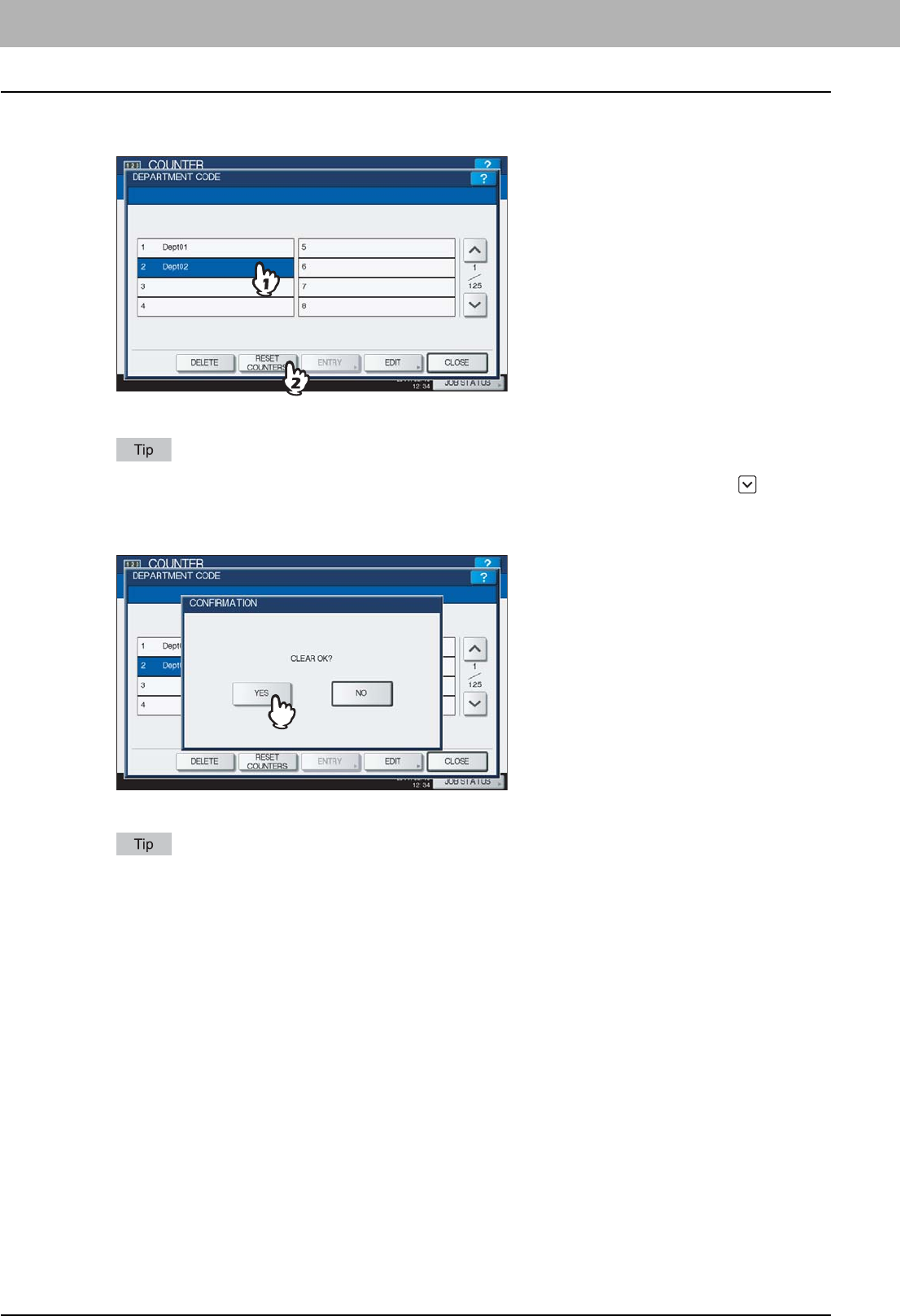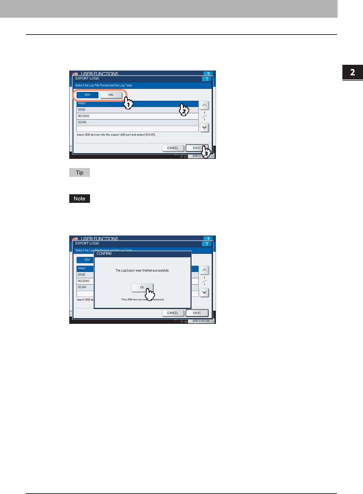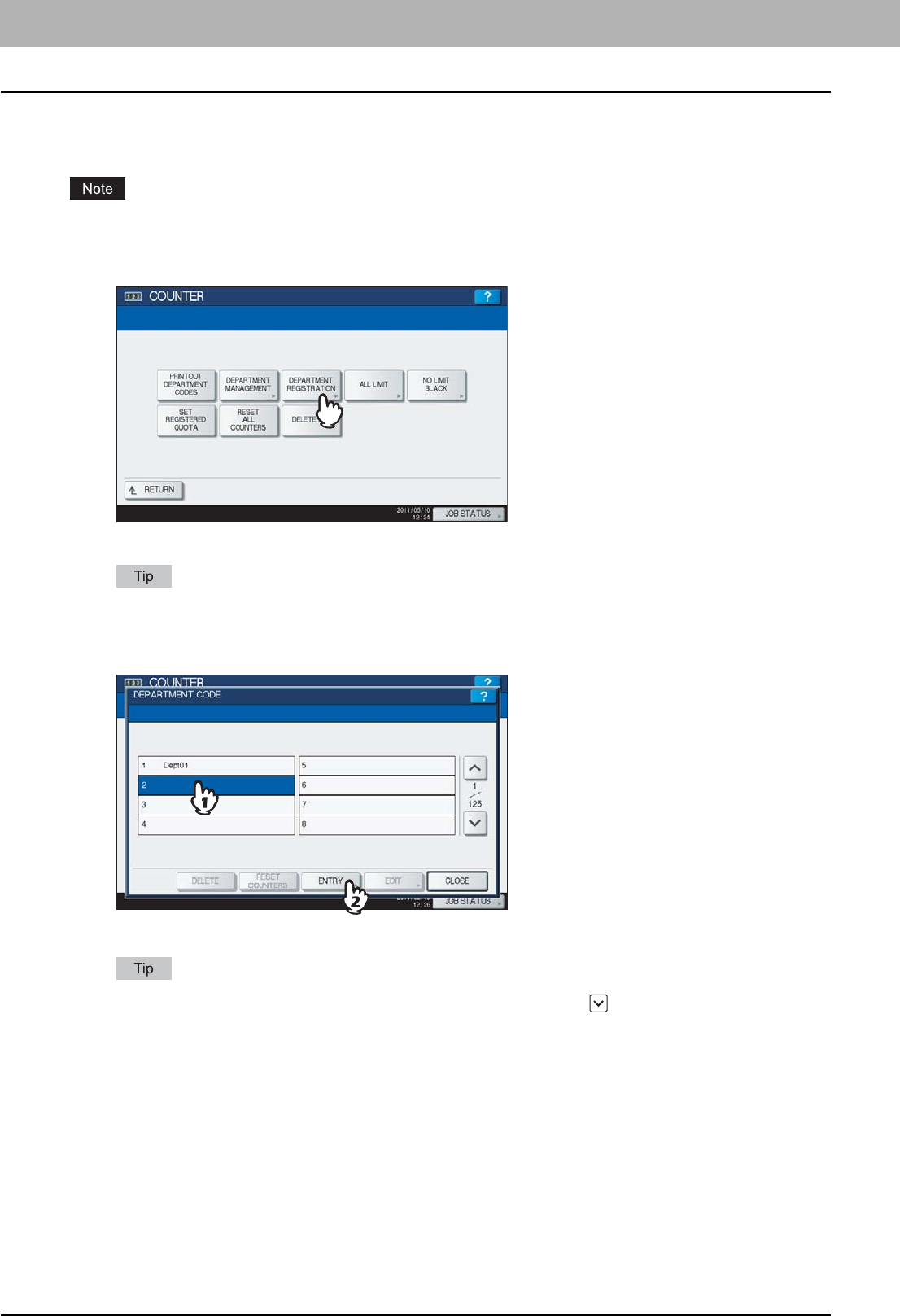 The details on the touch panel menus may differ depending on the operating environment such as whether options are