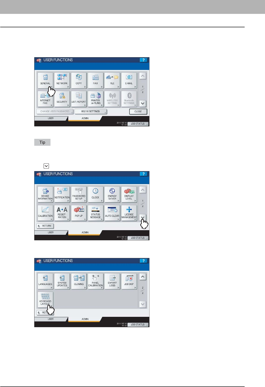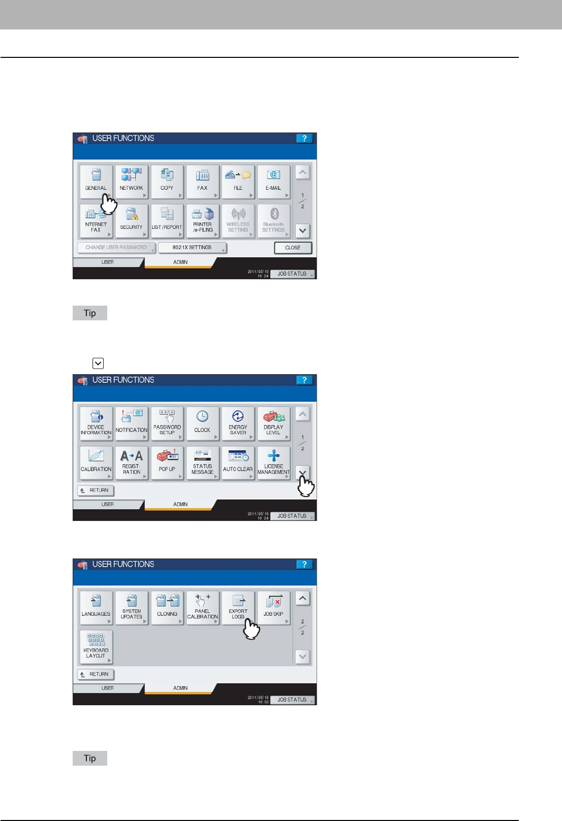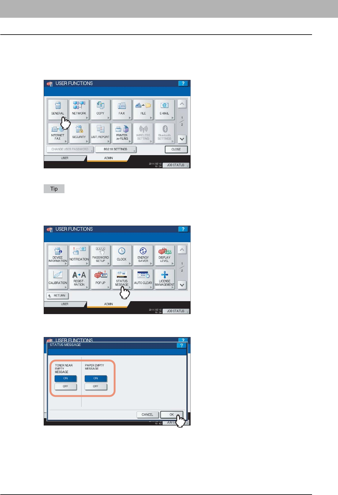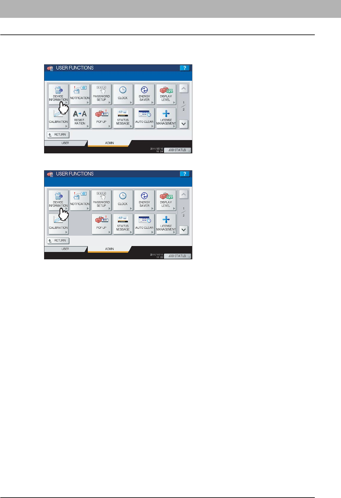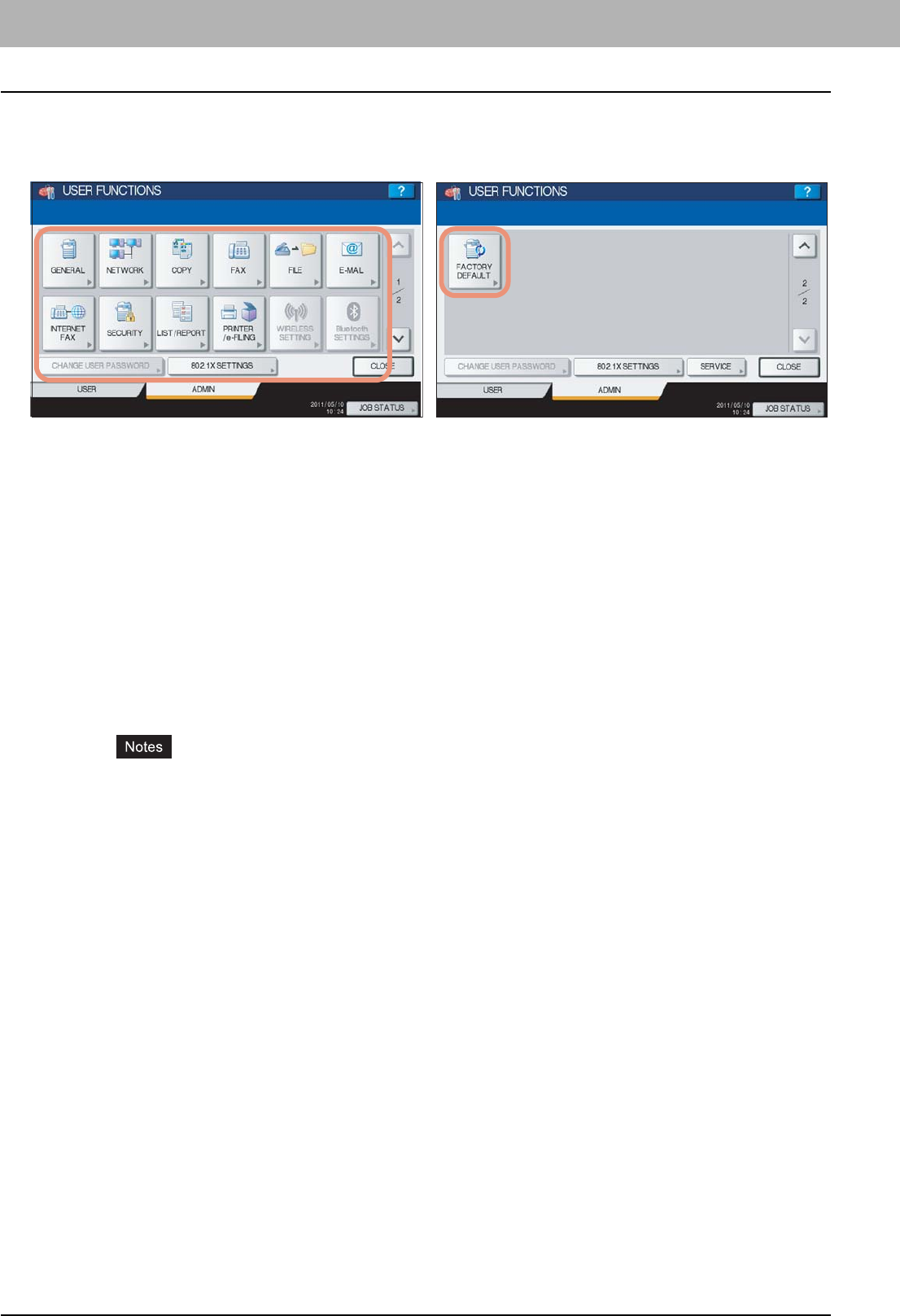the touch panel of the ES9160 MFP/ES9170 MFP differ from those of the ES9460 MFP/ES9470 MFP/CX3535 MFP/