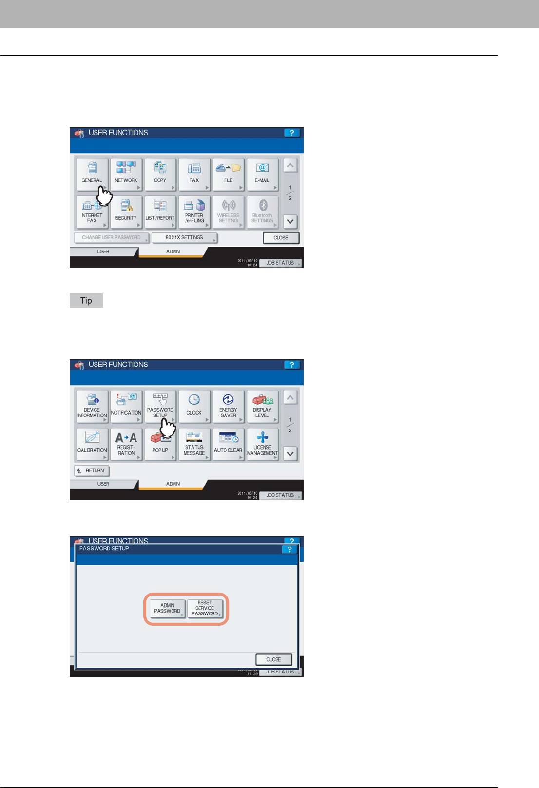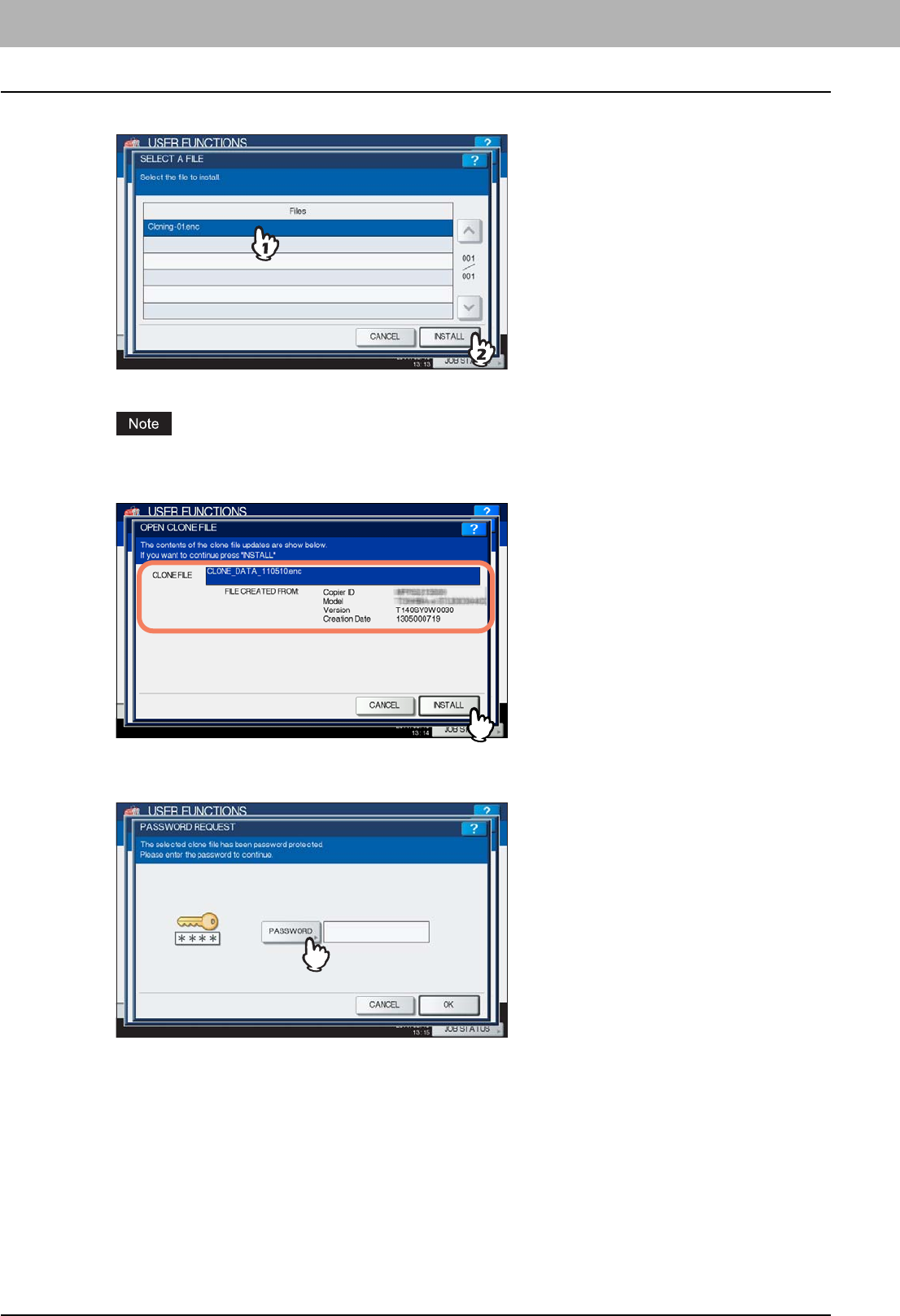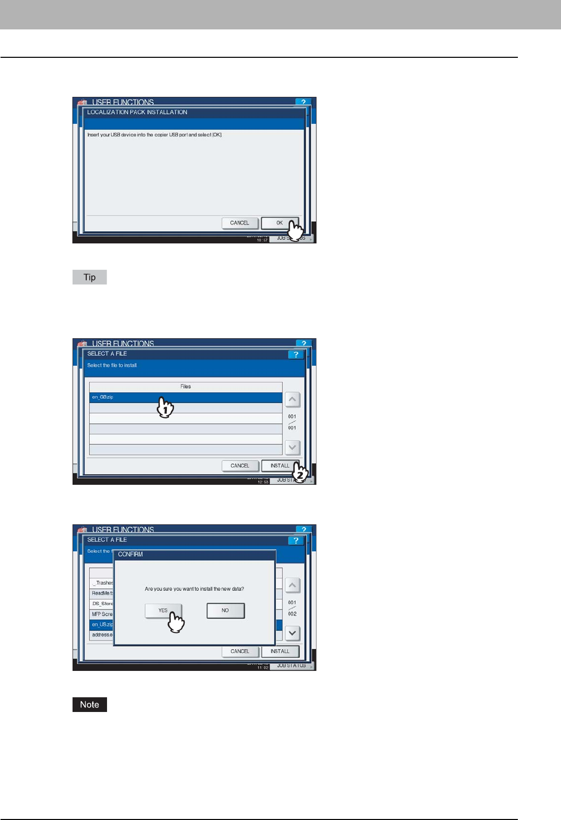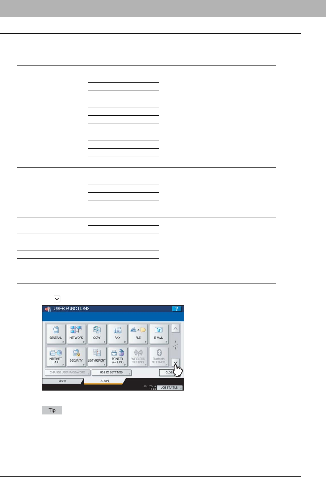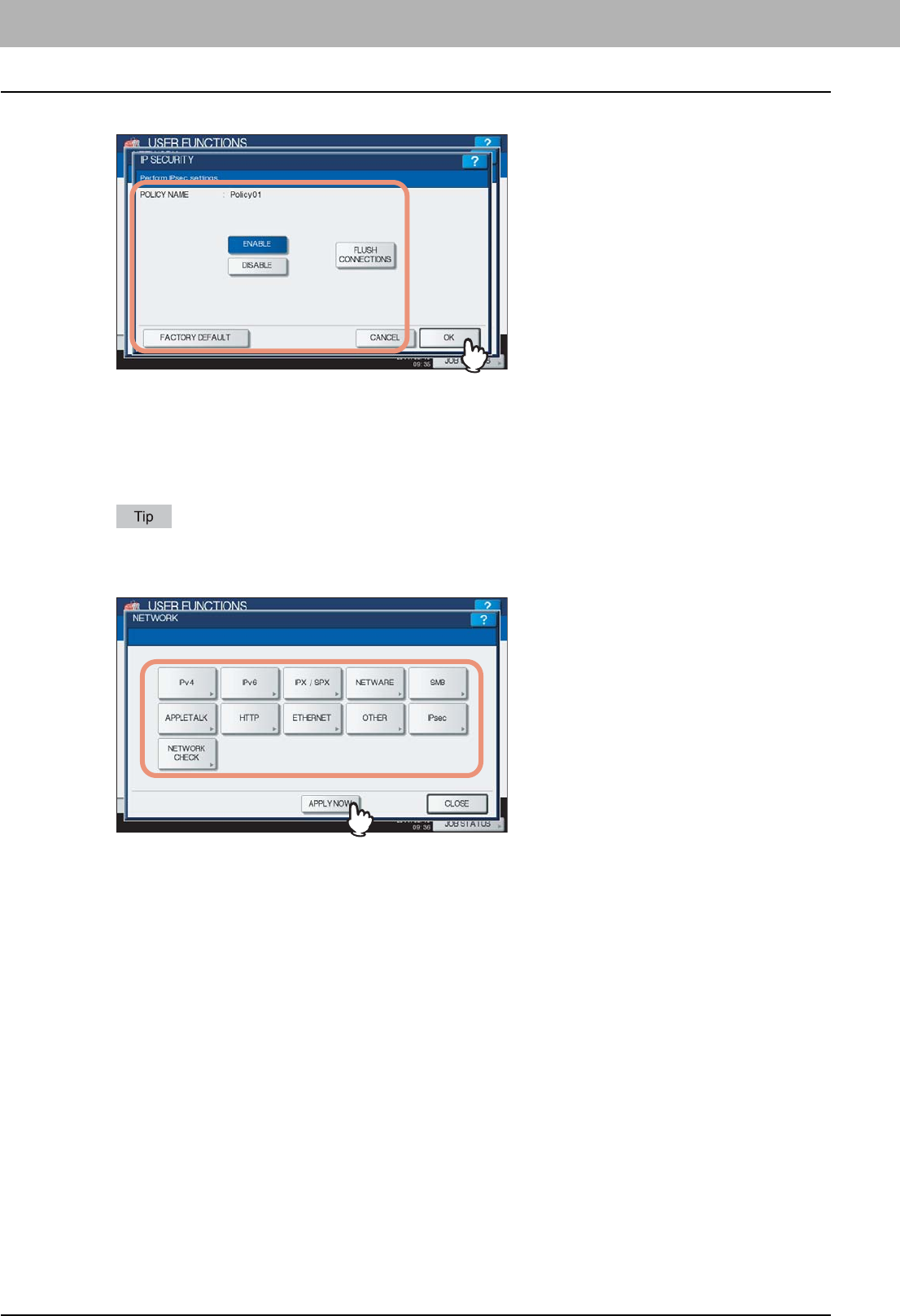 the touch panel of the ES9160 MFP/ES9170 MFP differ from those of the ES9460 MFP/ES9470 MFP/CX3535 MFP/