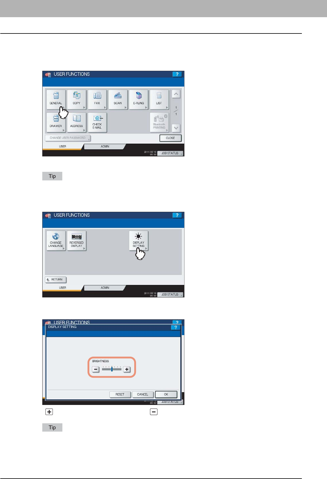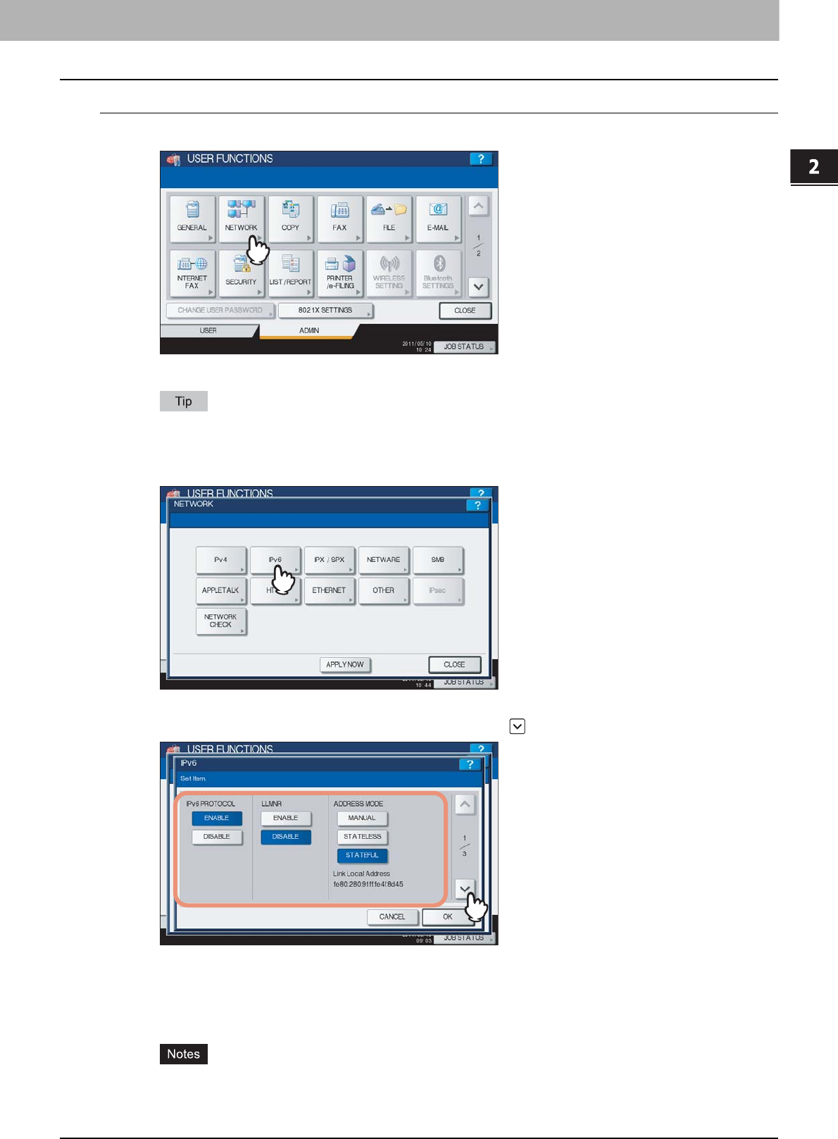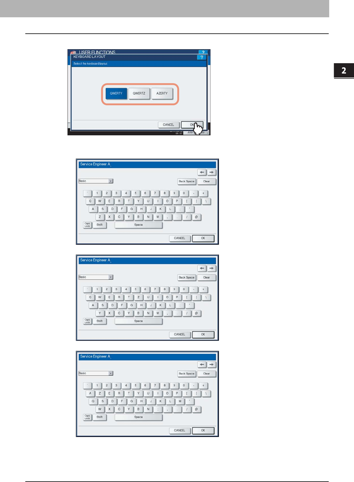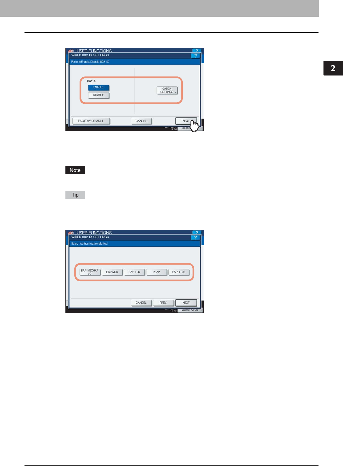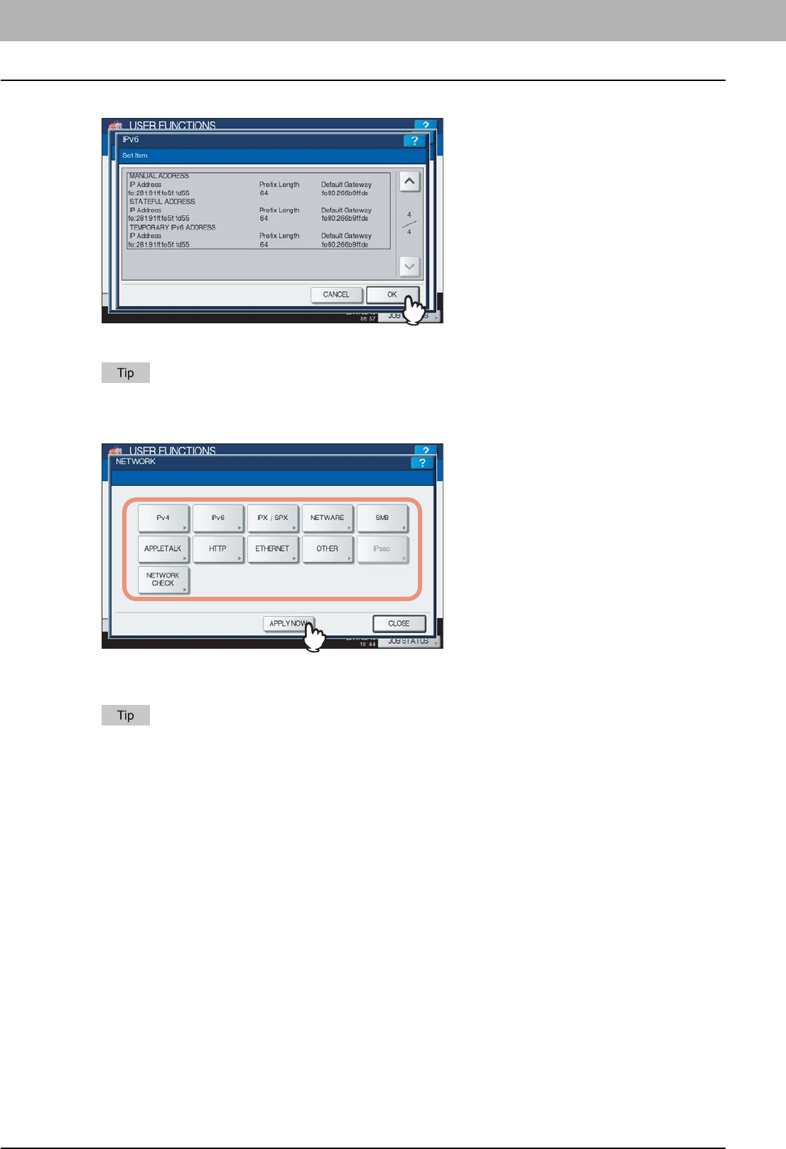 the touch panel of the ES9160 MFP/ES9170 MFP differ from those of the ES9460 MFP/ES9470 MFP/CX3535 MFP/
