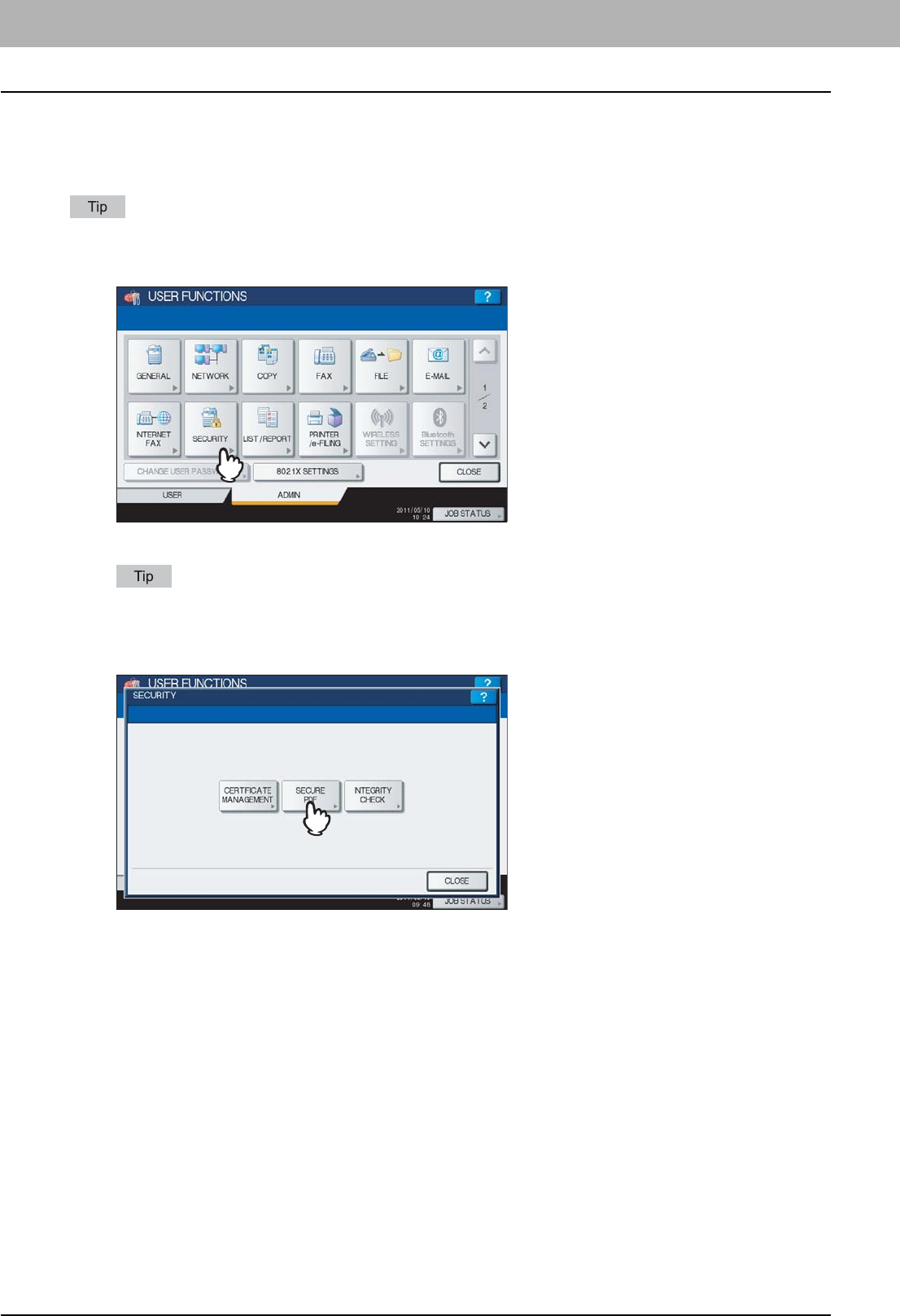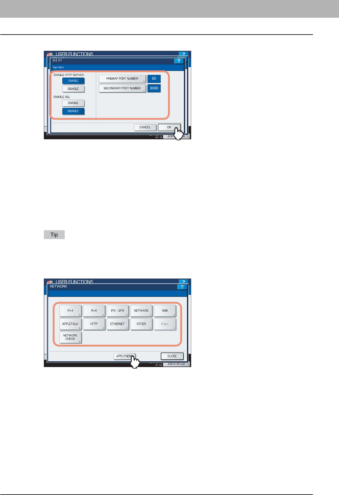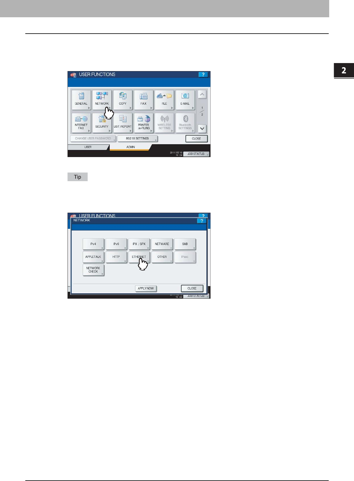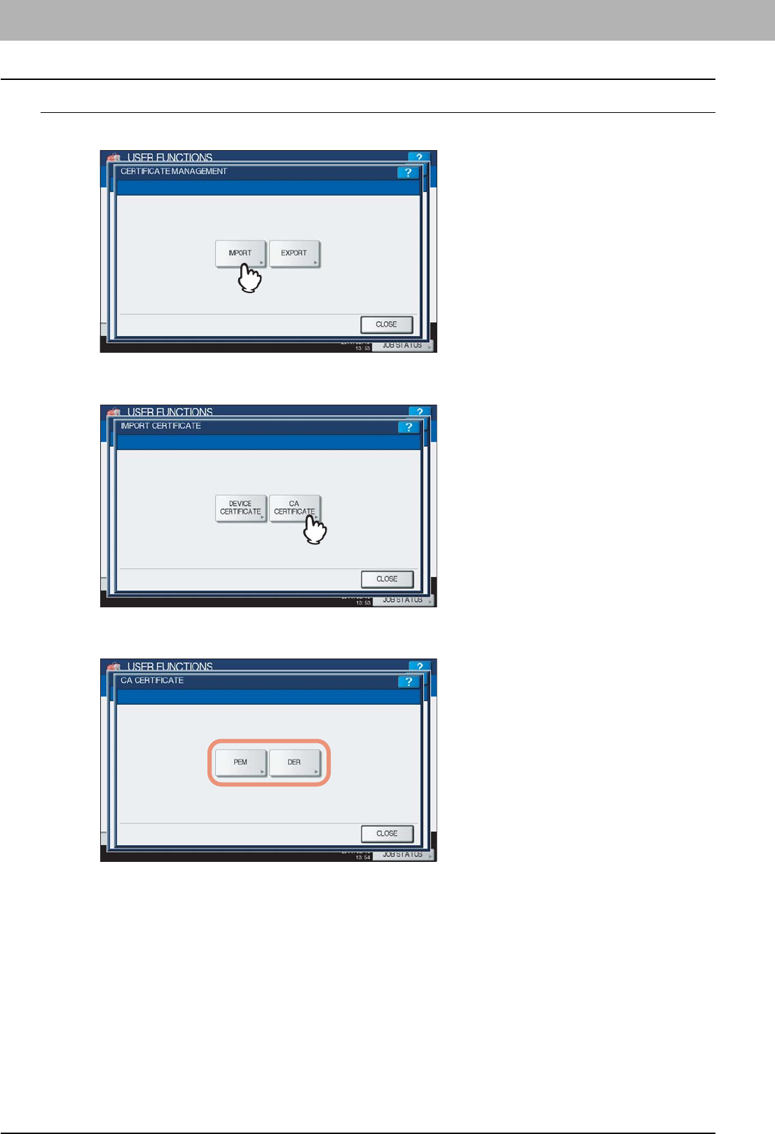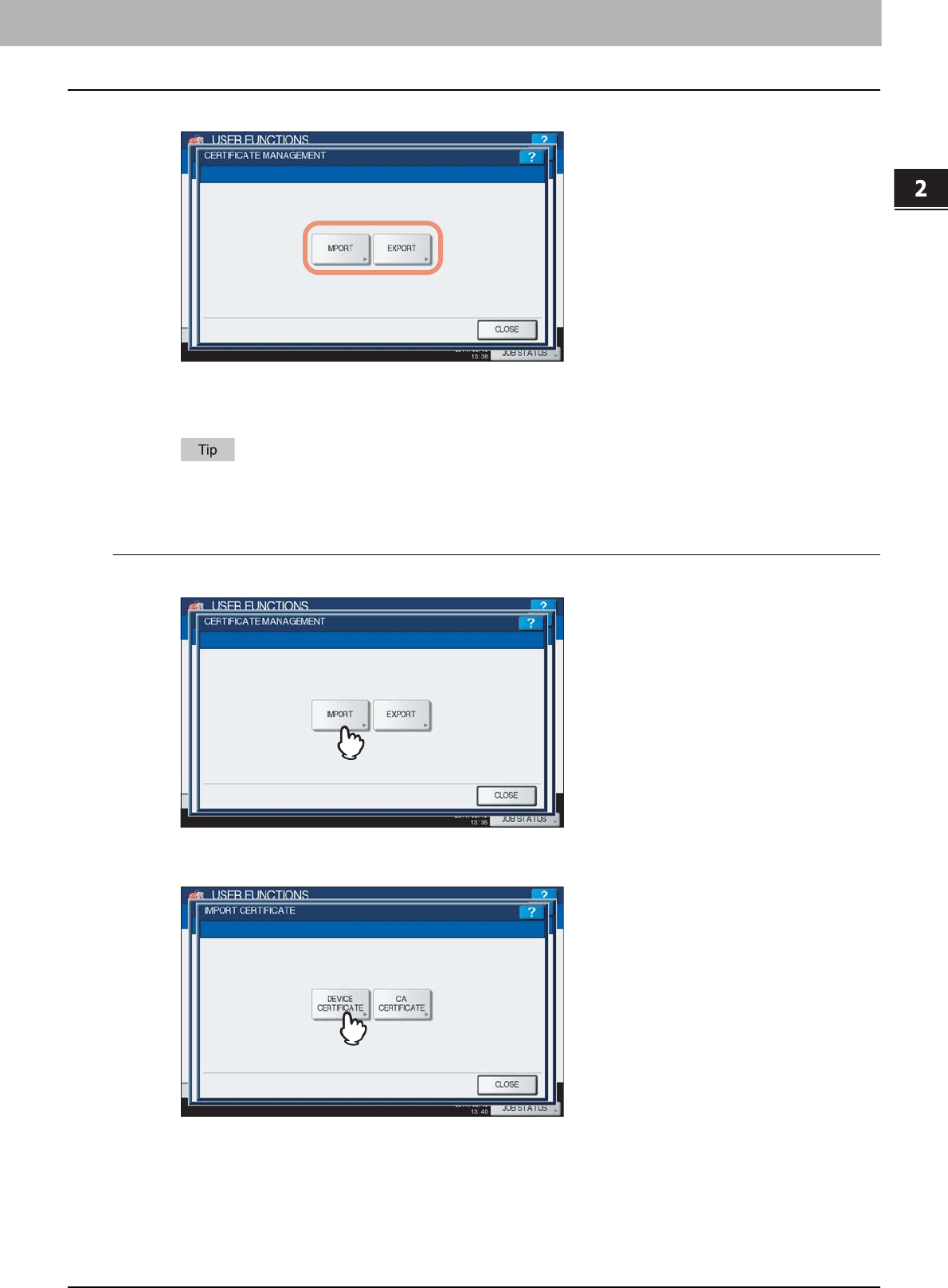 the touch panel of the ES9160 MFP/ES9170 MFP differ from those of the ES9460 MFP/ES9470 MFP/CX3535 MFP/