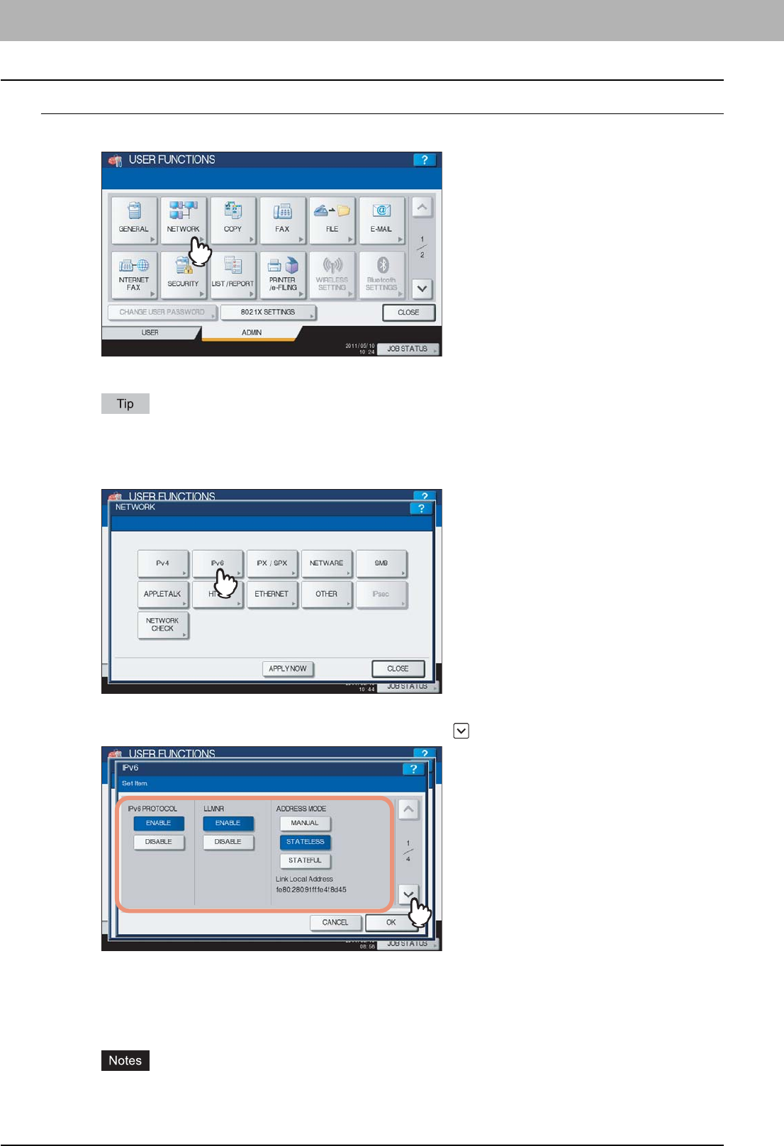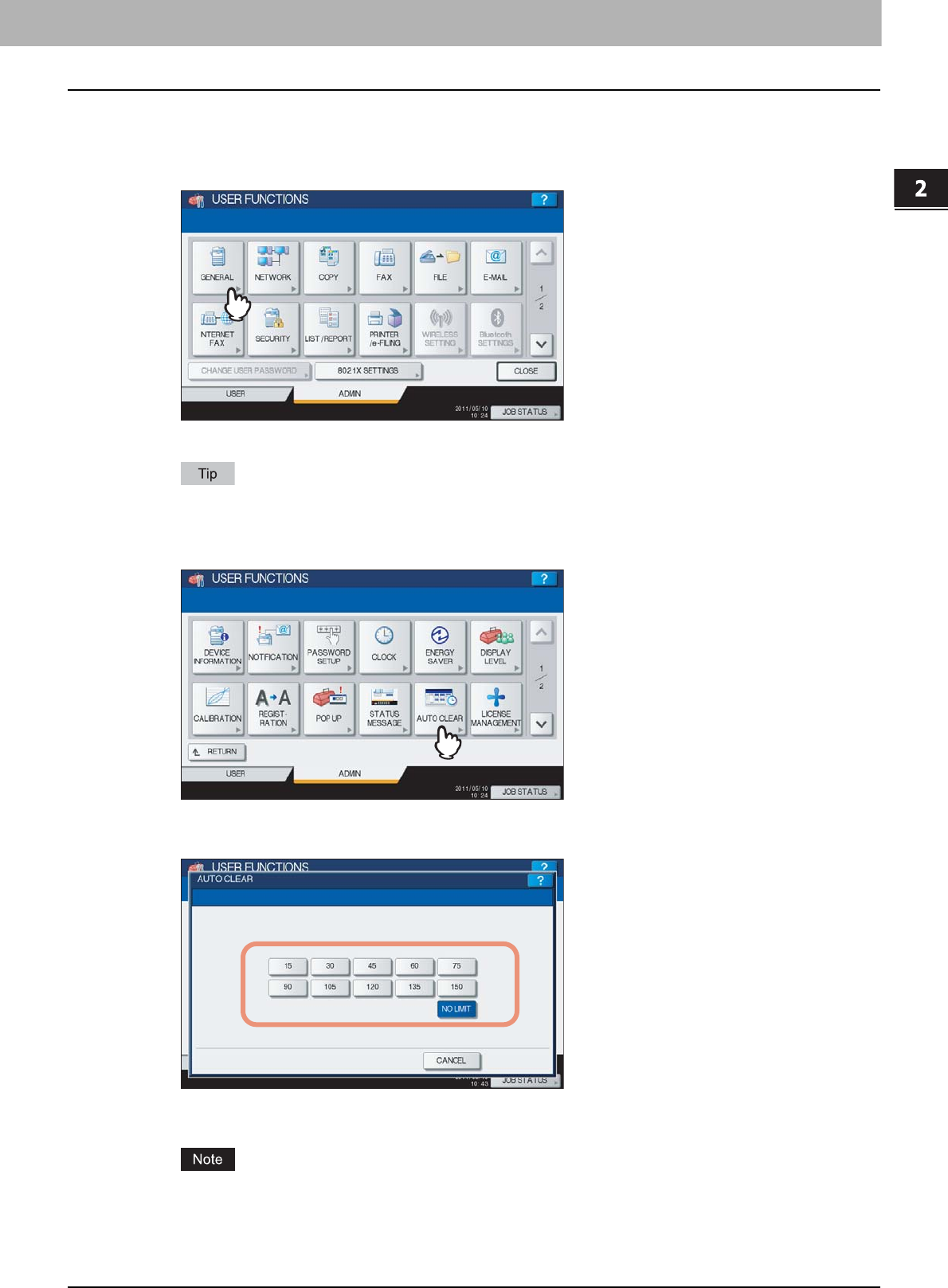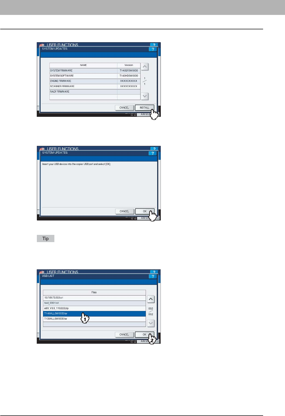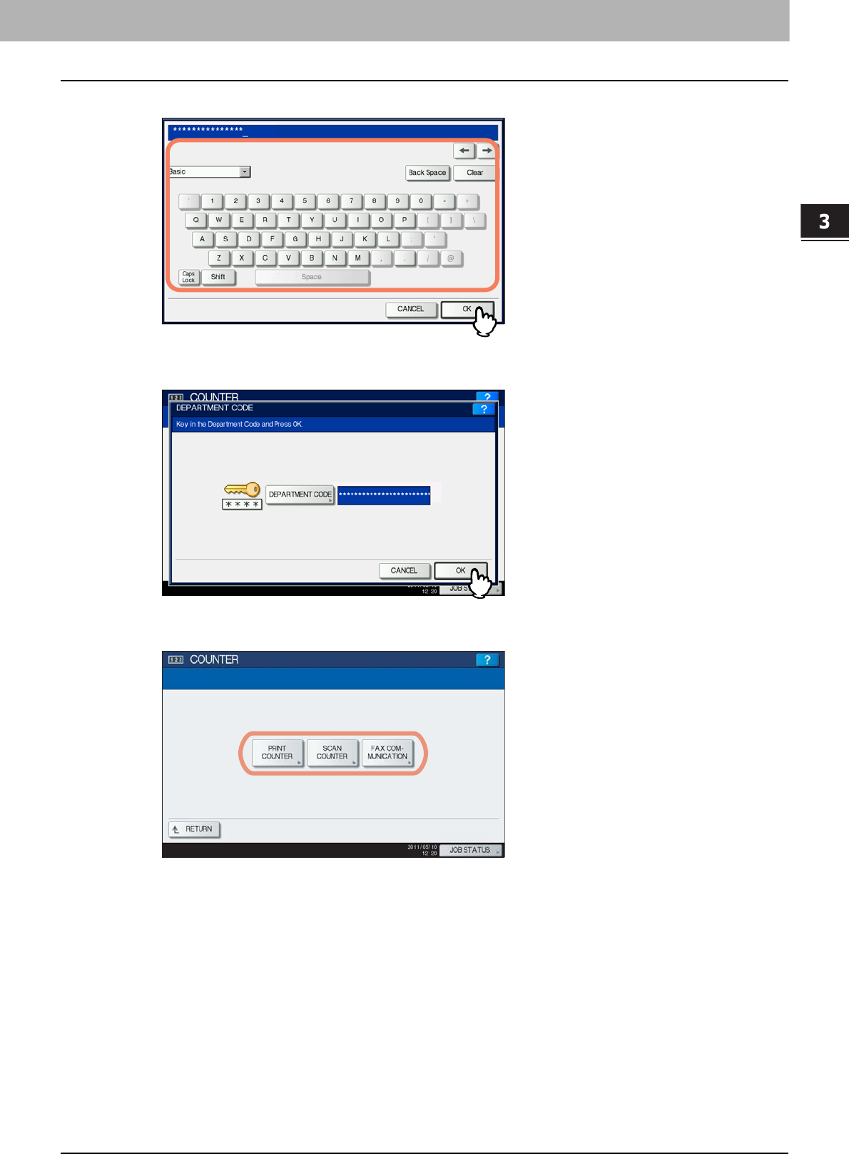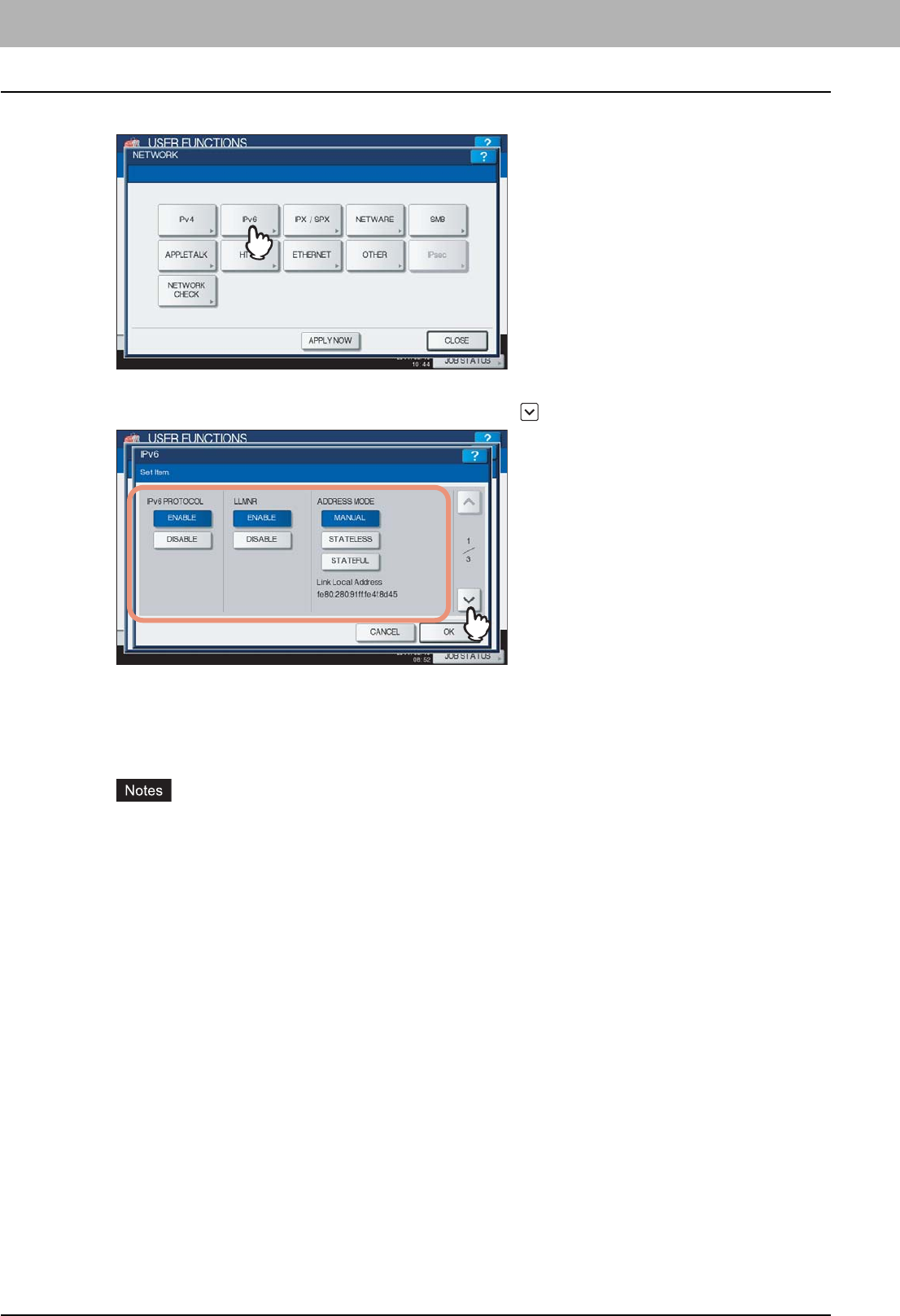 the touch panel of the ES9160 MFP/ES9170 MFP differ from those of the ES9460 MFP/ES9470 MFP/CX3535 MFP/