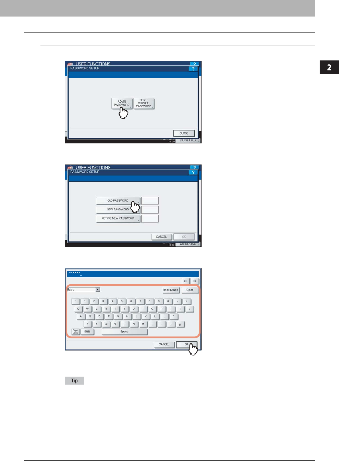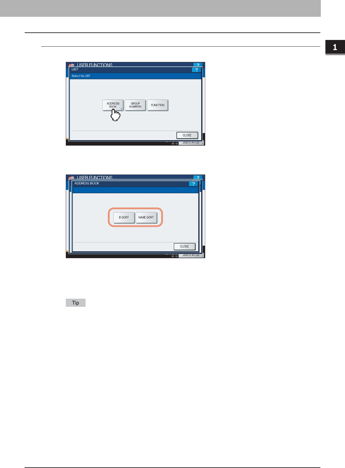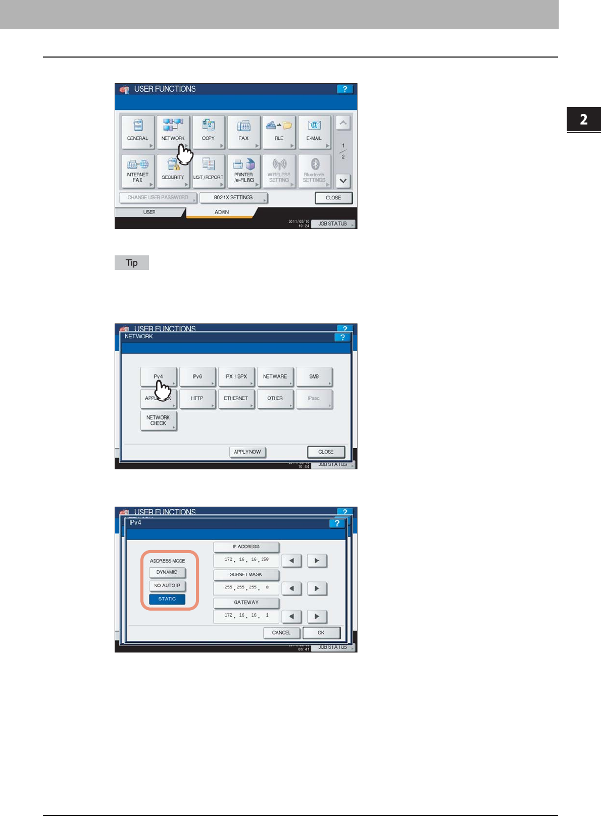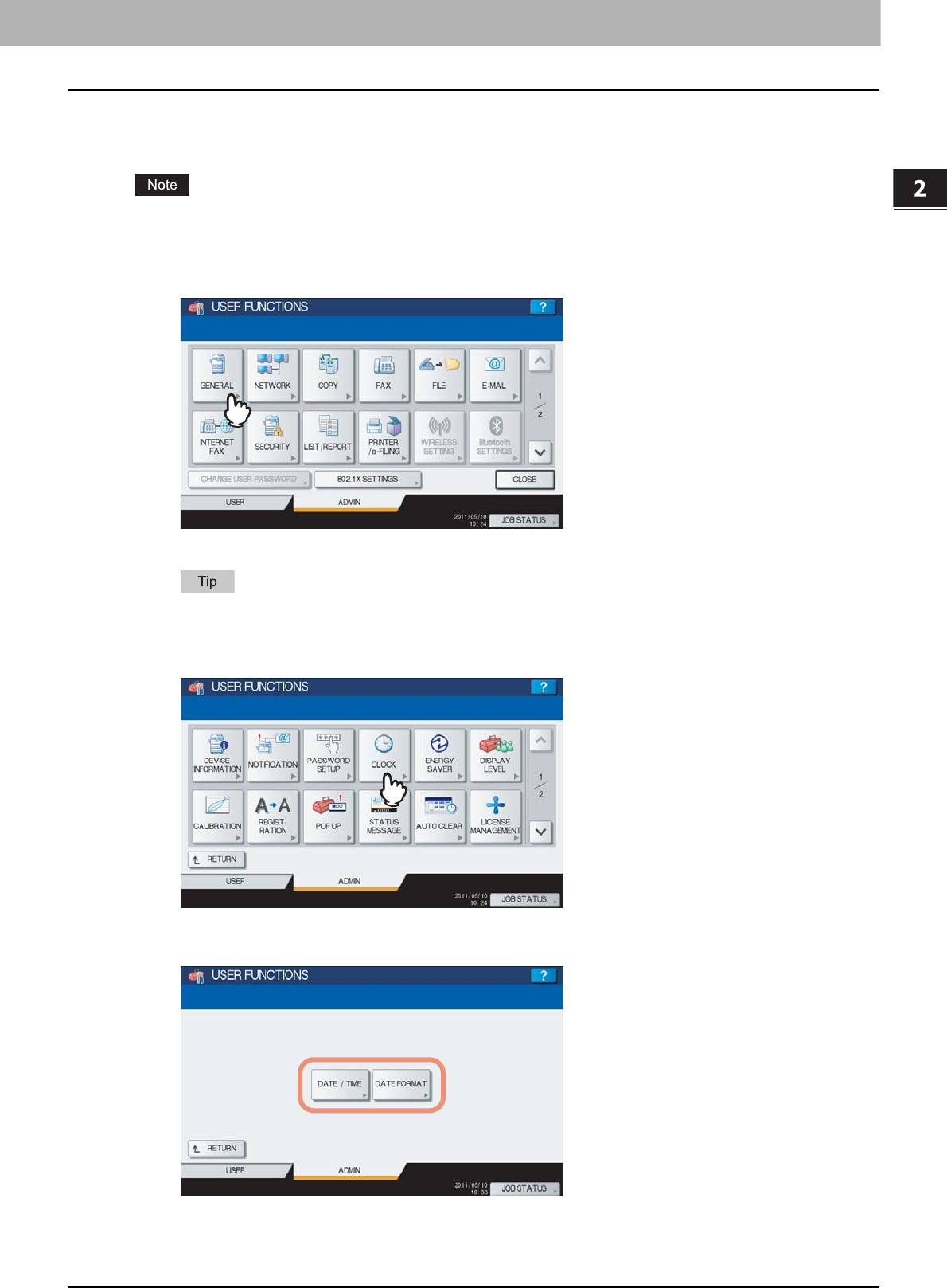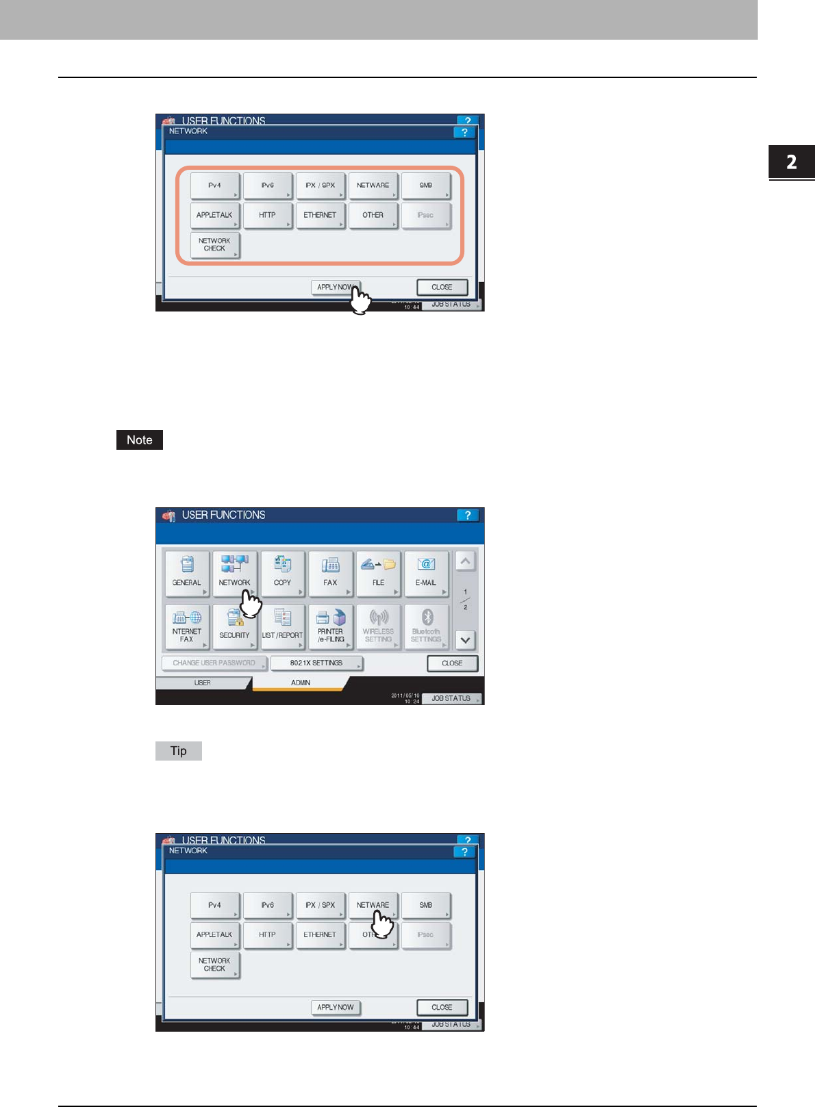 the touch panel of the ES9160 MFP/ES9170 MFP differ from those of the ES9460 MFP/ES9470 MFP/CX3535 MFP/