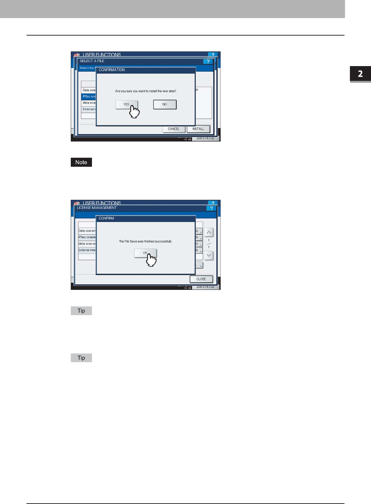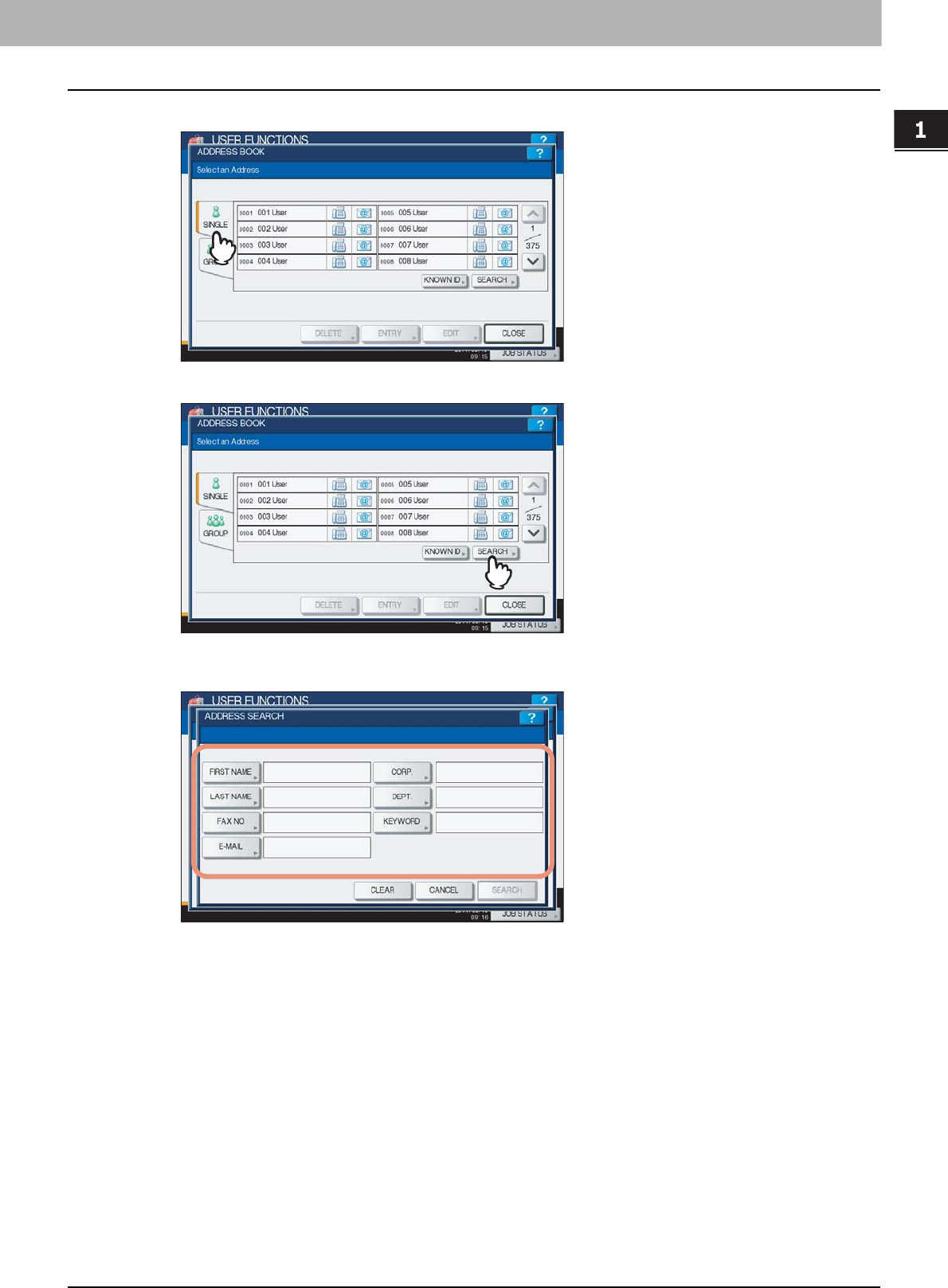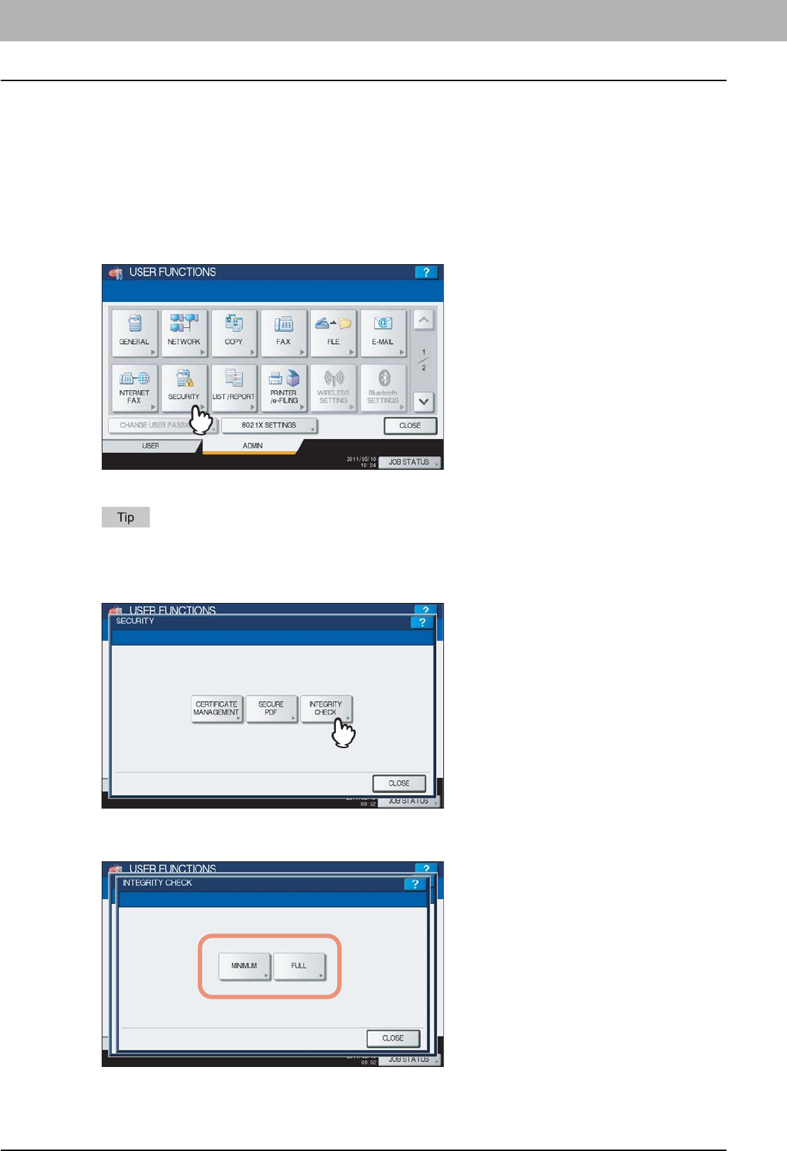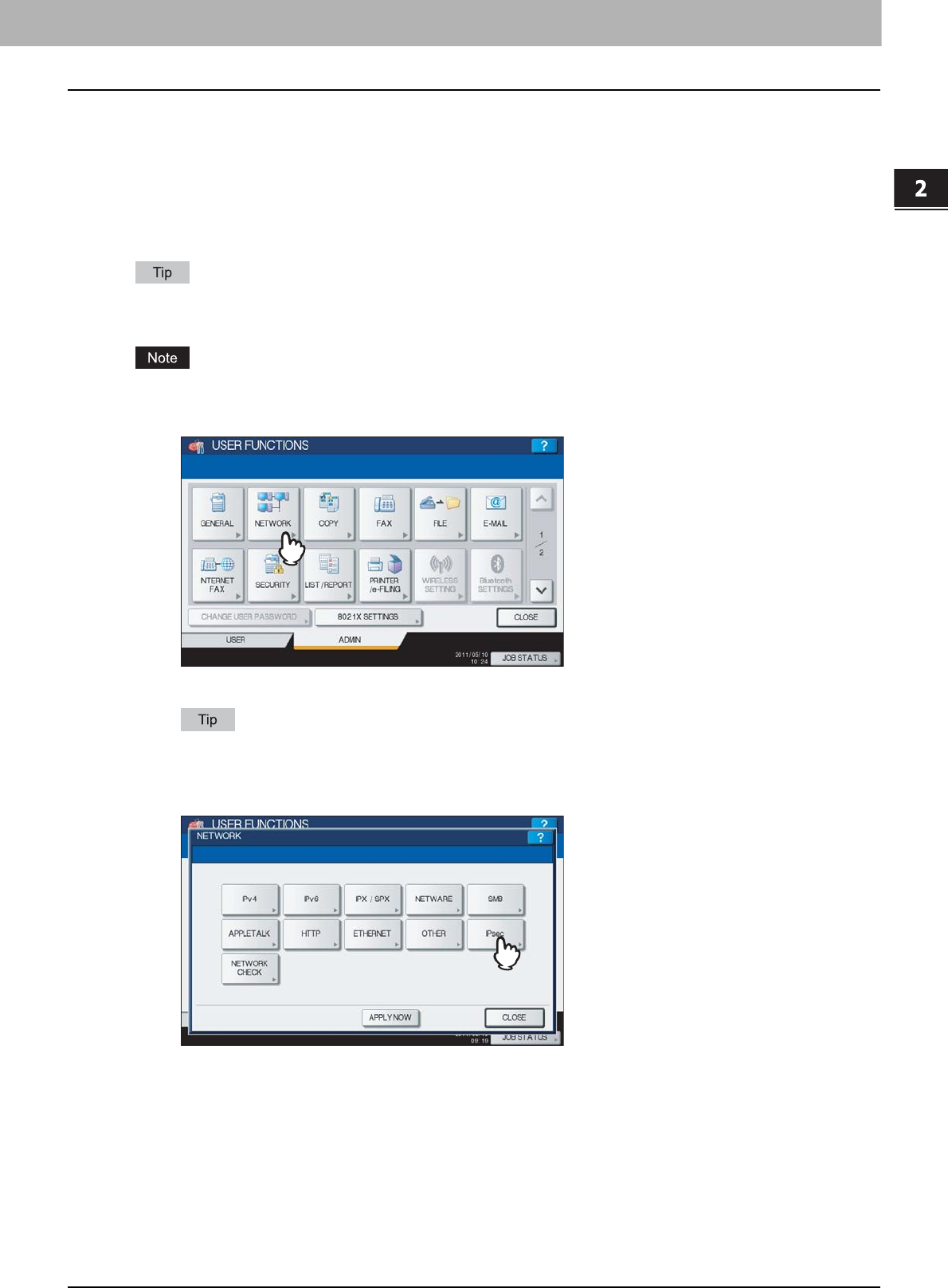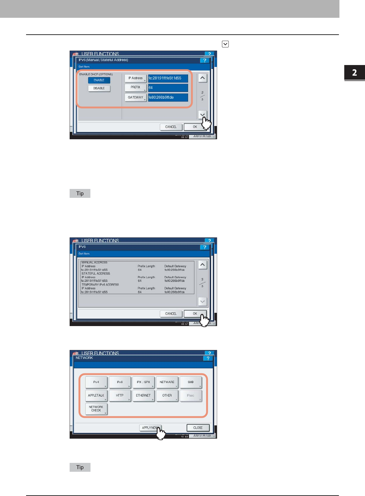 the touch panel of the ES9160 MFP/ES9170 MFP differ from those of the ES9460 MFP/ES9470 MFP/CX3535 MFP/