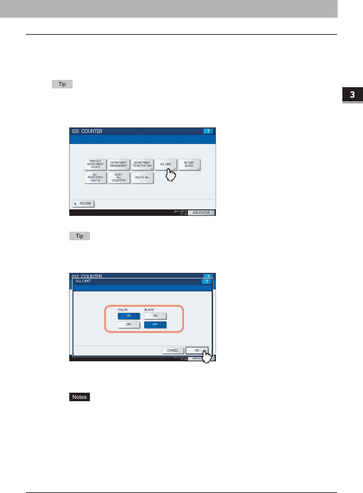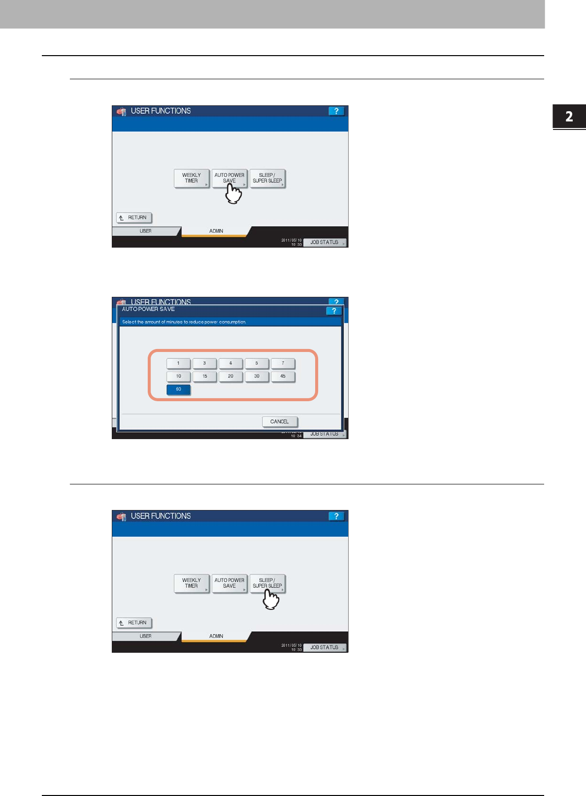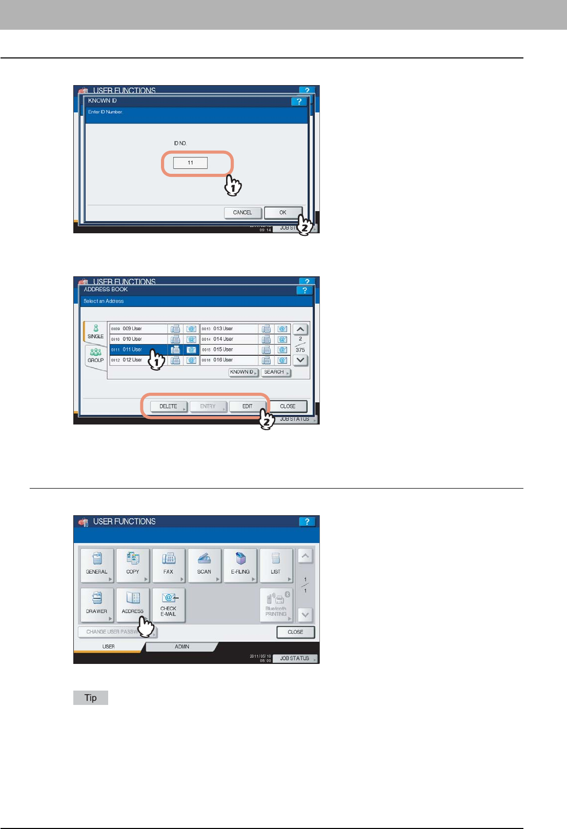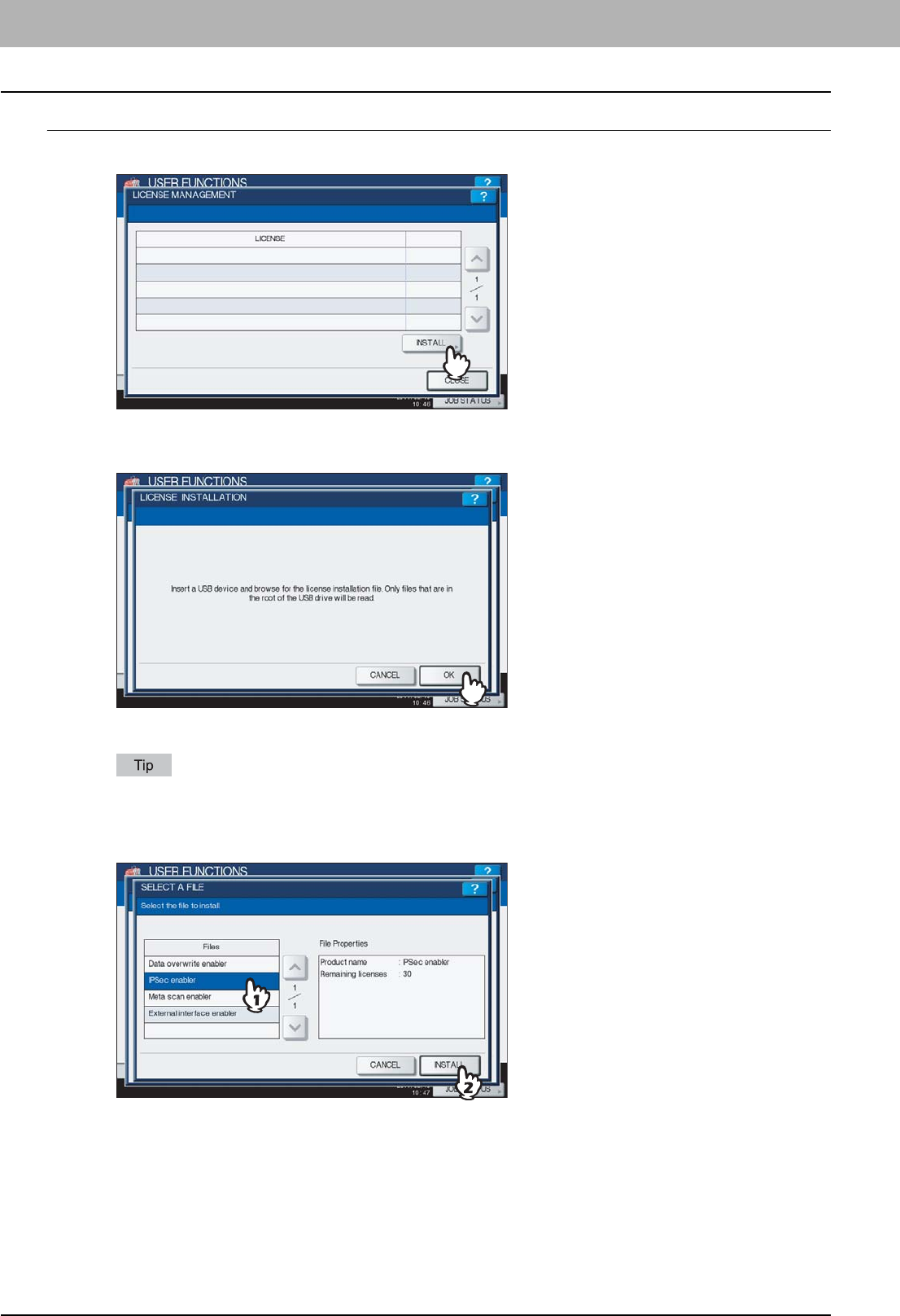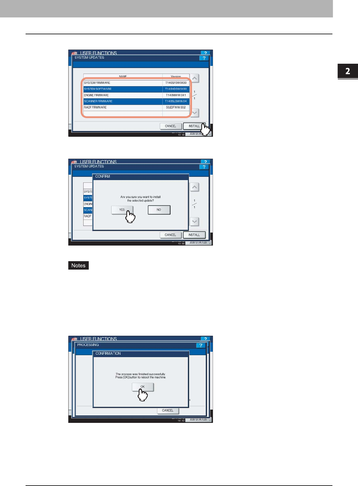 the touch panel of the ES9160 MFP/ES9170 MFP differ from those of the ES9460 MFP/ES9470 MFP/CX3535 MFP/