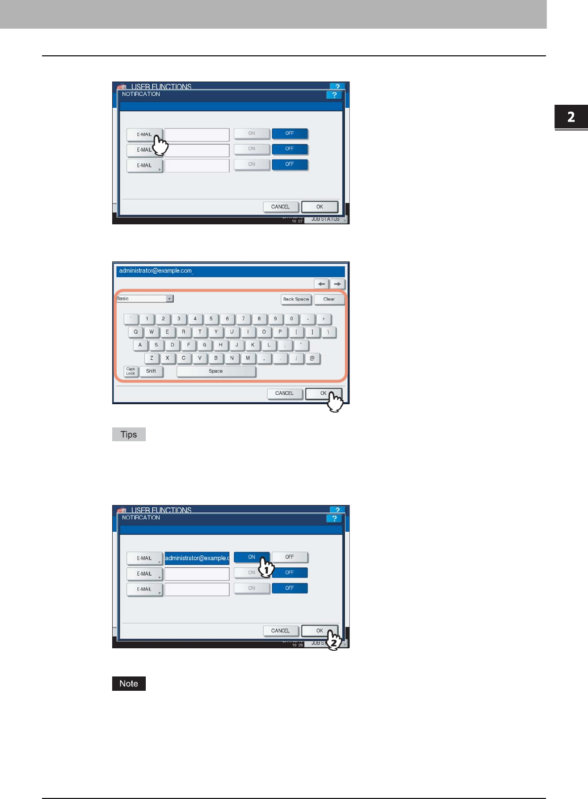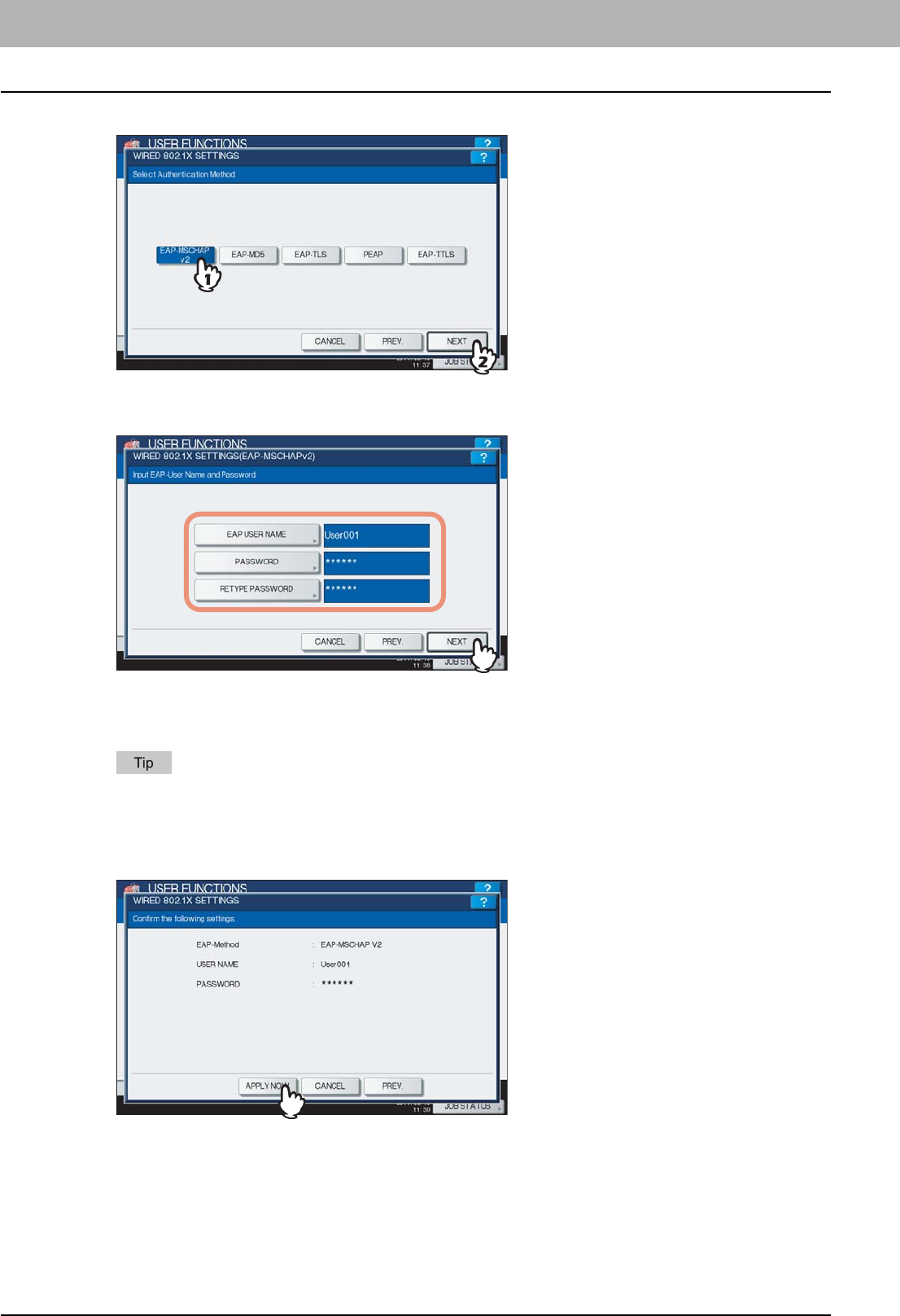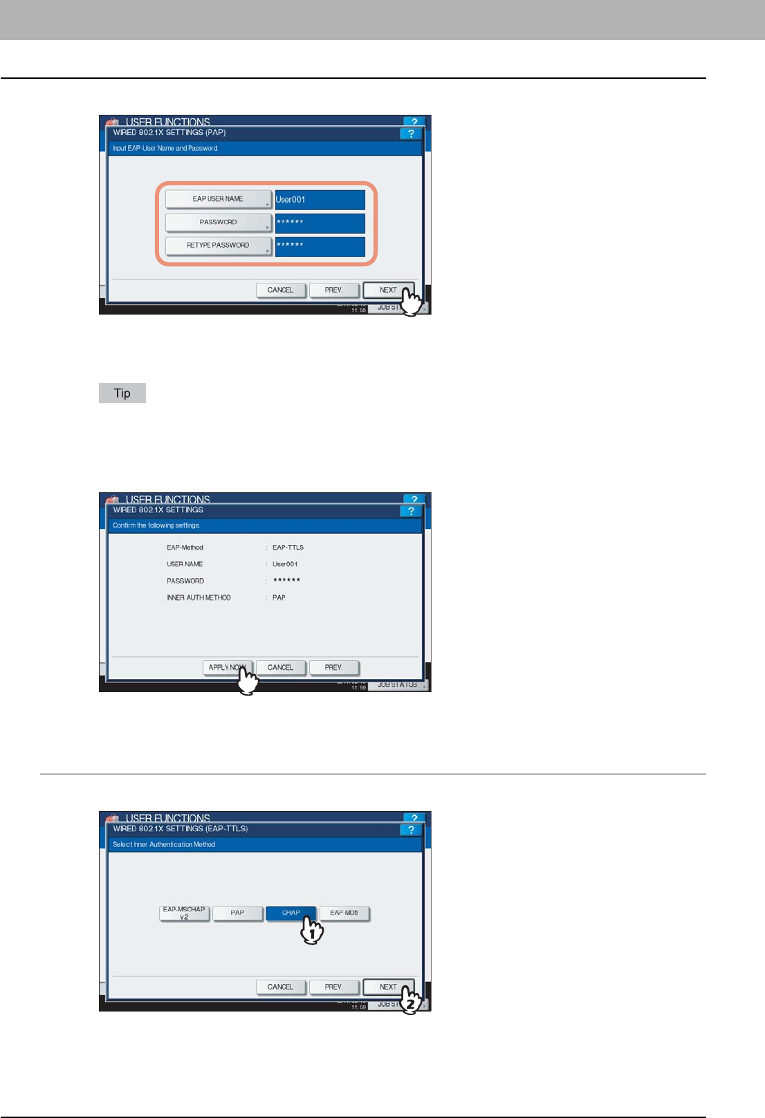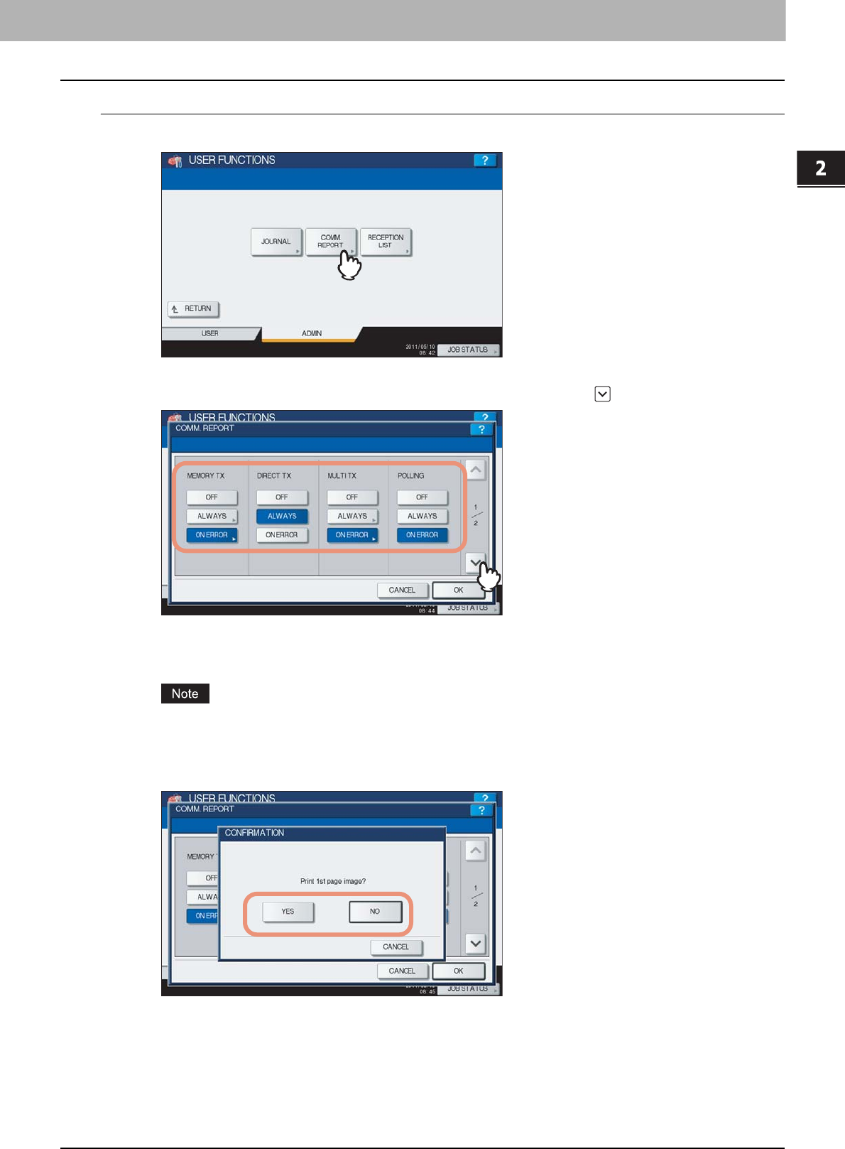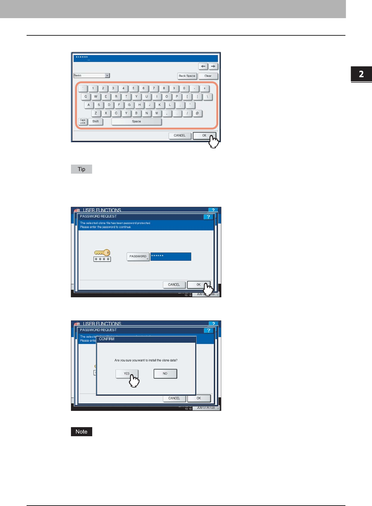 the touch panel of the ES9160 MFP/ES9170 MFP differ from those of the ES9460 MFP/ES9470 MFP/CX3535 MFP/