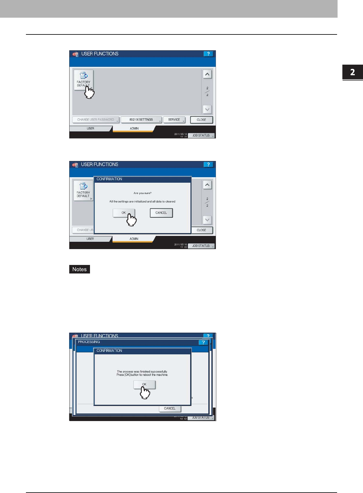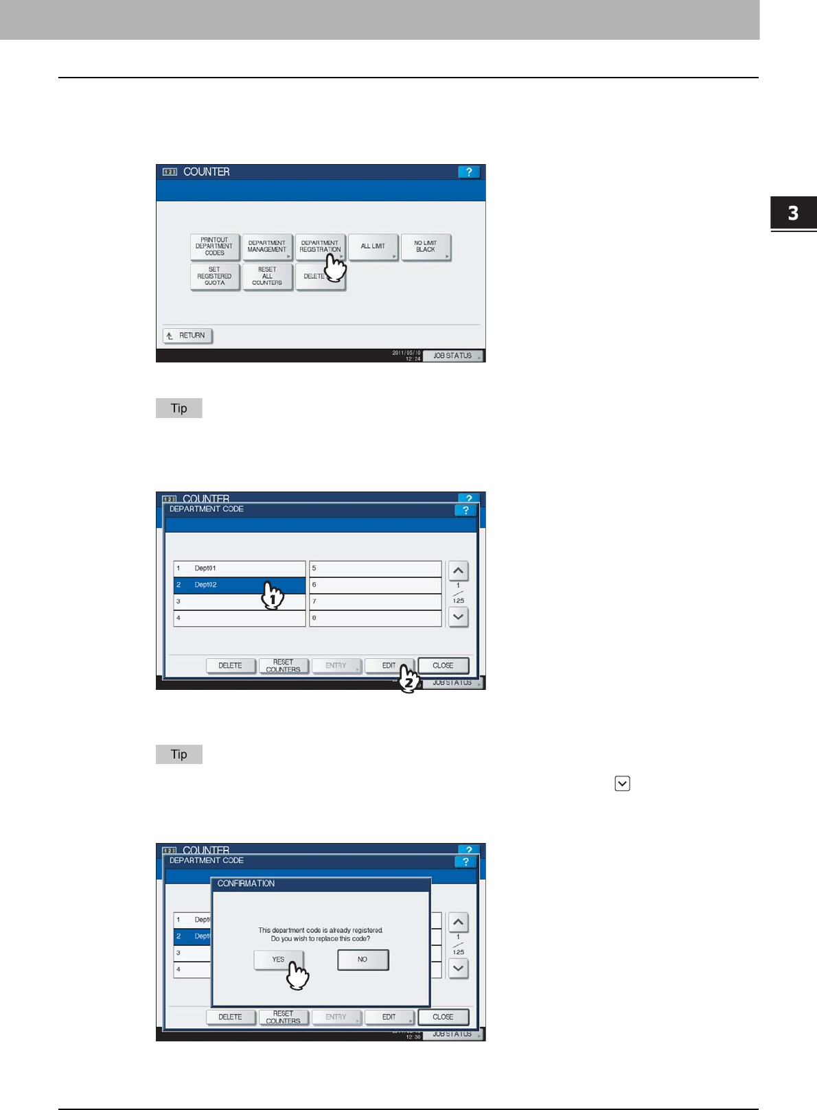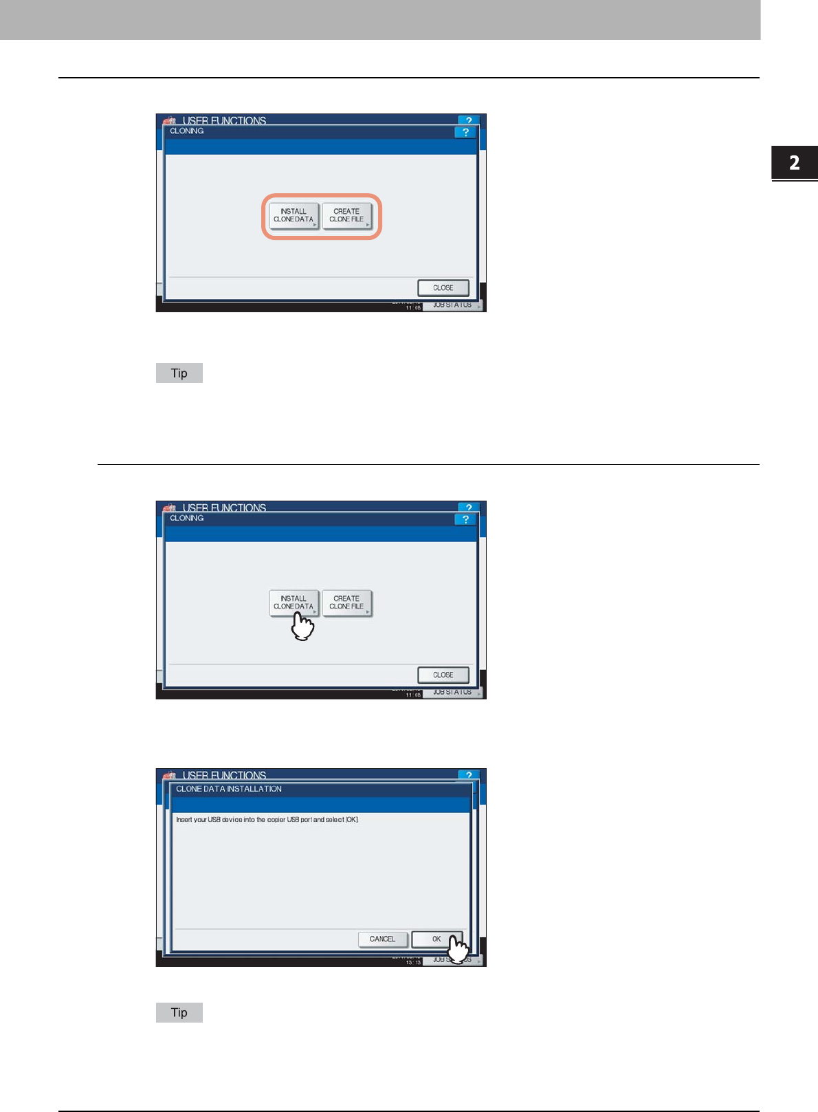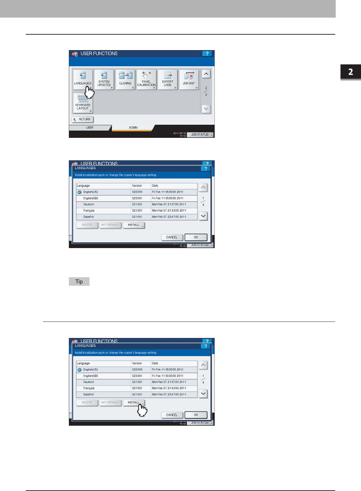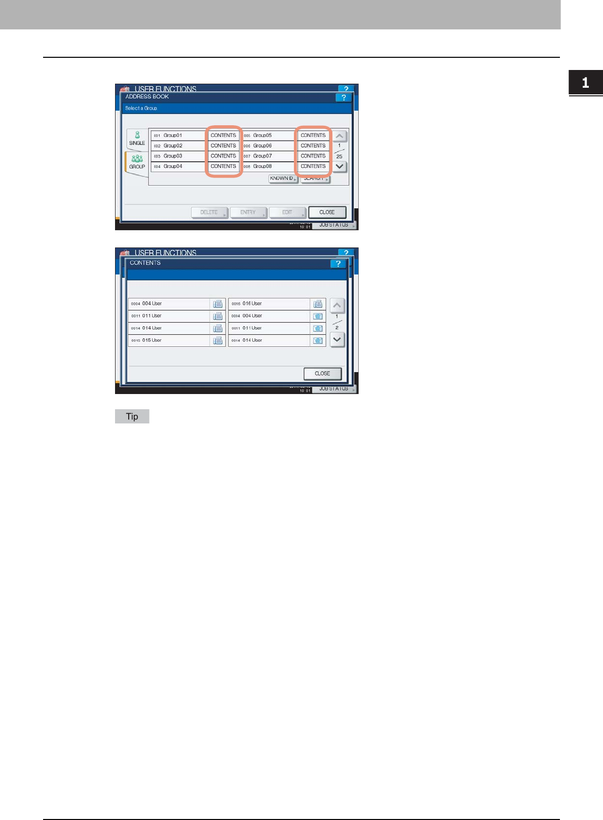 the touch panel of the ES9160 MFP/ES9170 MFP differ from those of the ES9460 MFP/ES9470 MFP/CX3535 MFP/