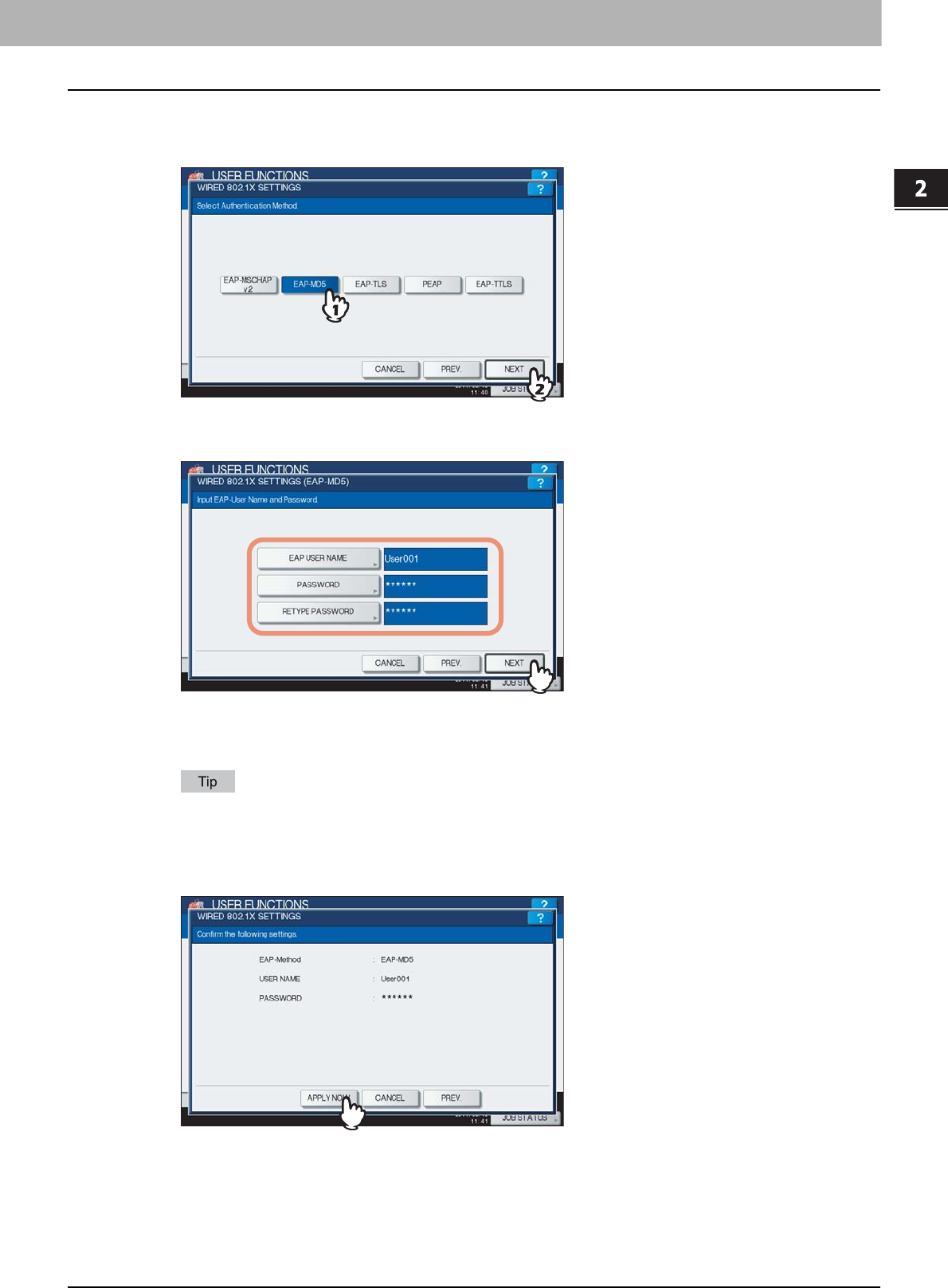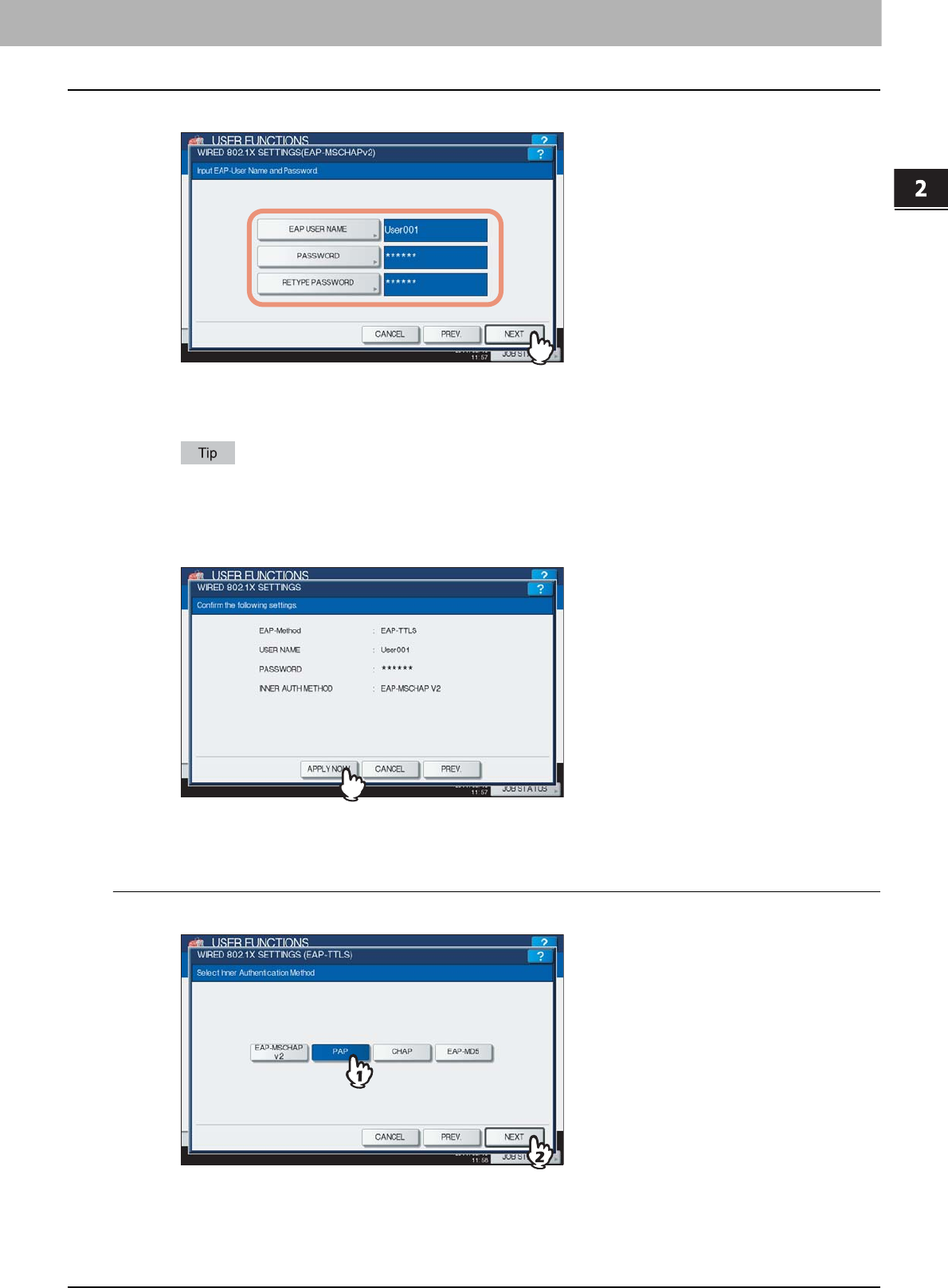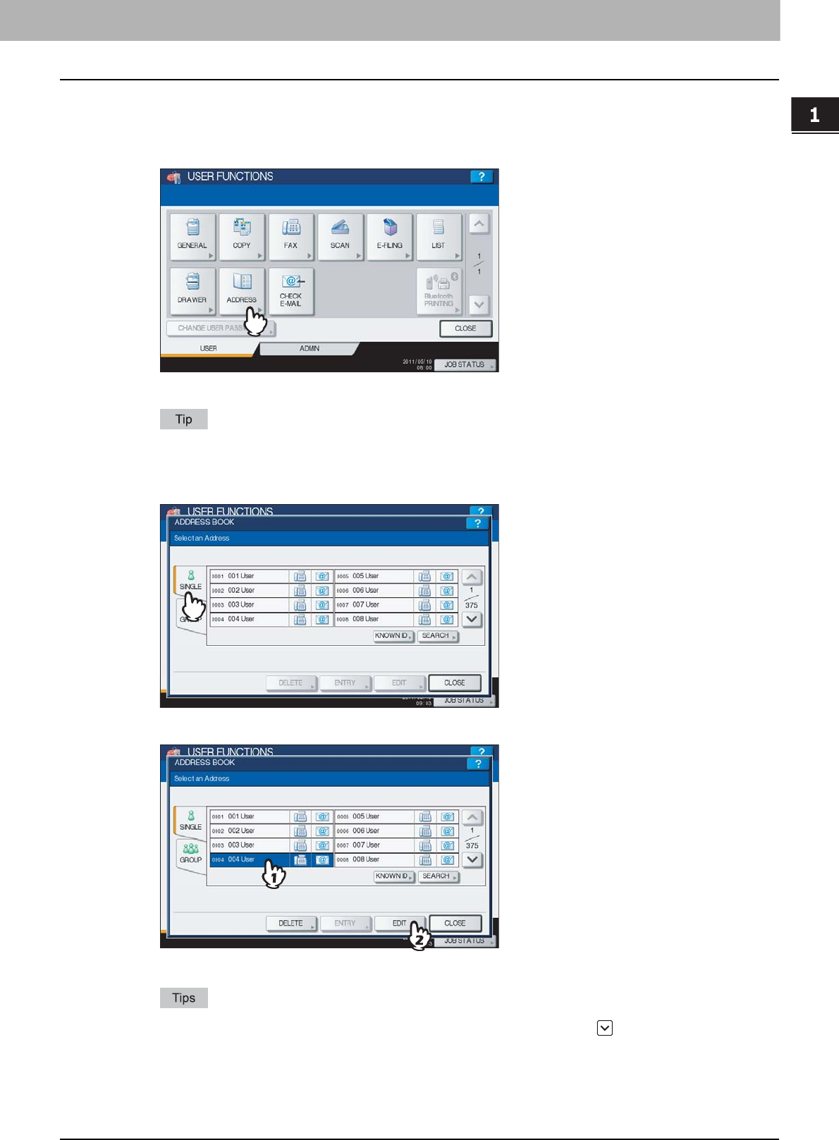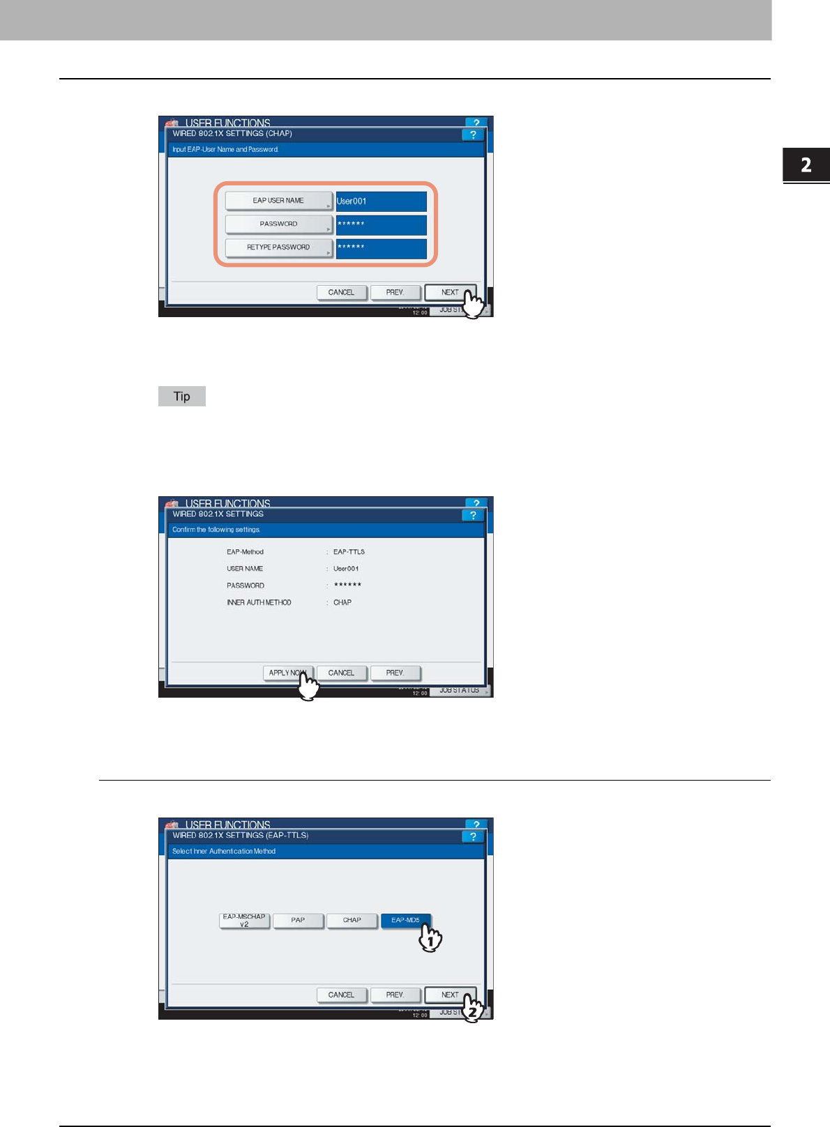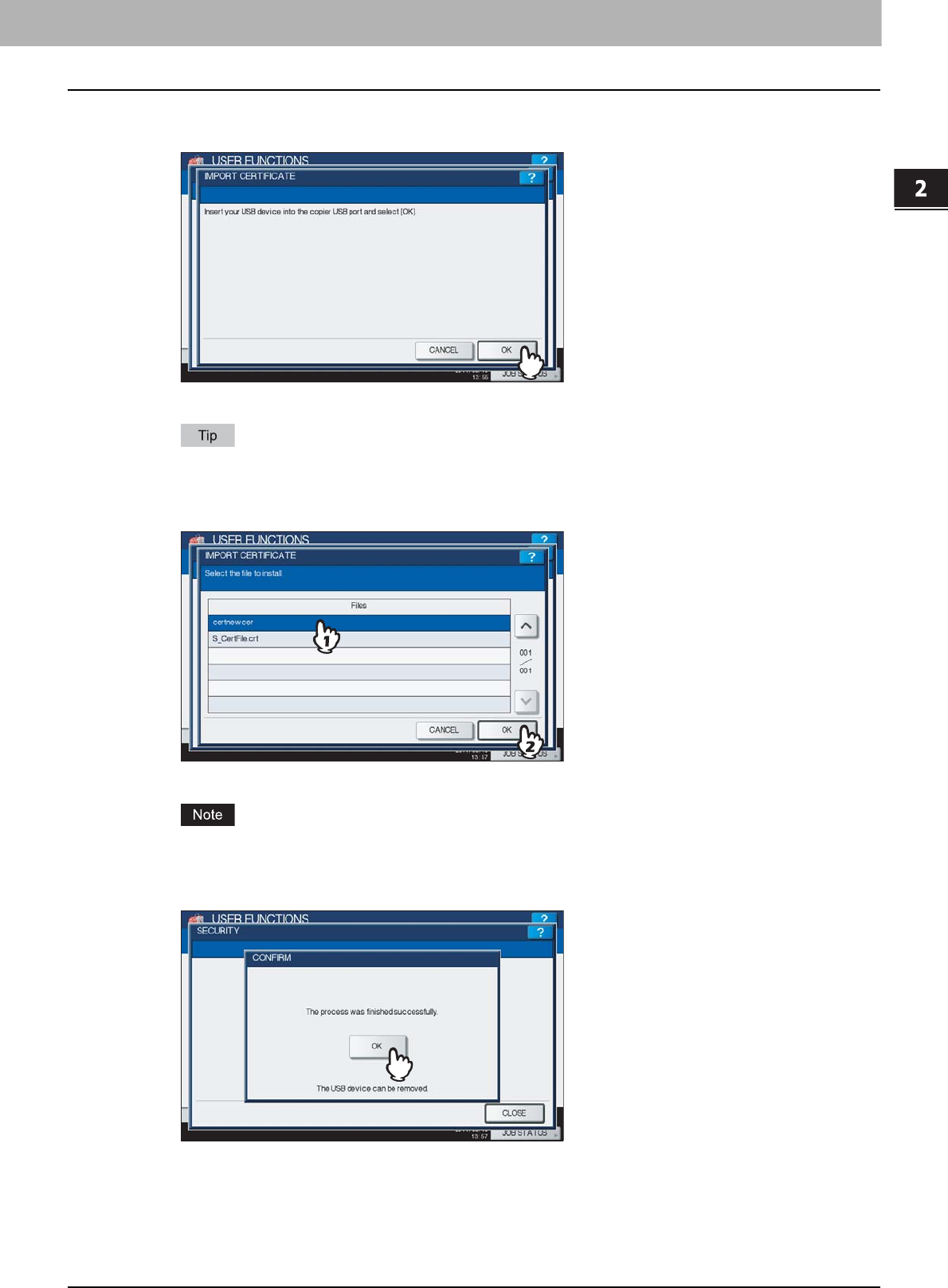 the touch panel of the ES9160 MFP/ES9170 MFP differ from those of the ES9460 MFP/ES9470 MFP/CX3535 MFP/