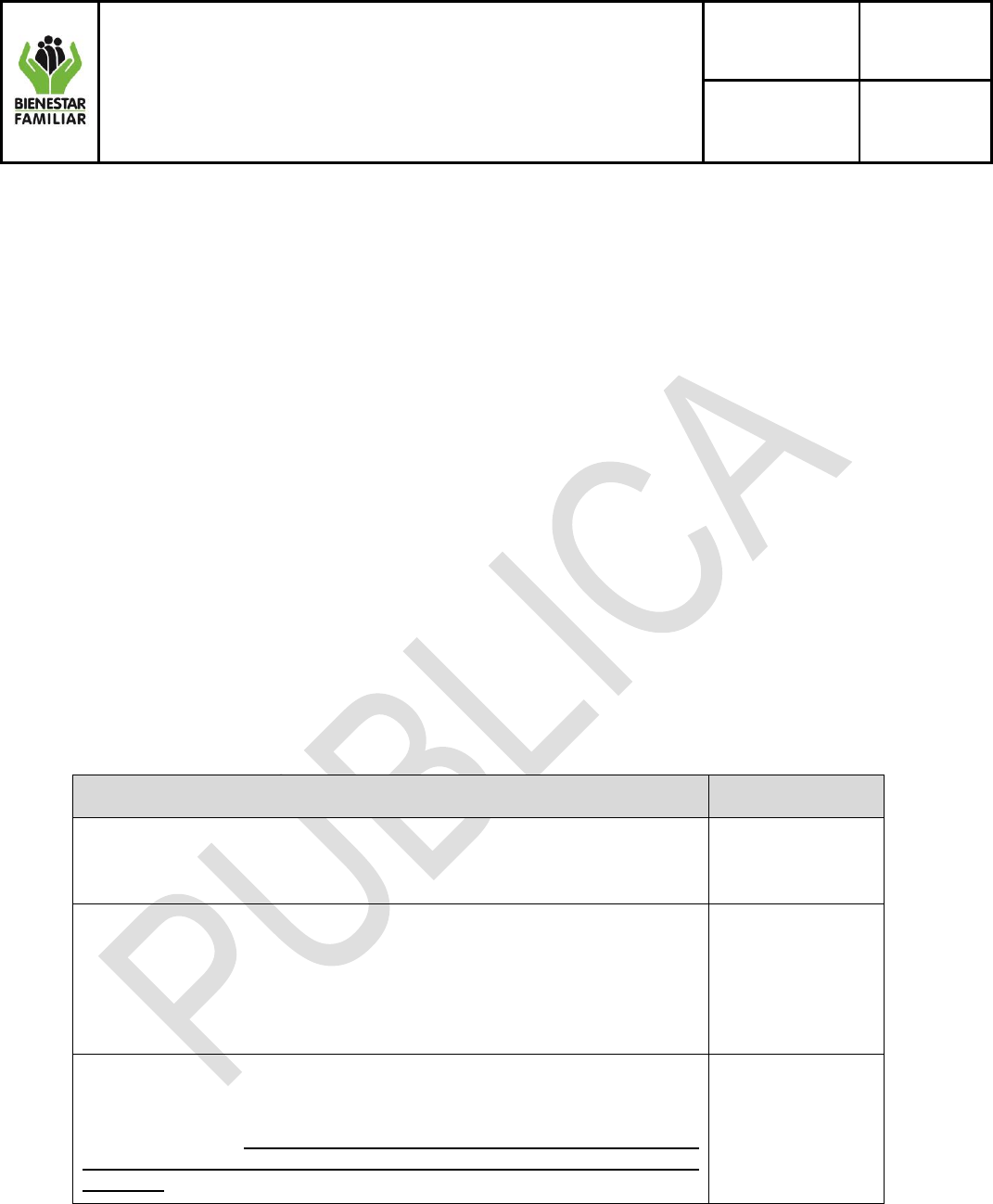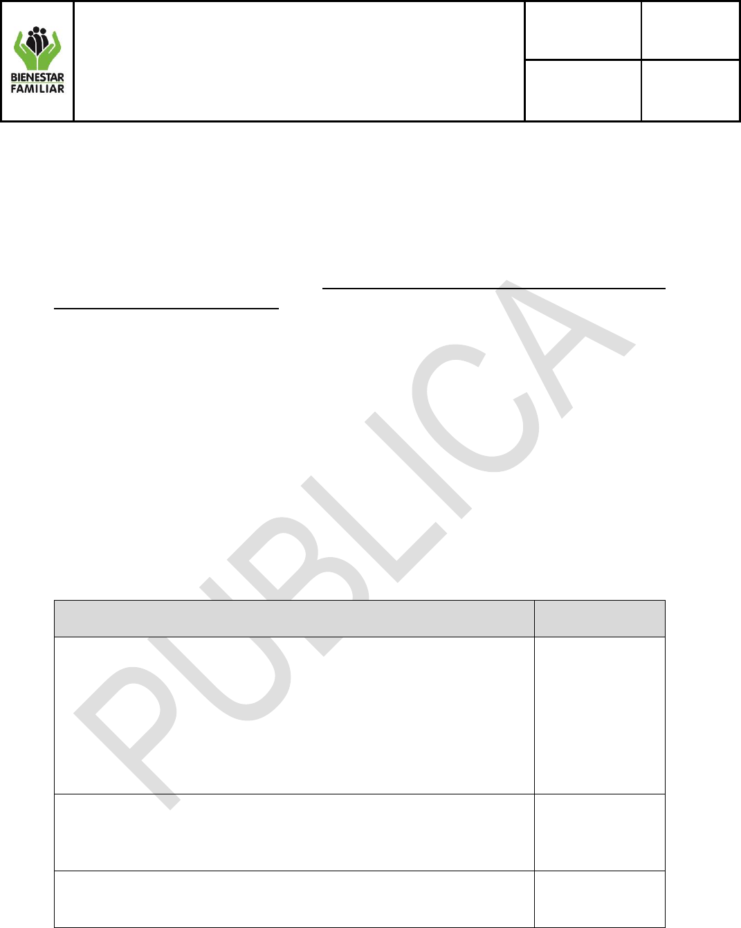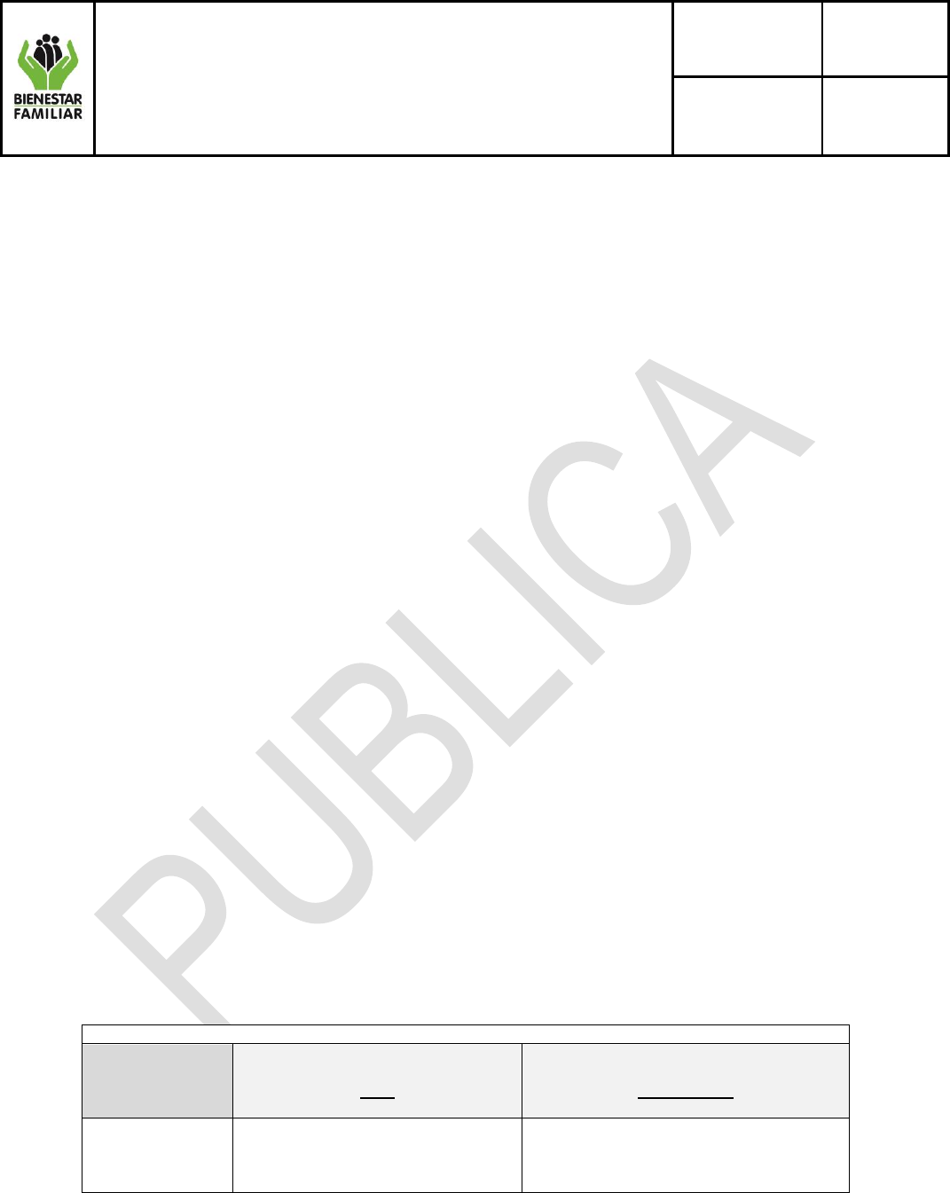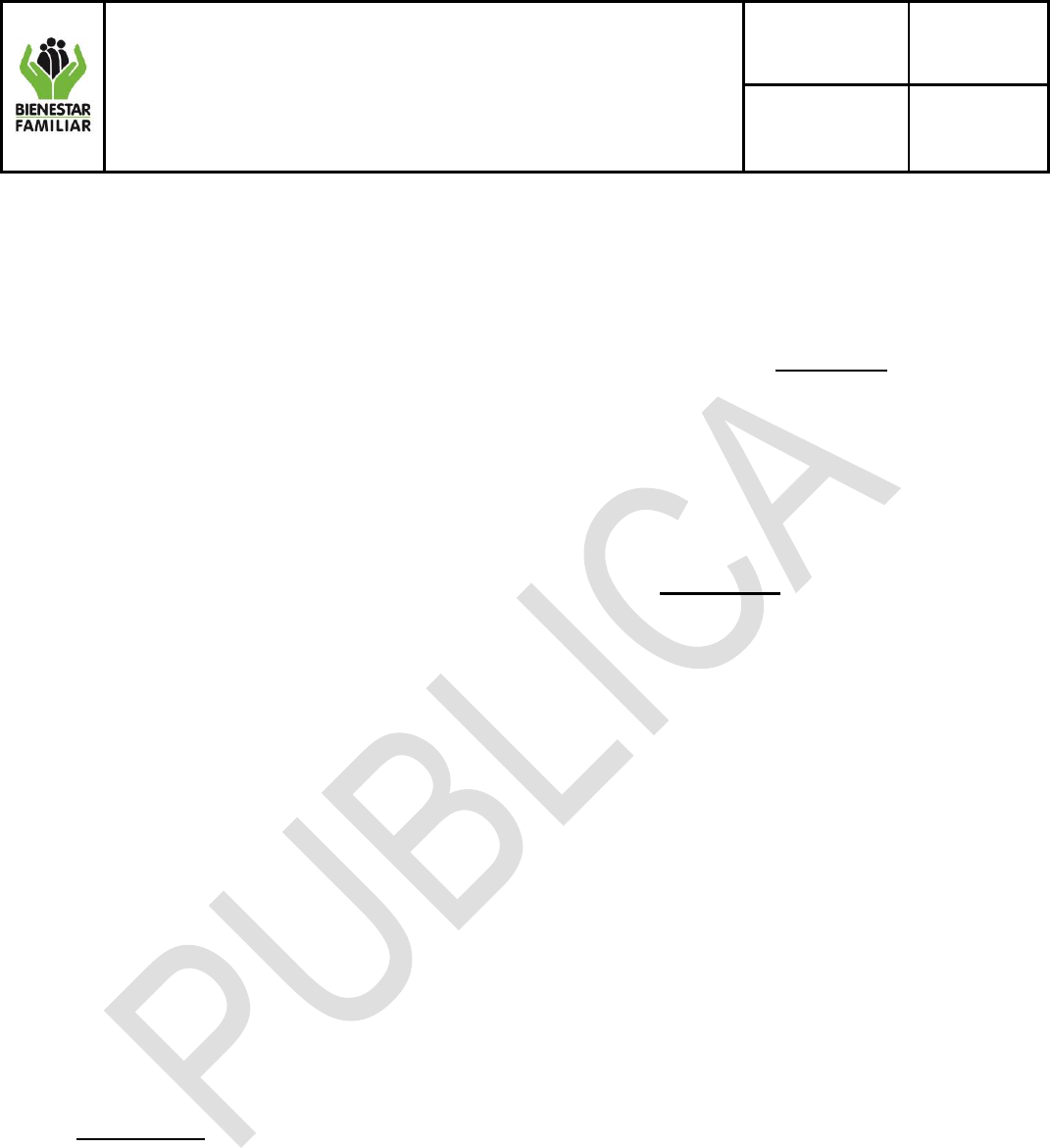 cumplimiento de la prestación del Servicio Público de Bienestar Familiar.