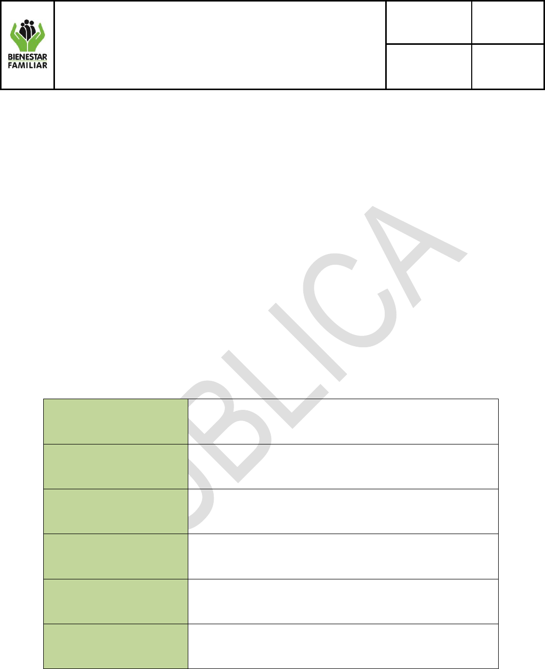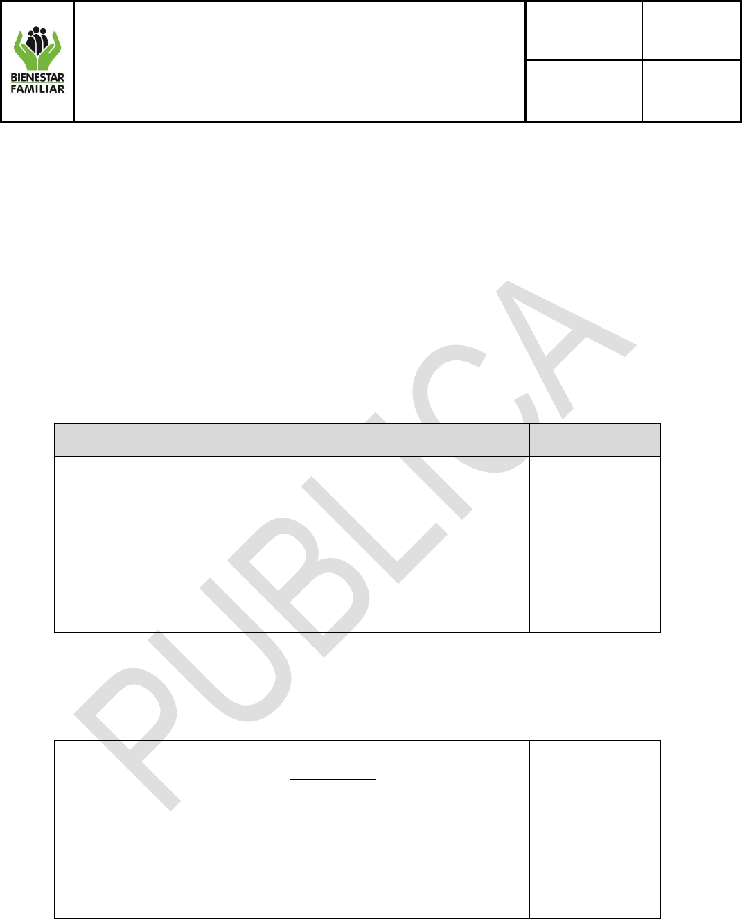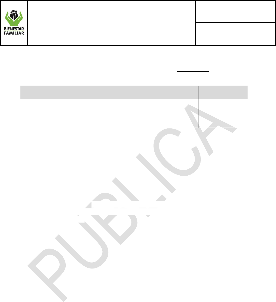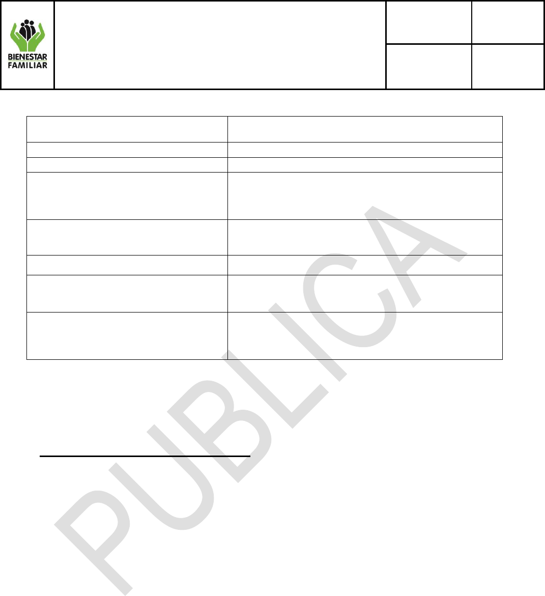 cumplimiento de la prestación del Servicio Público de Bienestar Familiar.