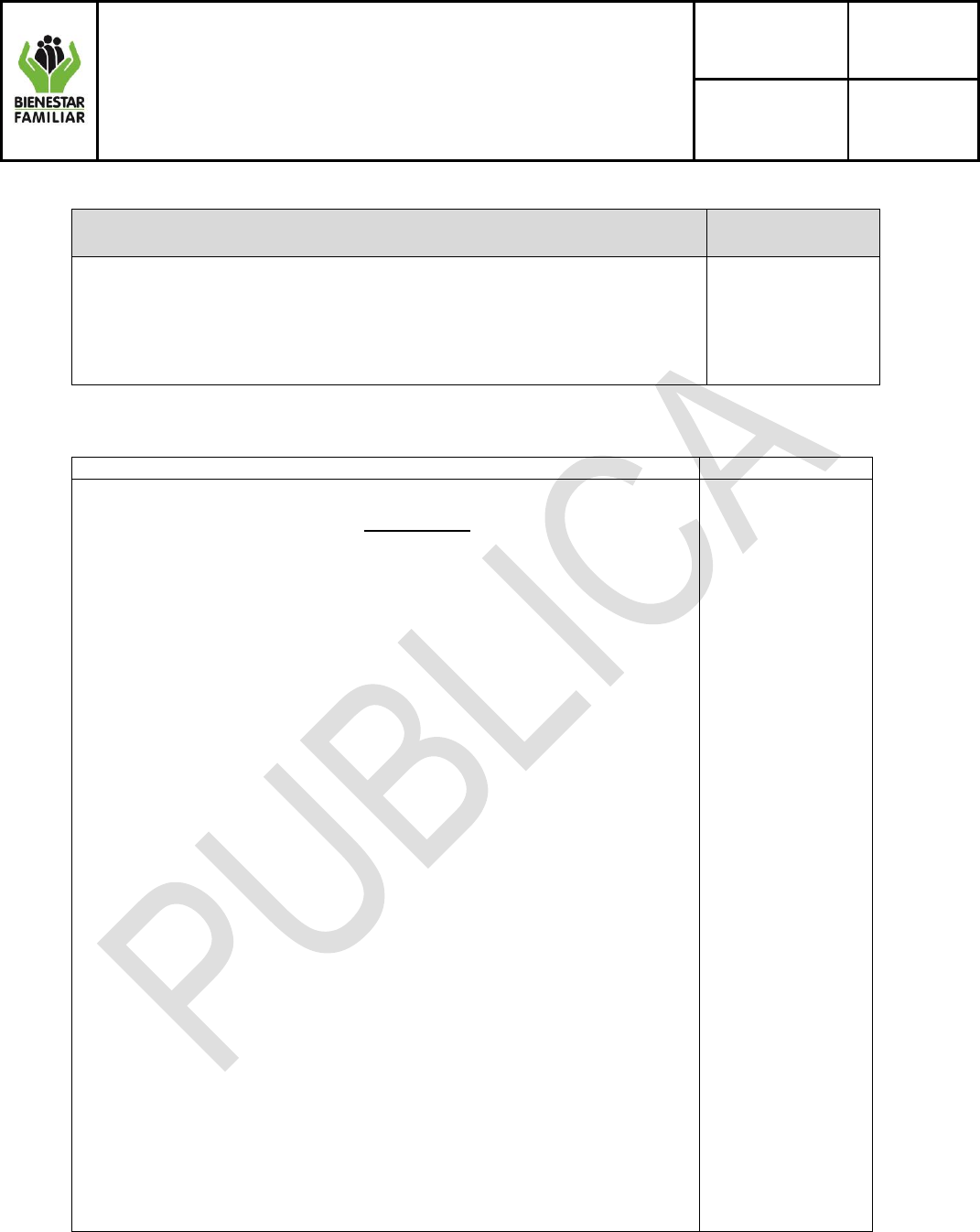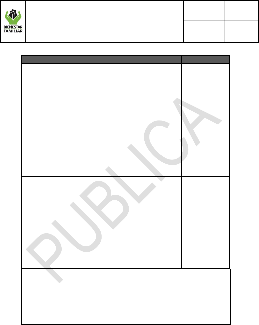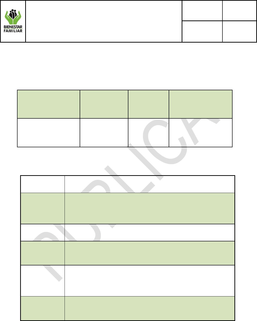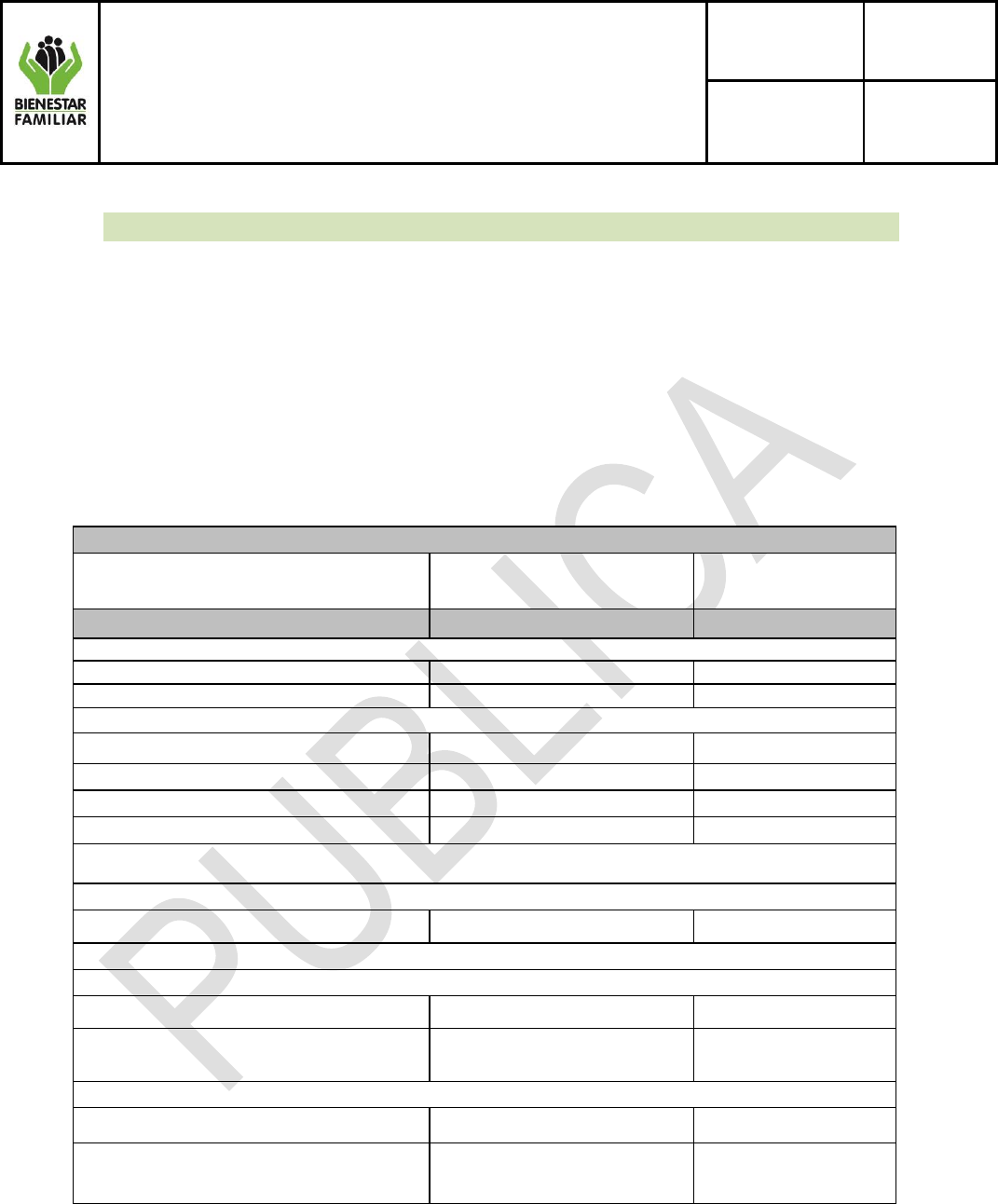 cumplimiento de la prestación del Servicio Público de Bienestar Familiar.