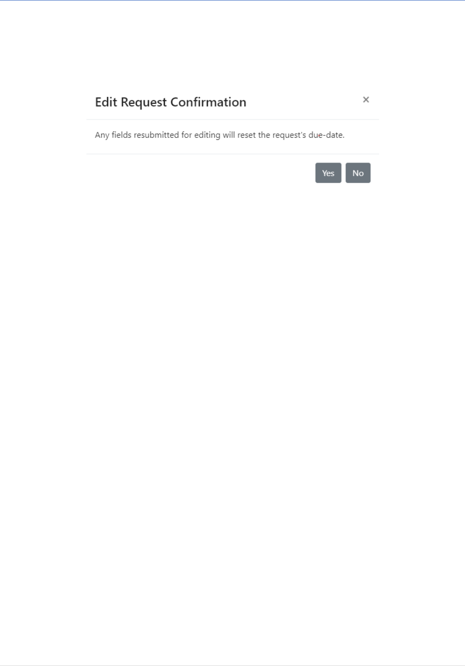 • A pop-up message will appear asking for confirmation on editing the request.