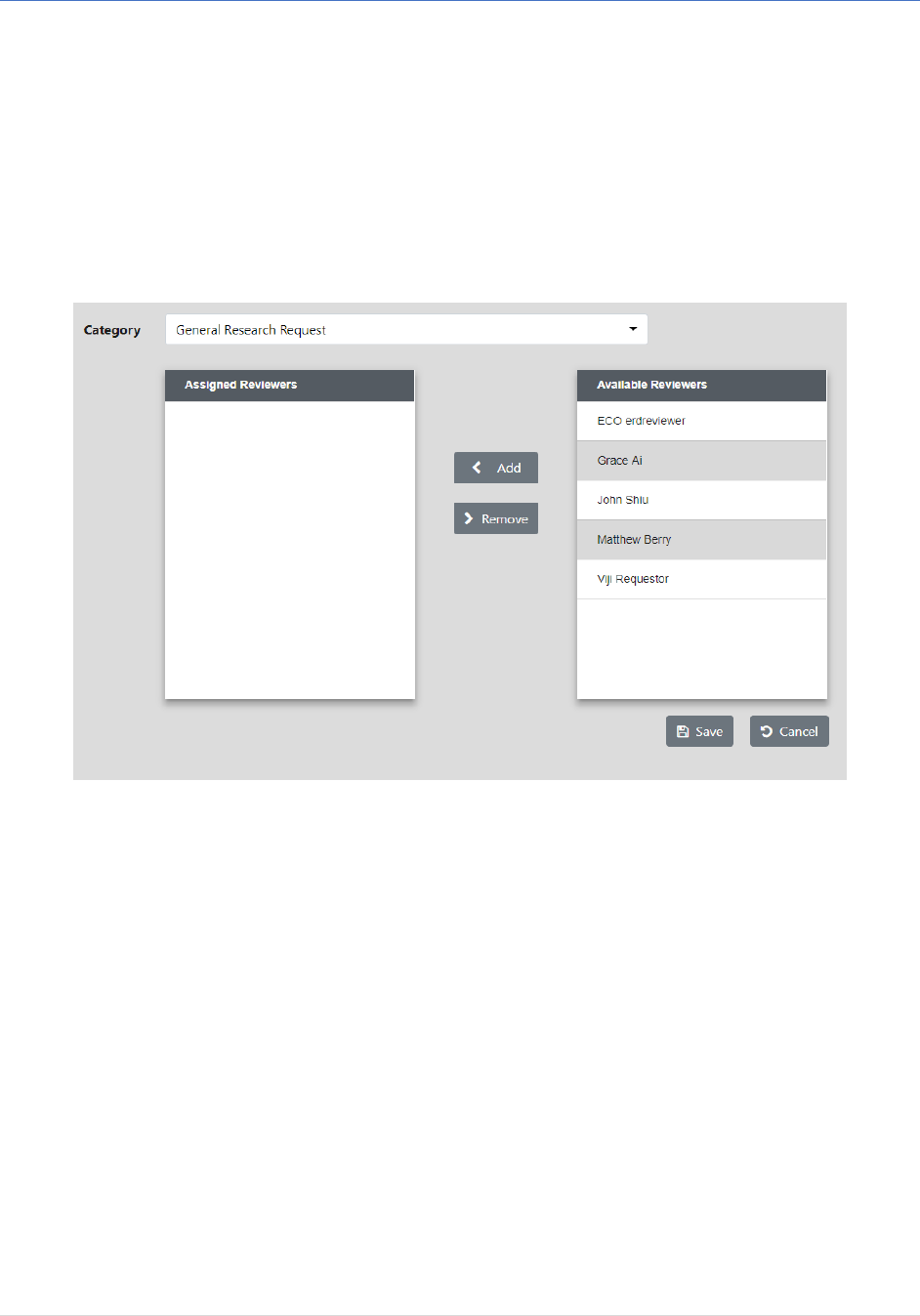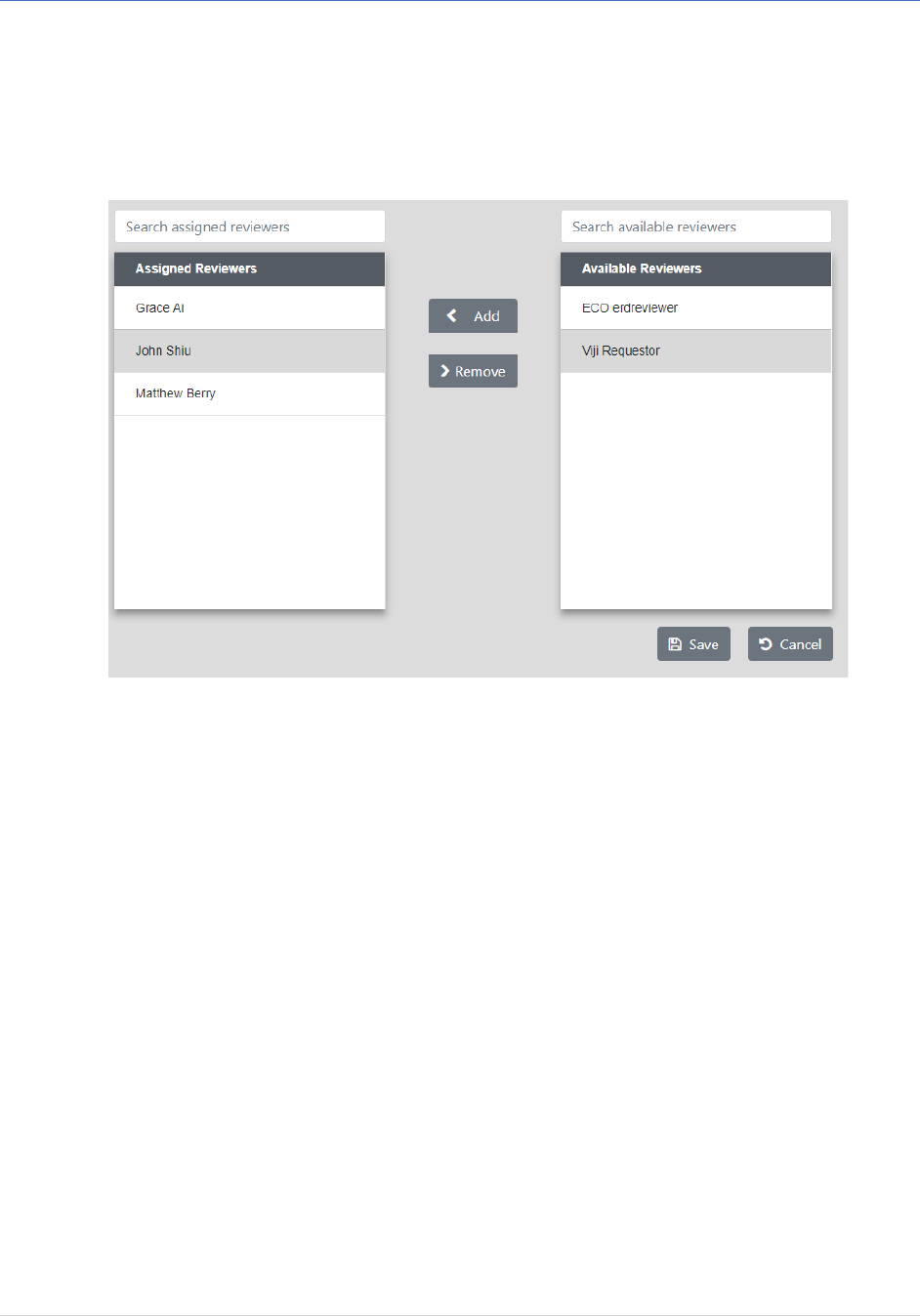 • Once they have found the Reviewer they wish to assign to or remove from the request