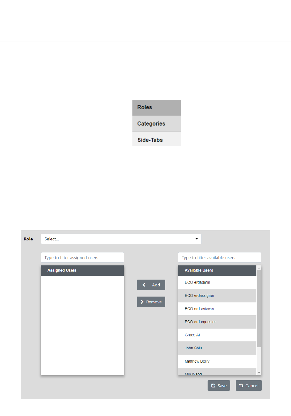 • Roles – Allows the administrator to Assign roles to available users.