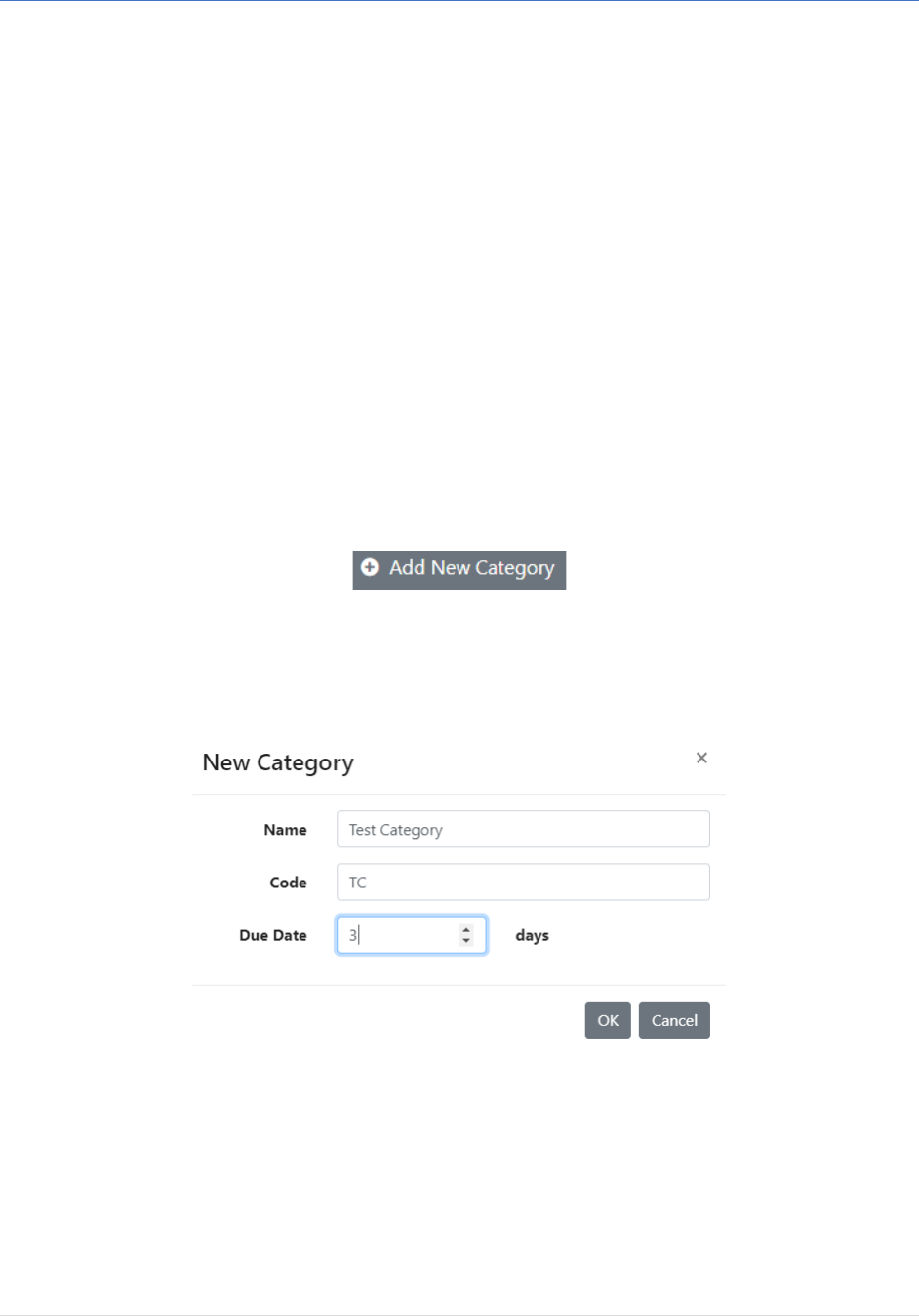 • Enter in the Name for the new category, assign a Code, and select the number of days the