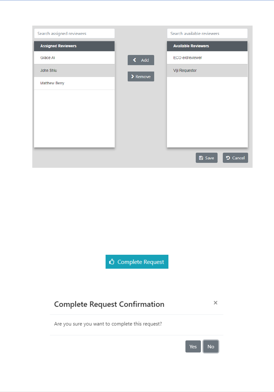 Adding/Removing a Reviewer to/from a Request.