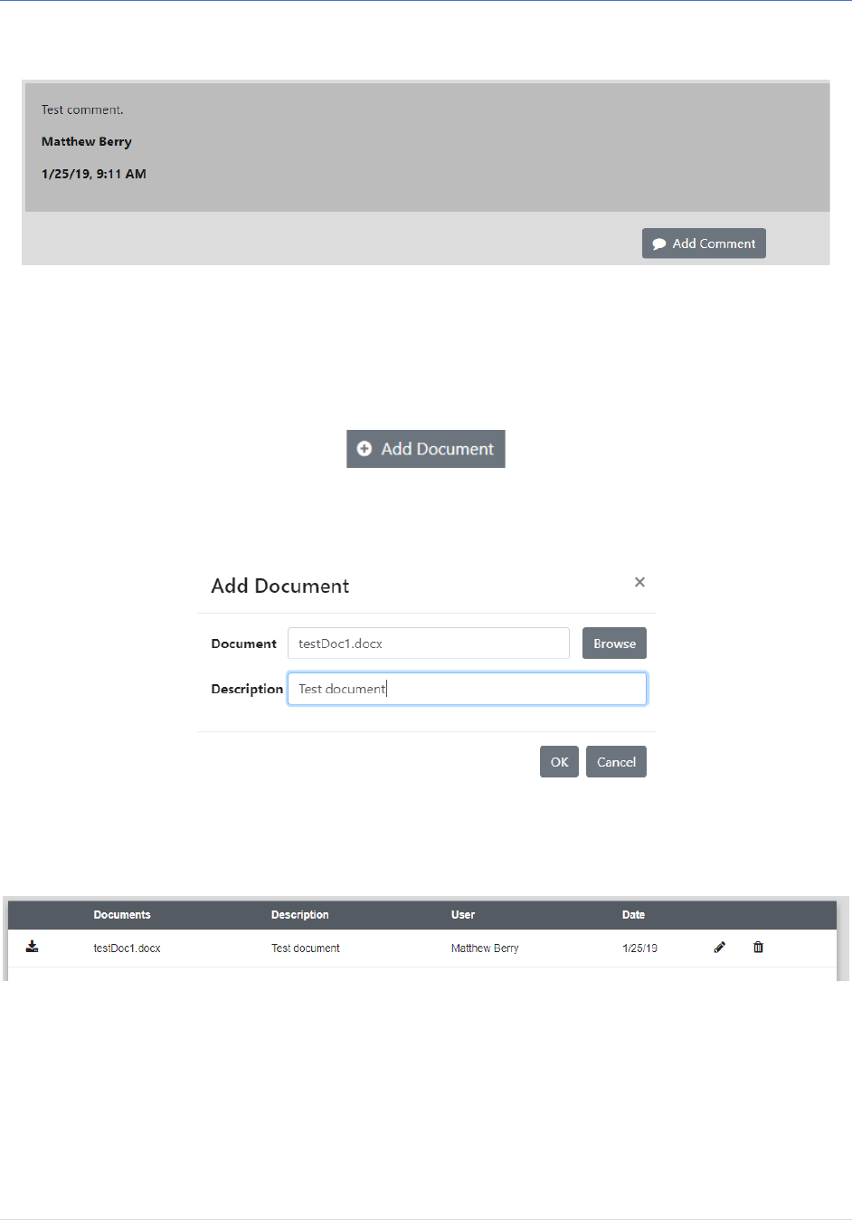 - From here, the user can browse to the location of their document and add it to the request along with a brief description of the document for reference.