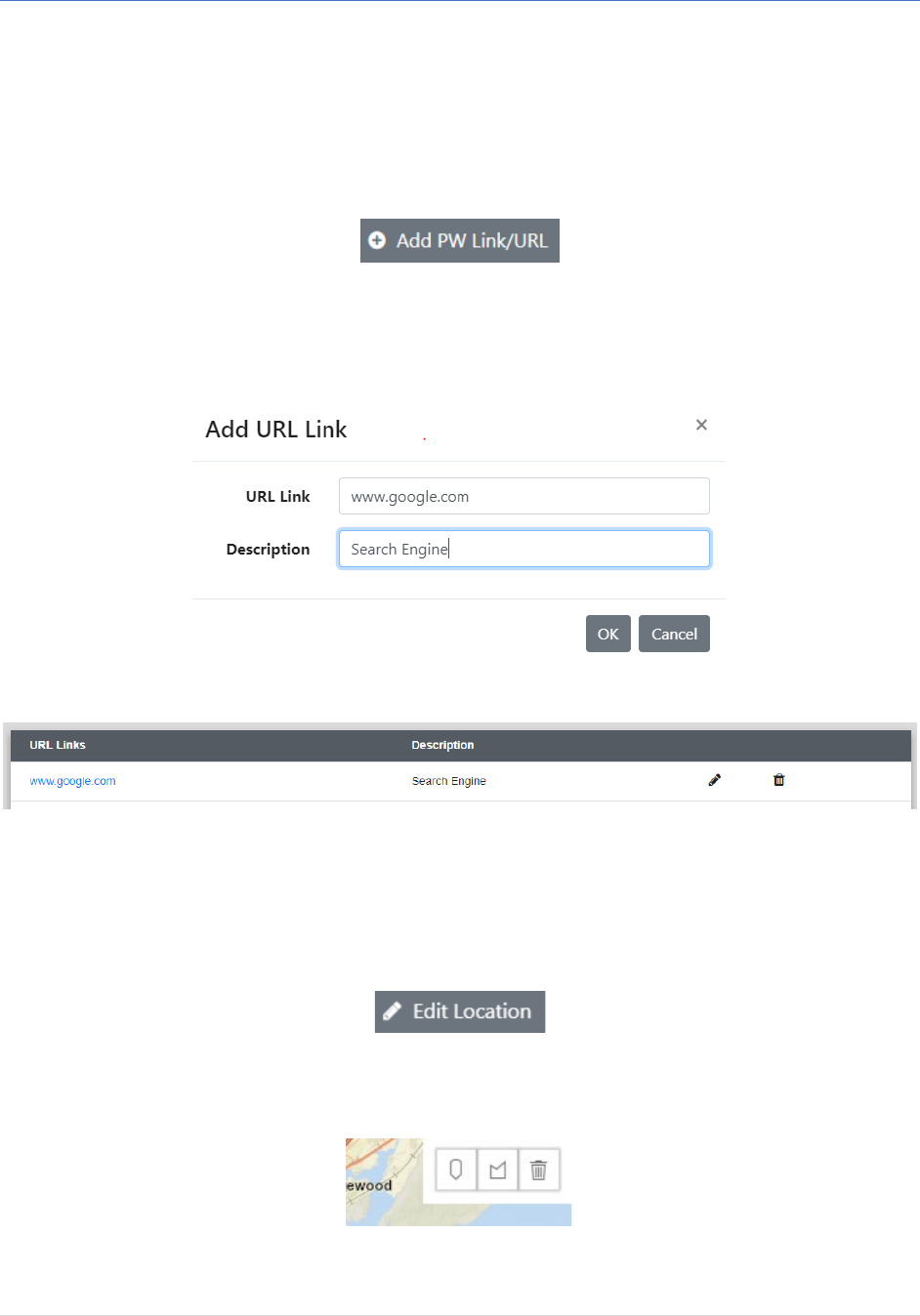 - From here, the user can copy a hyperlink into the link textbox and a description of the link giving more information on the request into the Description textbox.