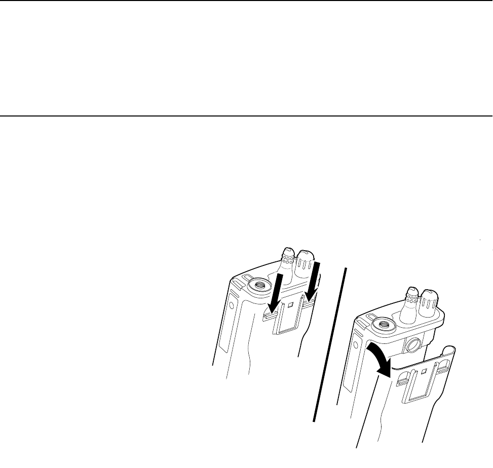 - a. Hold the radio such that the battery is tilted down.