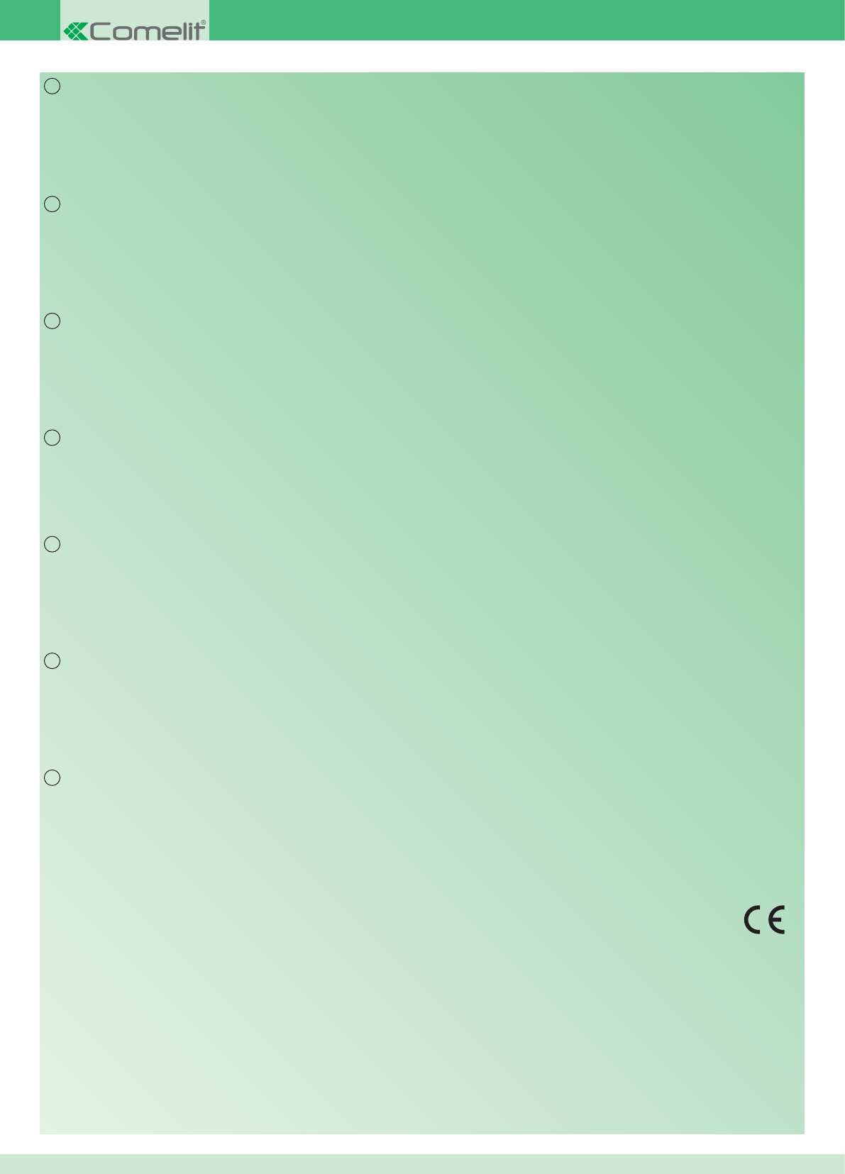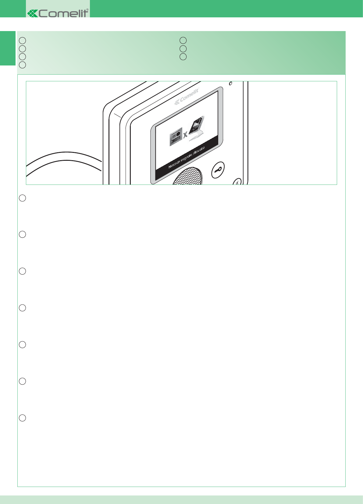 • Tutti gli apparecchi devono essere destinati esclusivamente all’uso per cui sono stati concepiti. Comelit Group S.p.A. declina ogni responsabilità per un utilizzo improprio degli