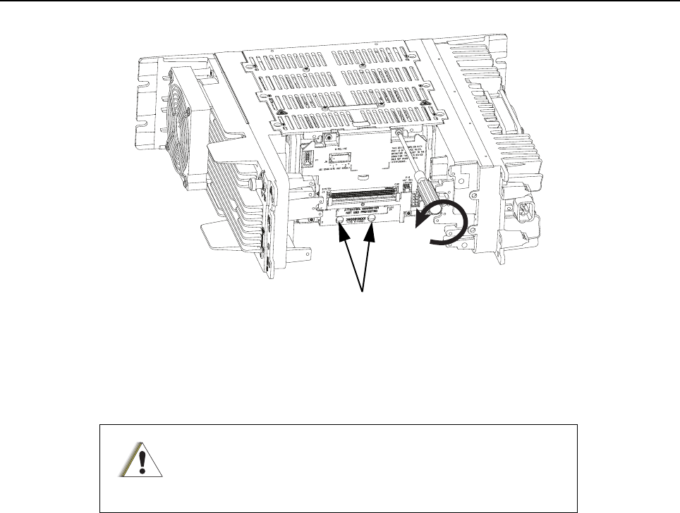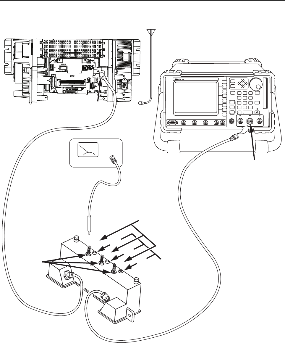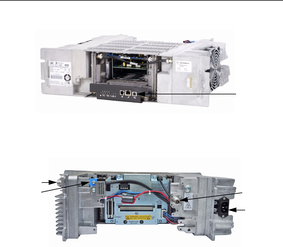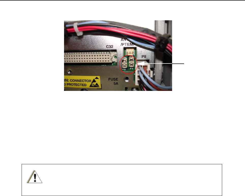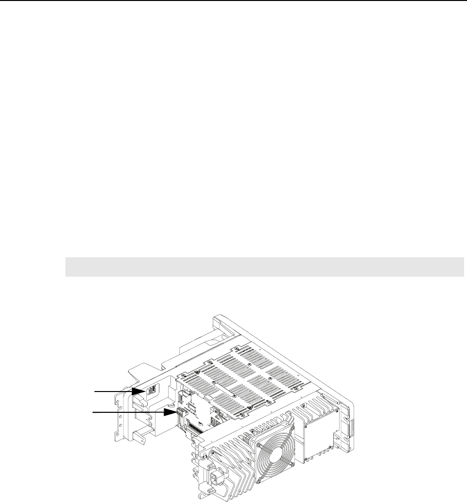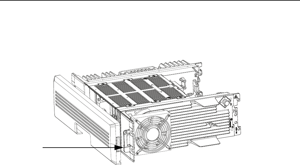 • RF energy burn hazard. Disconnect power in the cabinet to prevent injury before